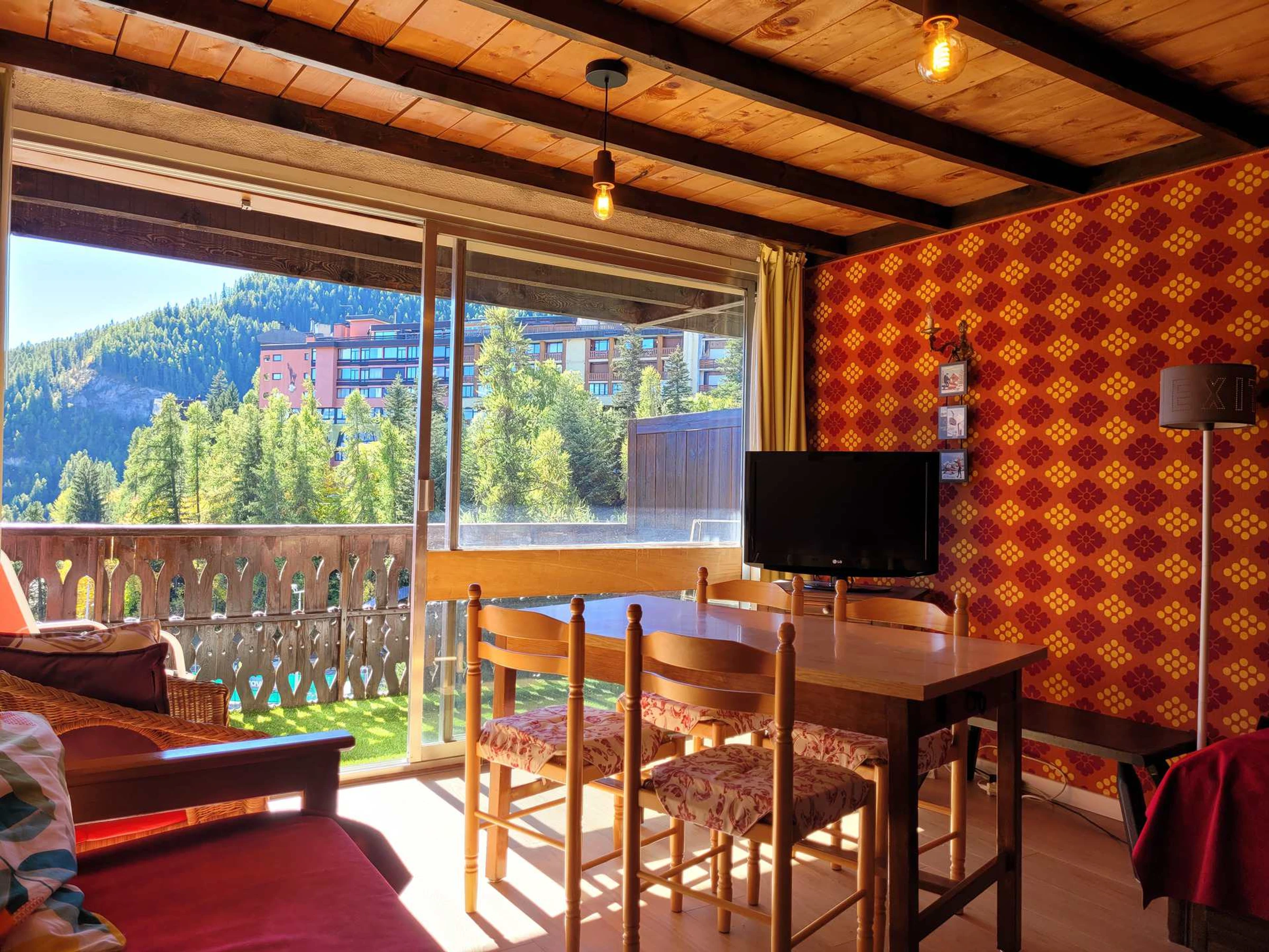 KOMMENTARE: Geräumiges, sehr helles Studio. In der Nähe von Tennisplätzen, Geschäften und Restaurants. Skiraum in der Nähe der Pisten im Gebäude PORTILLIO (40 m von den Pisten entfernt).