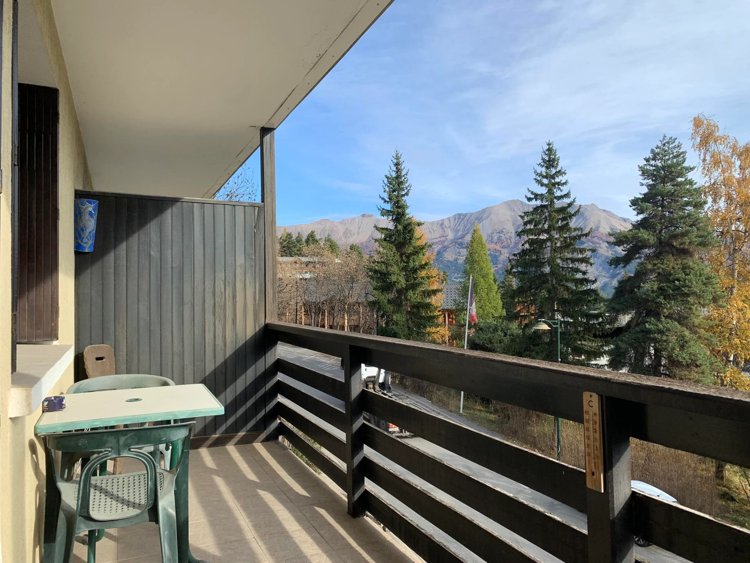 Studio-Apartment für 4 Personen, ca. 34 m². Komplett renoviert, im 2. Stock. Ostlage mit Balkon und Blick auf das Tal und den Gipfel des Chapeau de Gendarme.