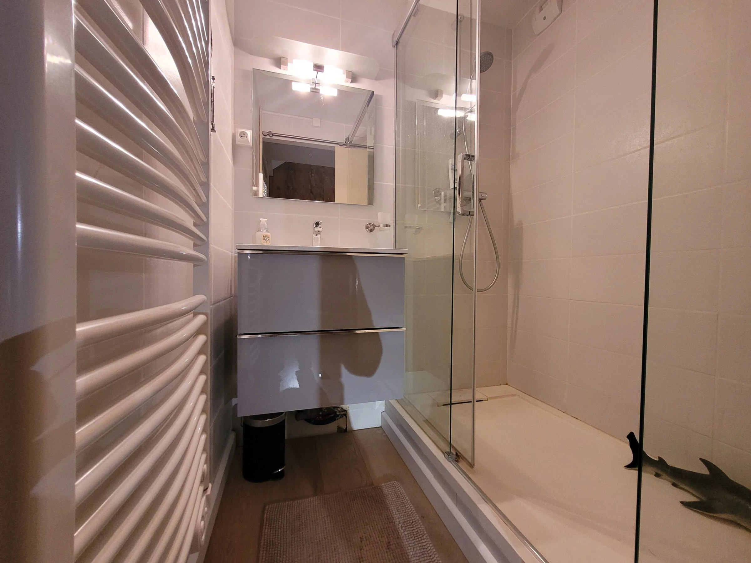 * Badezimmer mit großer Dusche;