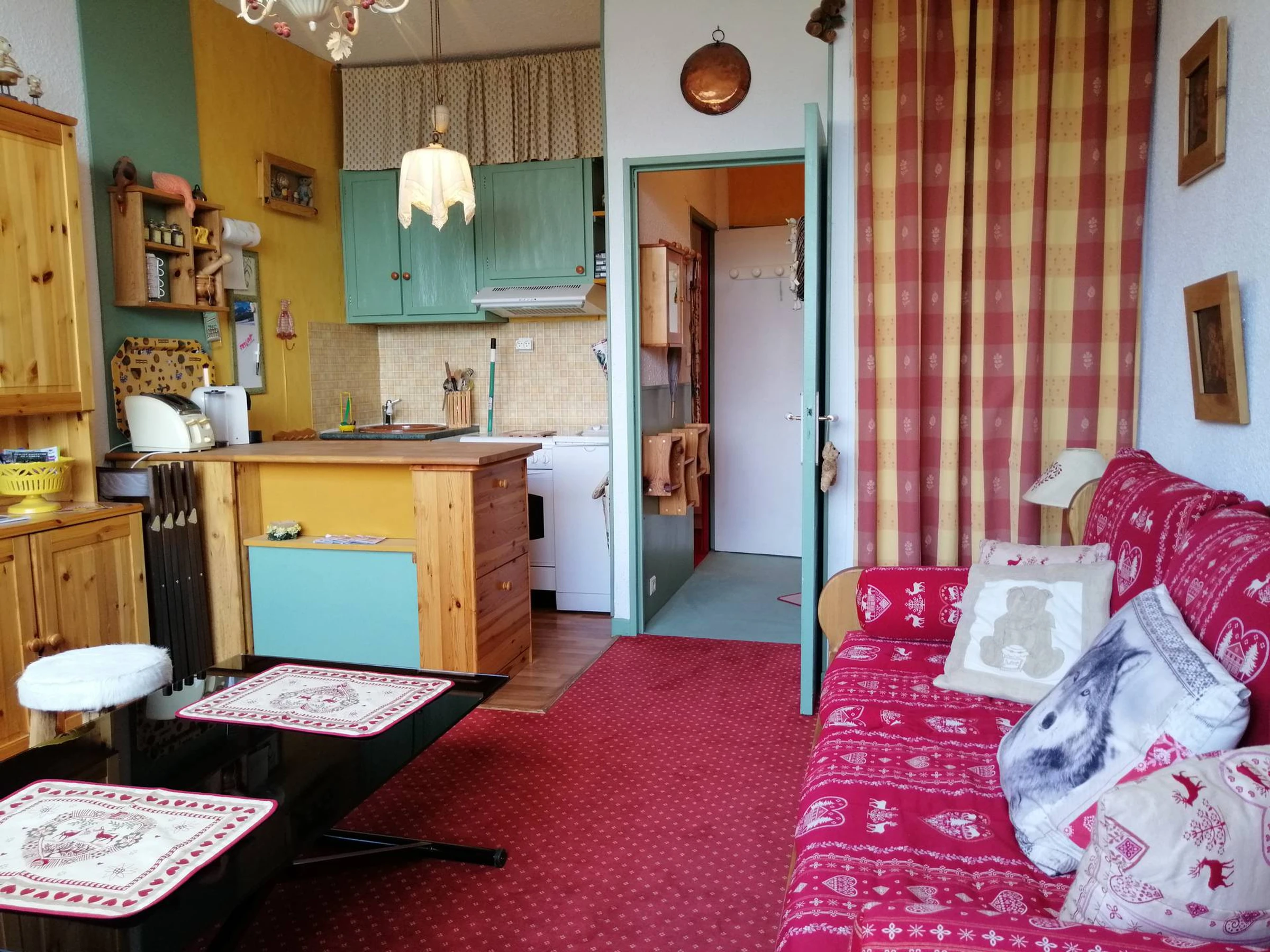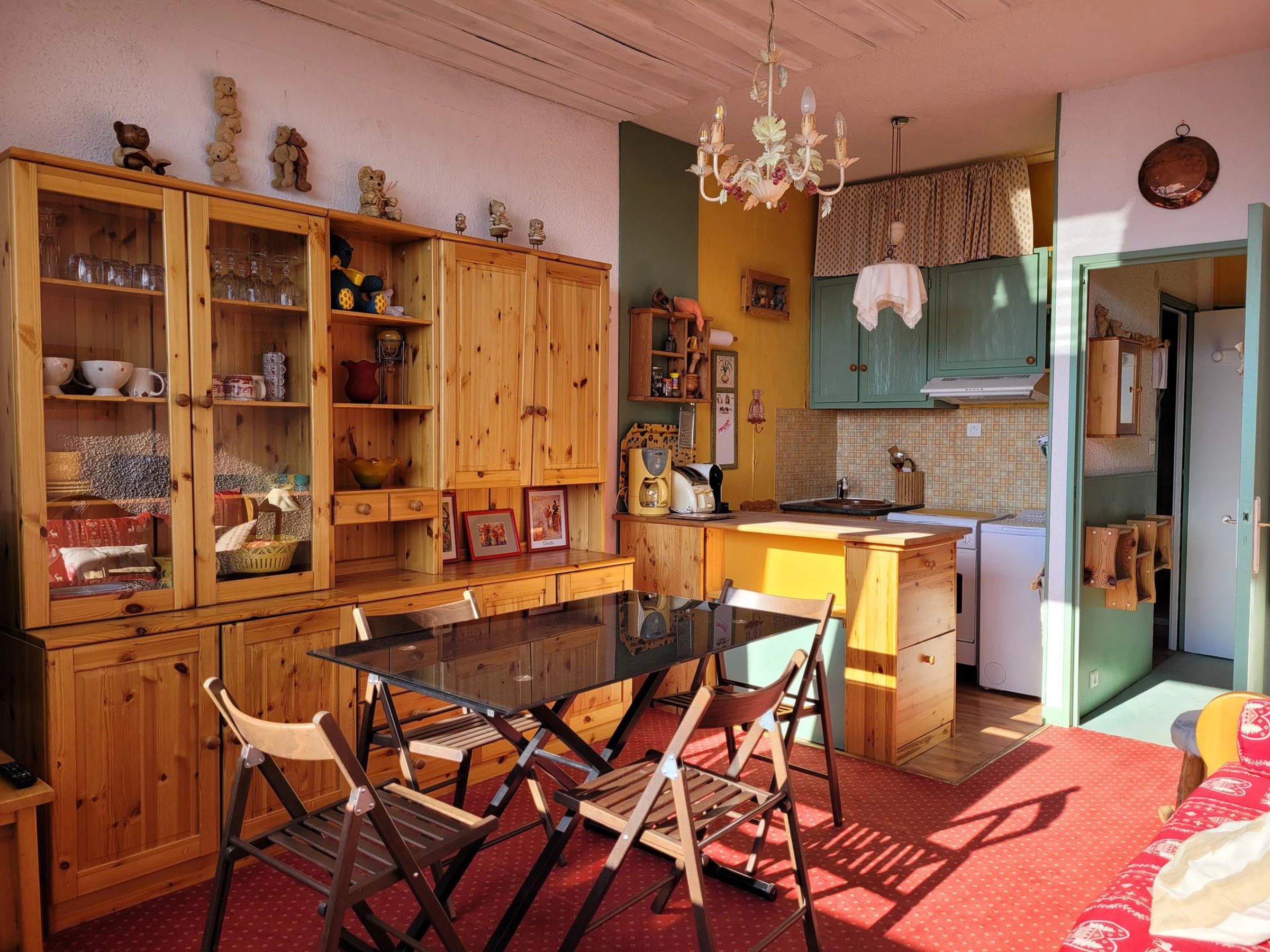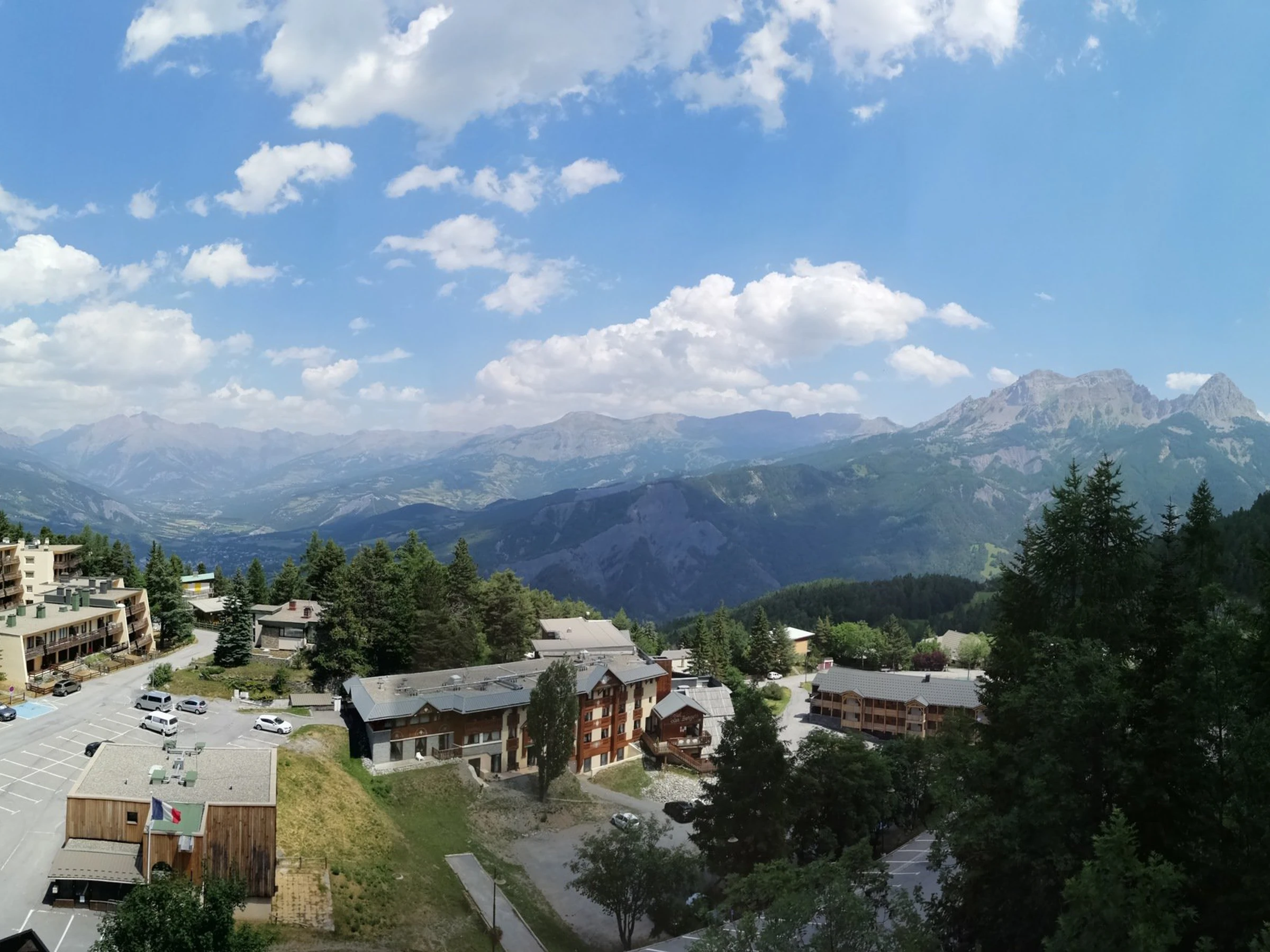 Studio für 4 Personen, 27 m². Erdgeschoss. Südostlage mit großer Terrasse. Herrlicher Panoramablick auf den Ferienort, das Tal von Ubaye und die Berge.