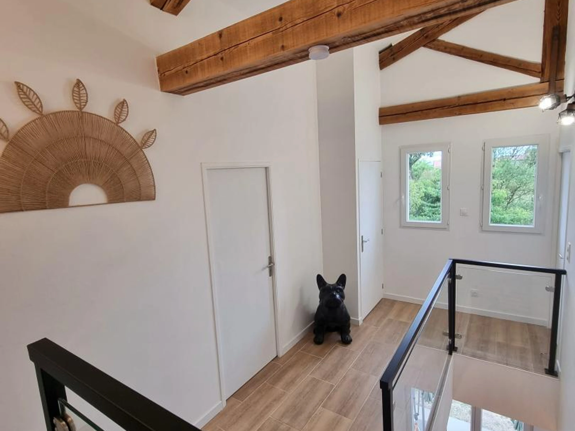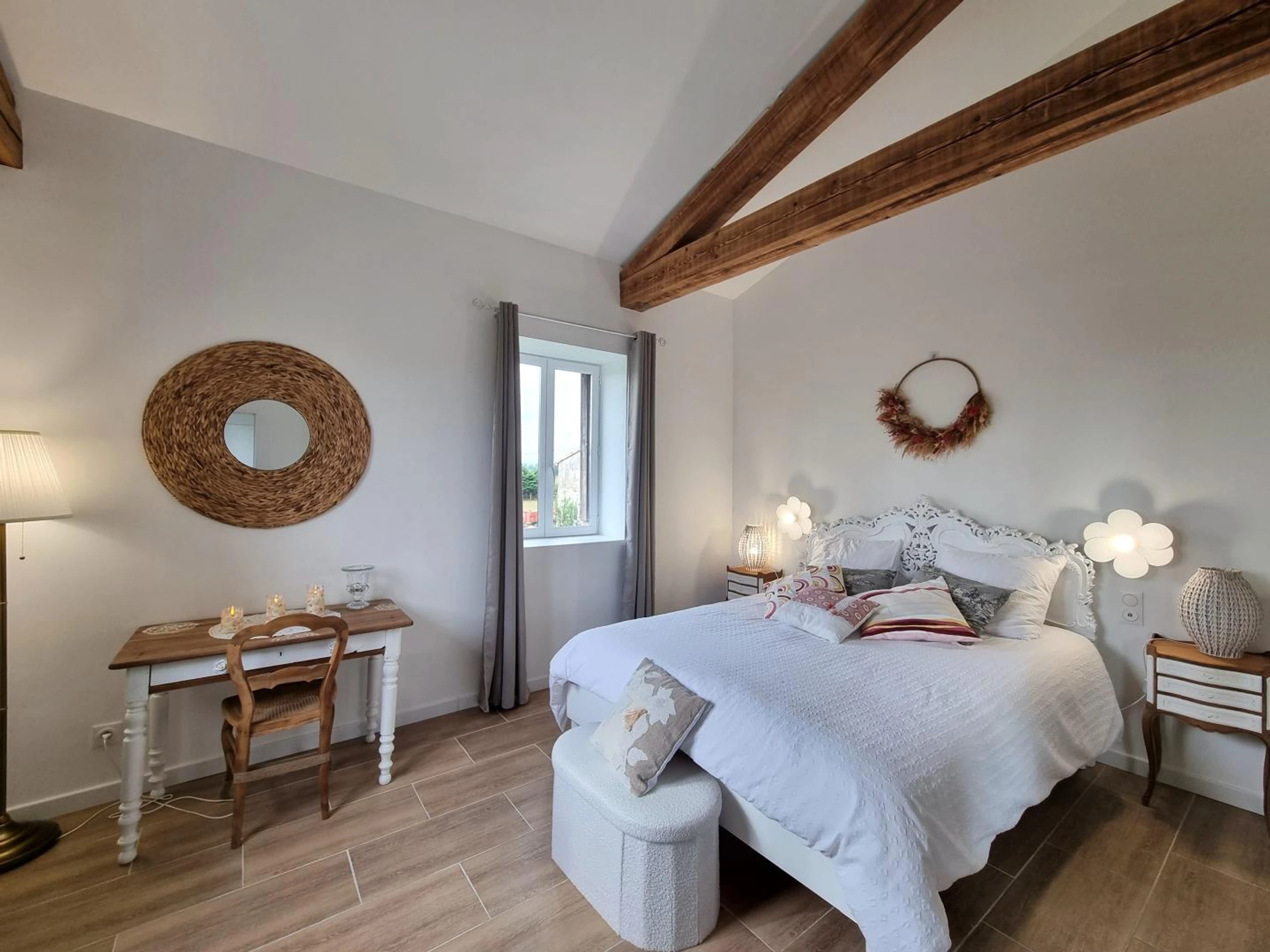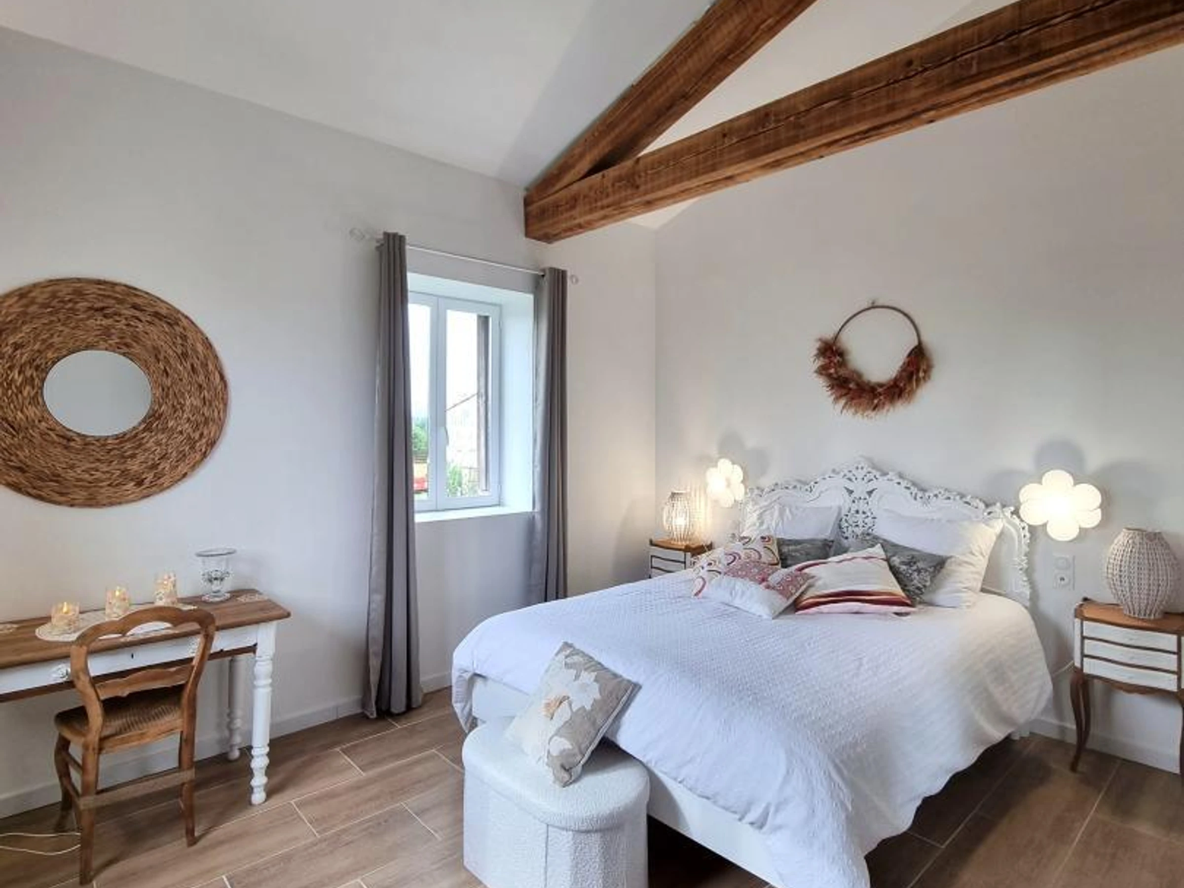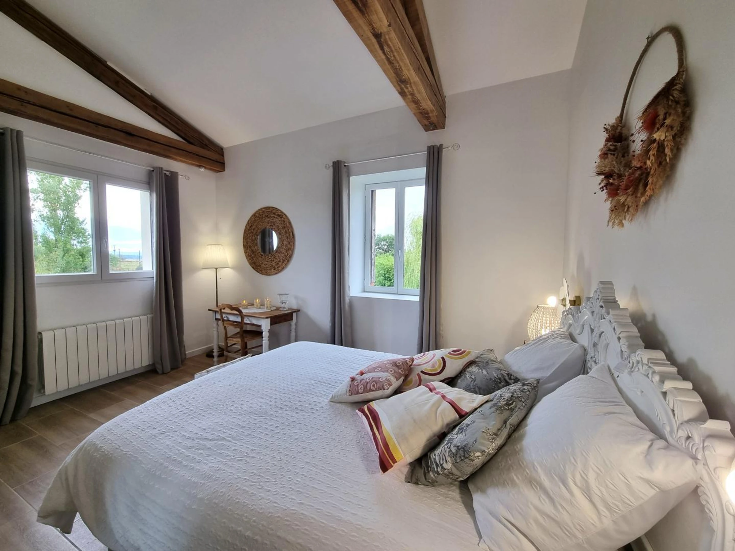 Entdecken Sie dieses ideale Ferienhaus für 5 Personen auf zwei Ebenen (80 m²). Das Au Soleil Levant wird Sie mit seinem Komfort und Stil begeistern. Im Erdgeschoss erwartet Sie ein heller Wohnbereich mit voll ausgestatteter Küche, Essbereich und Wohnzimmer mit Zugang zu einer privaten Terrasse. Im Obergeschoss befinden sich ein Schlafzimmer mit einem 160x200 cm großen Bett, ein Duschbad und ein separates WC sowie eine Familiensuite mit einem 160x200 cm großen und einem 120x190 cm großen Bett, jeweils mit eigenem Duschbad und WC. Die elegante Einrichtung und die hochwertigen Materialien schaffen eine warme und stilvolle Atmosphäre – perfekt für einen unvergesslichen Aufenthalt mit Familie oder Freunden. Für einen rundum erholsamen Urlaub sind Nebenkosten, Bettwäsche und Handtücher inklusive. Ein Ferienhaus inmitten von Natur, Kultur und Gastronomie in Précieux an der Loire! Ideal zwischen den Monts du Lyonnais und den Monts du Forez gelegen, öffnet dieses Ferienhaus die Türen zu einer Region mit kontrastreichen und unberührten Landschaften. Nur knapp 10 km entfernt lädt Montbrison mit seinem malerischen Markt, der zu den schönsten Frankreichs zählt, zu einem Bummel ein. Die zentrale Lage der Ferienwohnung ist ideal, um Feurs, Montbrison oder Saint-Étienne zu erkunden oder eine entspannte Geschäftsreise zu unternehmen. Wandern, historische Stätten und kulinarische Entdeckungen – jeder Tag bietet neue Möglichkeiten, die Region Auvergne-Rhône-Alpes zu entdecken. Ihre Gastgeberin Patricia lädt Sie ein, das Leben mit den Tieren auf dem Bauernhof kennenzulernen. Lamas, Schafe und Pferde begeistern Jung und Alt. Entspannen Sie sich unter der großen Trauerweide oder toben Sie sich auf dem Trampolin aus.