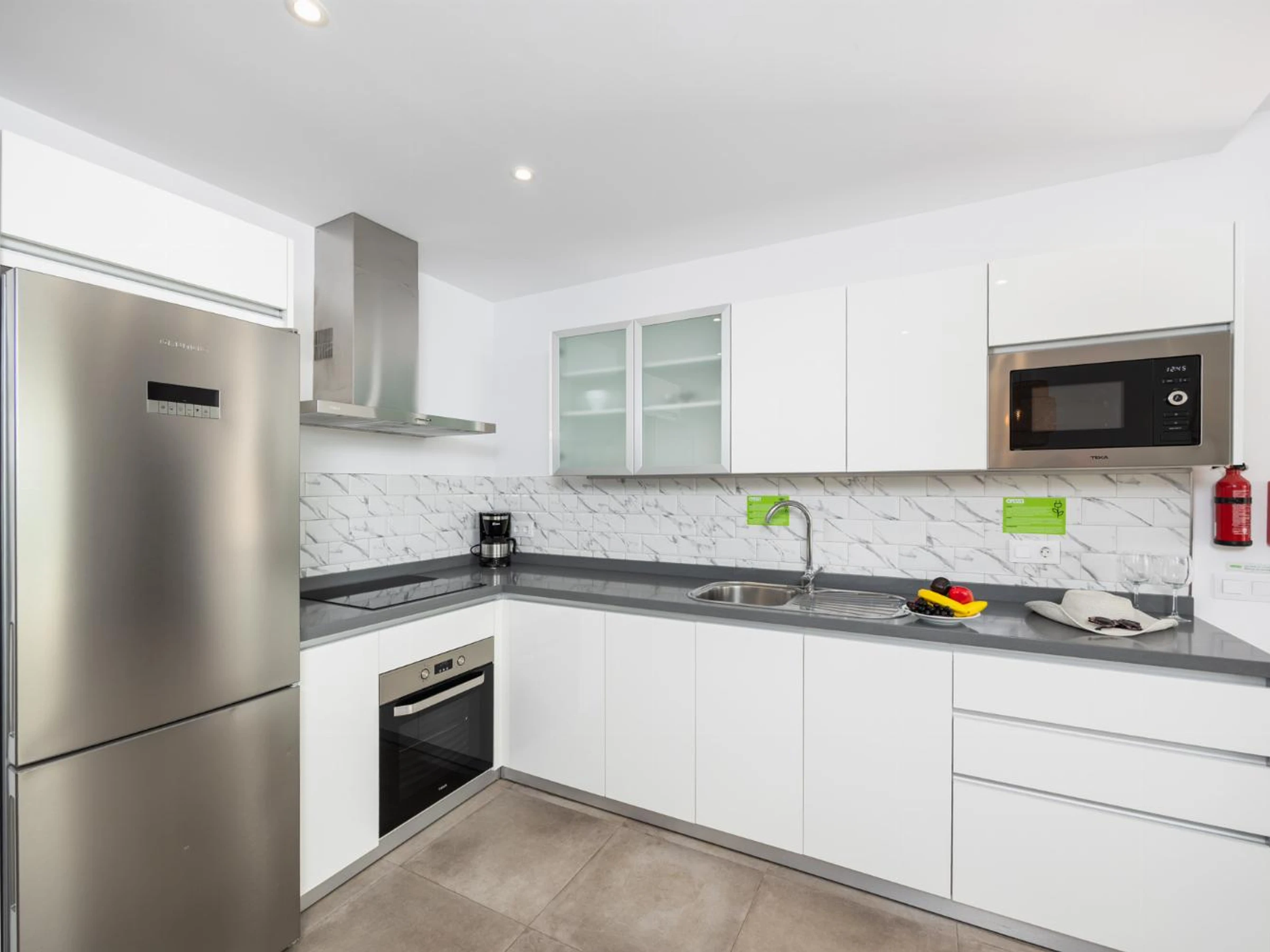 Dieses küche, ist ausgestattet in kühlschrank, mikrowelle, backofen, gefrierschrank, spülmaschine und kaffeemaschine.