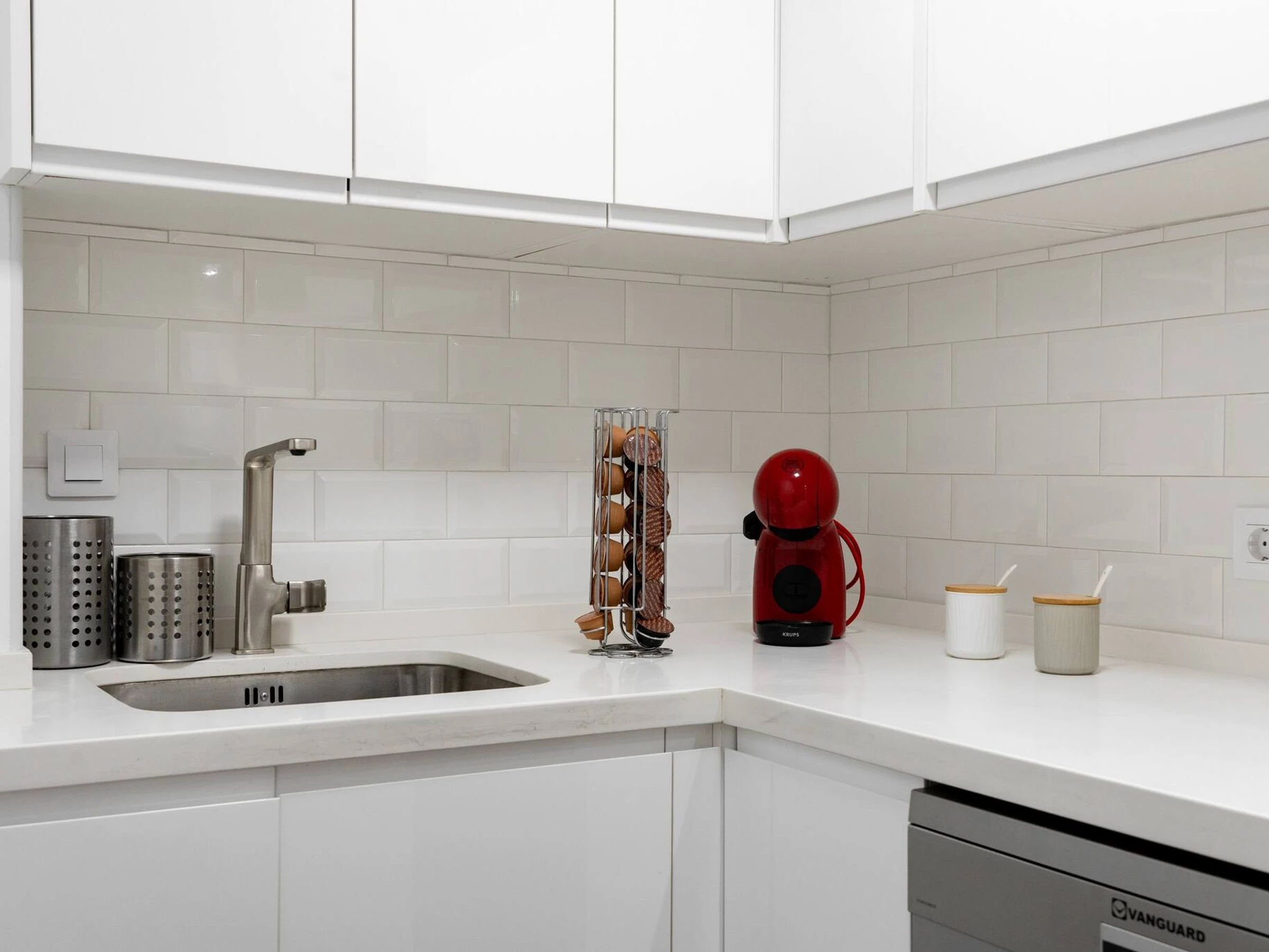 Dieses separate küche, mit ceranfeld, ist ausgestattet in kühlschrank, mikrowelle, backofen, gefrierschrank, spülmaschine, geschirr/besteck, kochutensilien, kaffeemaschine, toaster, wasserkocher und herdplatte.