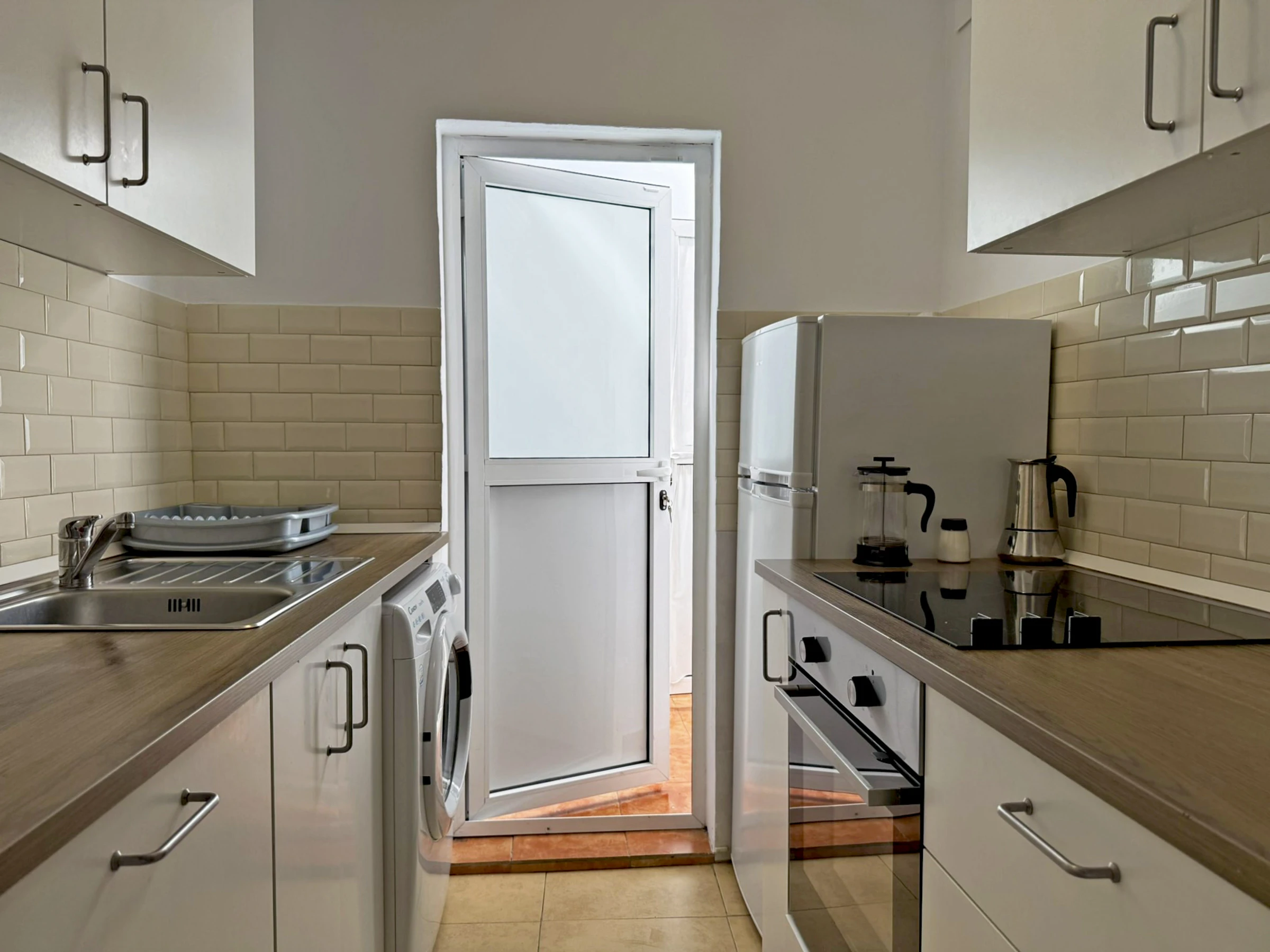 Dieses separate küche, mit ceranfeld, ist ausgestattet in kühlschrank, mikrowelle, backofen, gefrierschrank, spülmaschine, geschirr/besteck, kochutensilien, kaffeemaschine, toaster, wasserkocher und herdplatte.