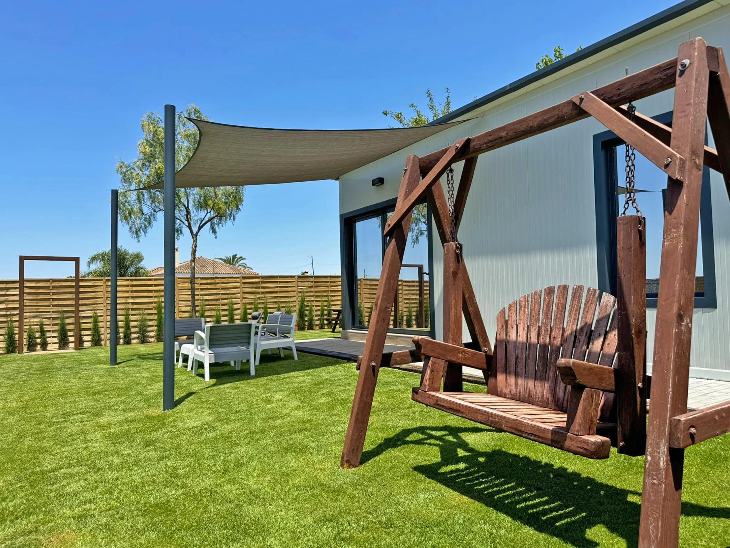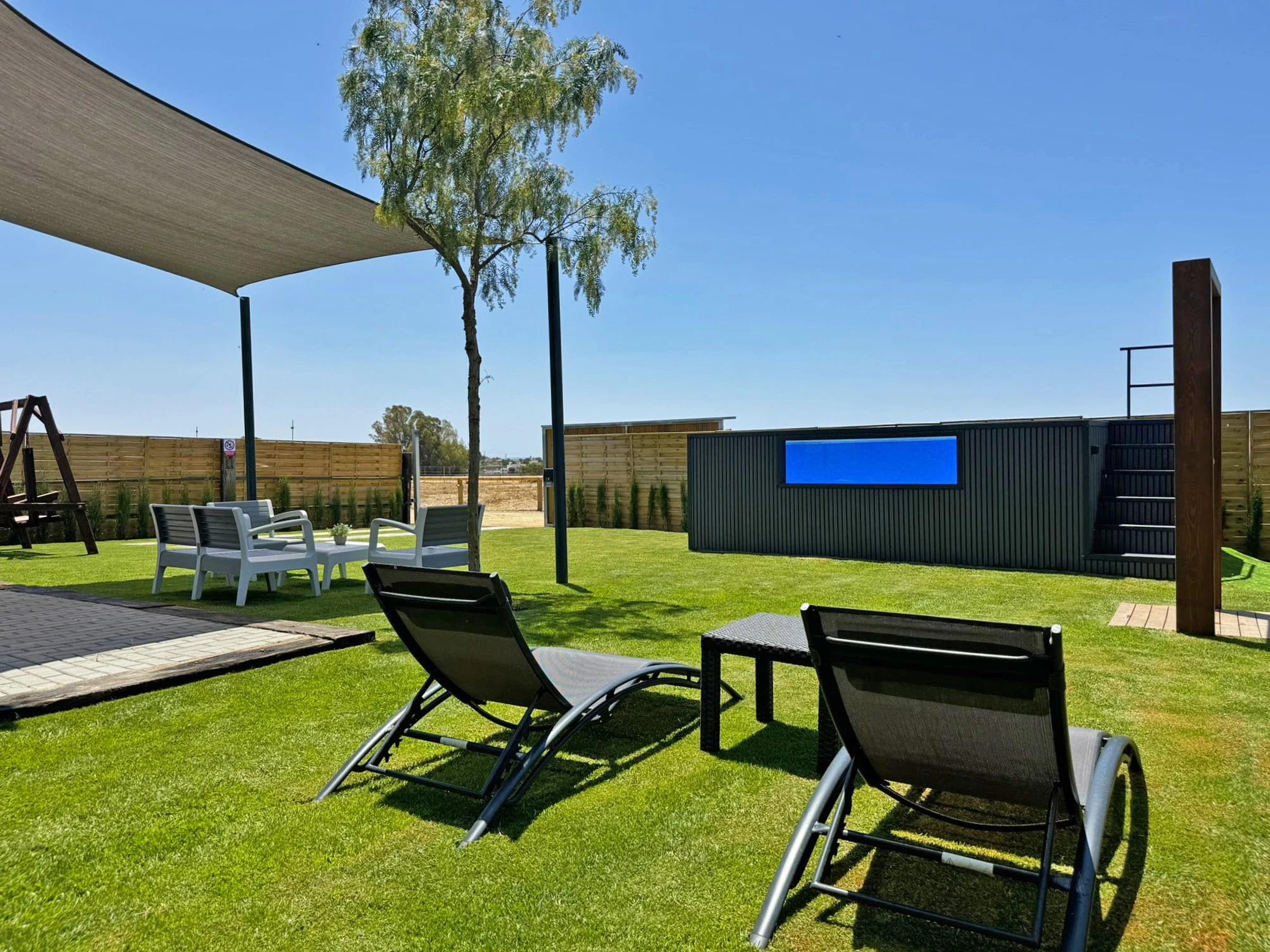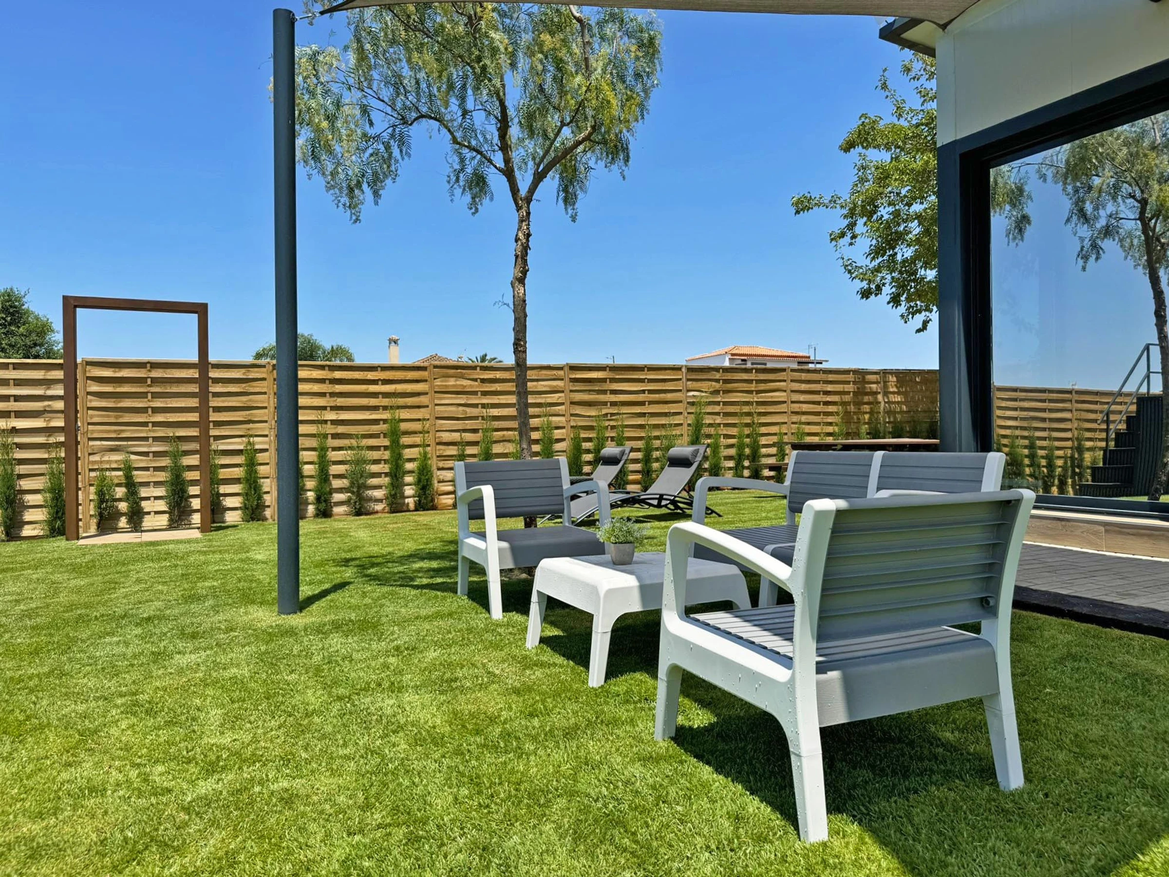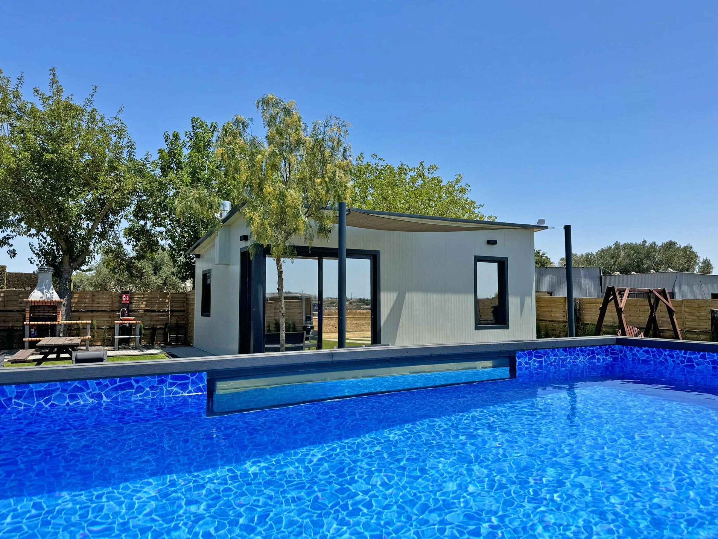 Die Unterkunft verfügt über garten, gartenmöbel, umzäuntes grundstück, terrasse, waschmaschine, grill, kamin, bügeleisen/-brett, internet (WLAN), haartrockner, alarm, heizung, klimaanlage, swimming-pool privater pool, parkplatz im freien in auf dem grundstück, TV.