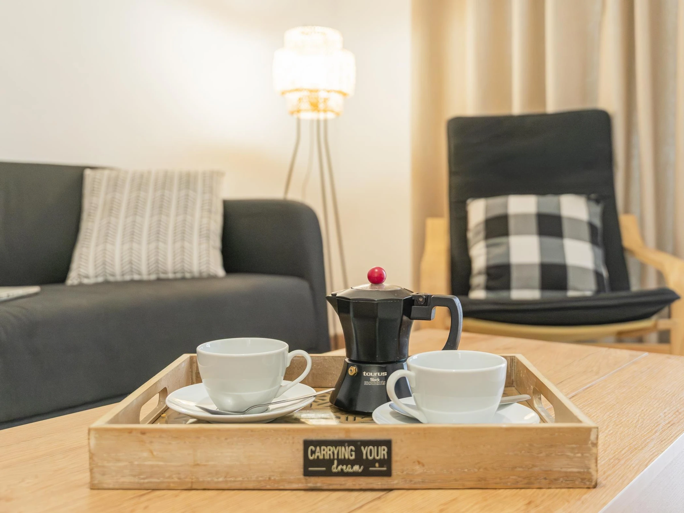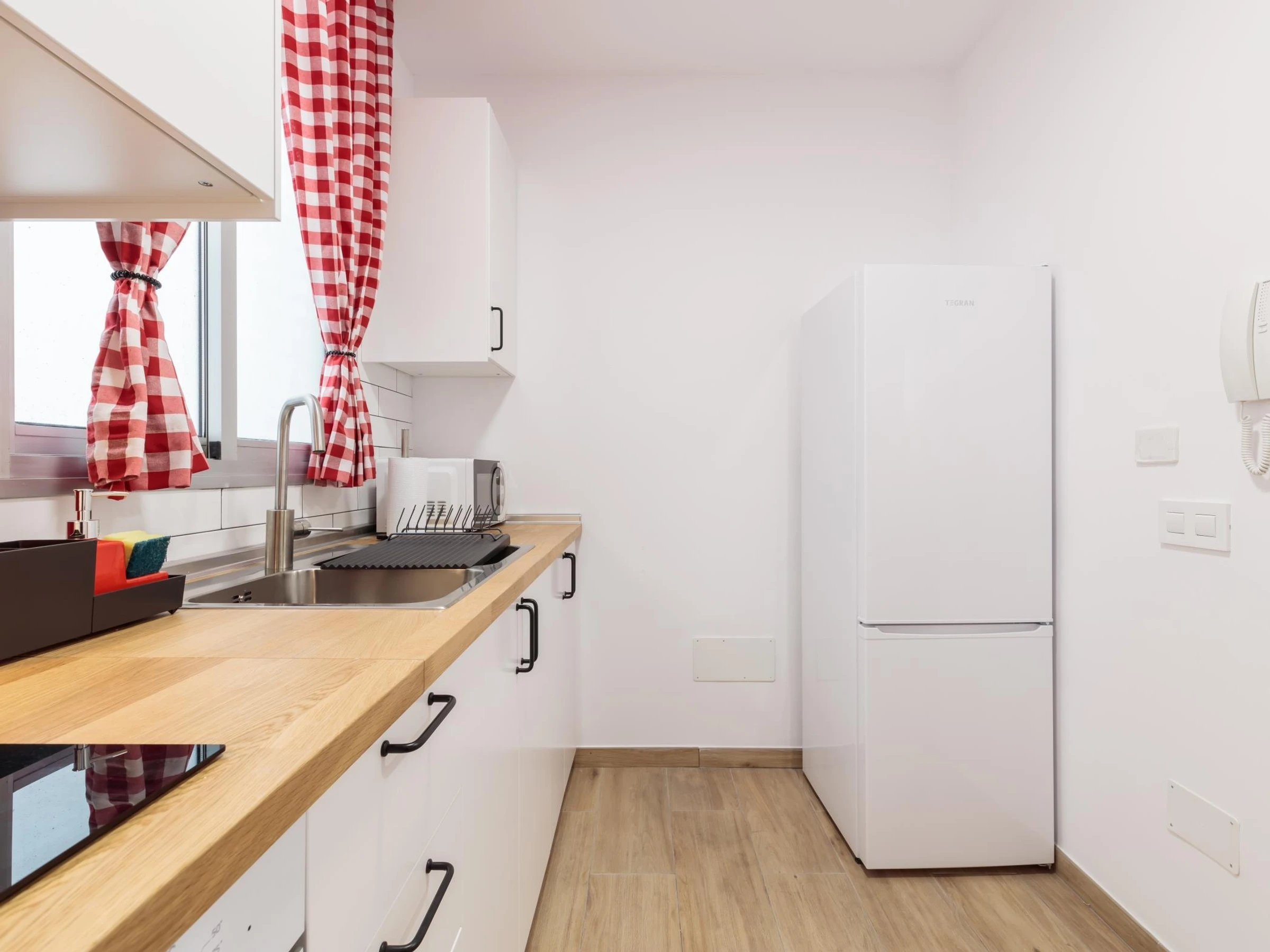 Die voll ausgestattete Küche bietet alles, was du brauchst, einschließlich Mikrowelle, Backofen, Kaffeemaschine, Wasserkocher, Mixer und einer großen Auswahl an Utensilien. Das Badezimmer mit Dusche bietet Komfort und Funktionalität für Groß und Klein.