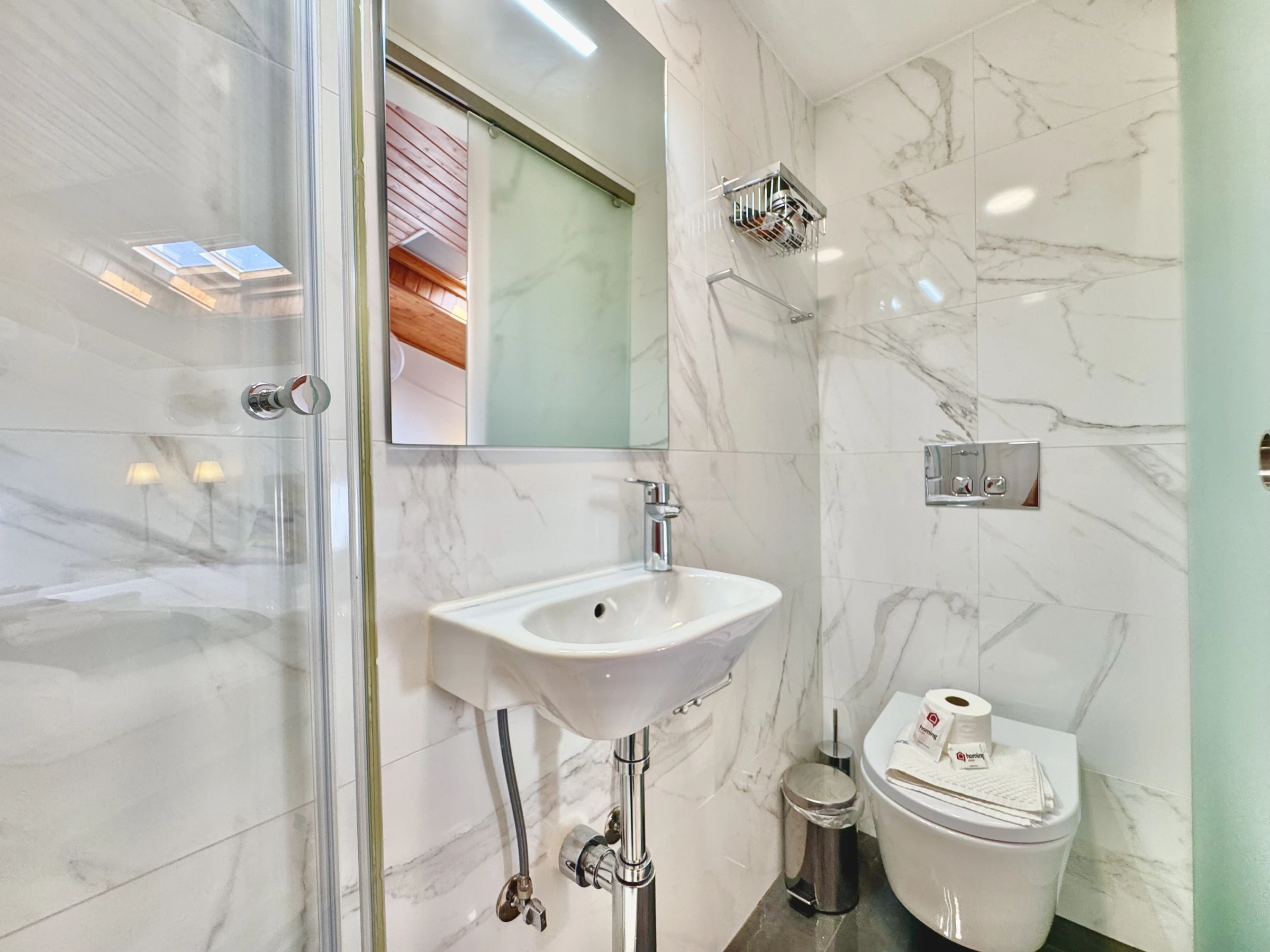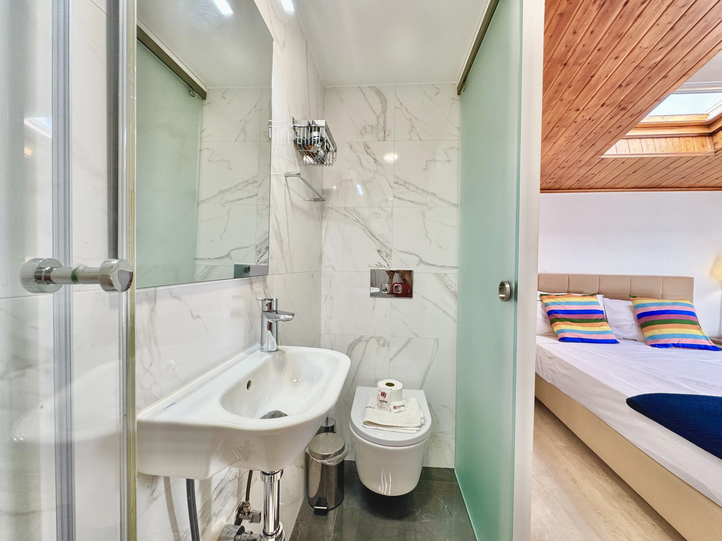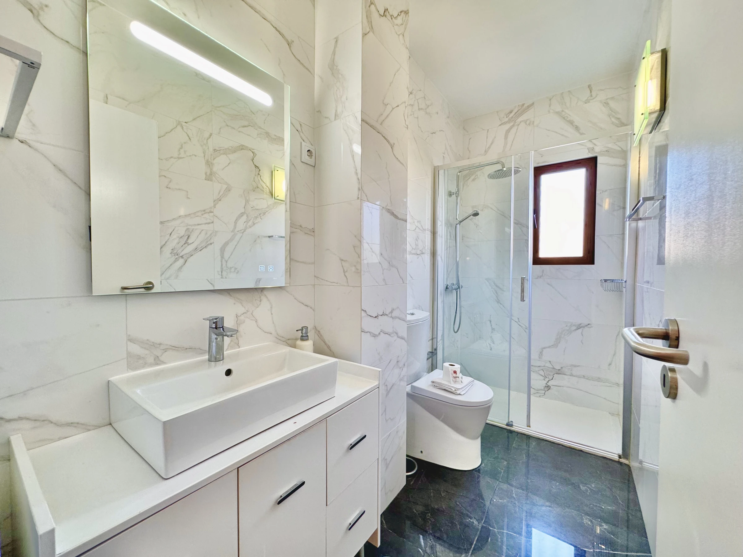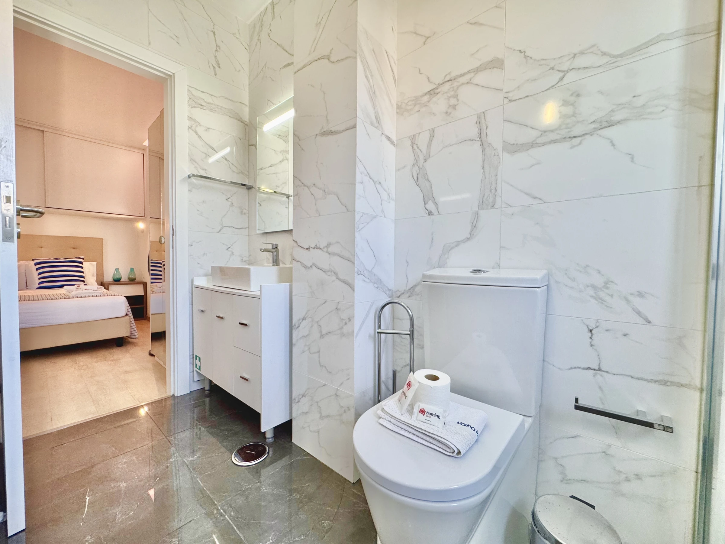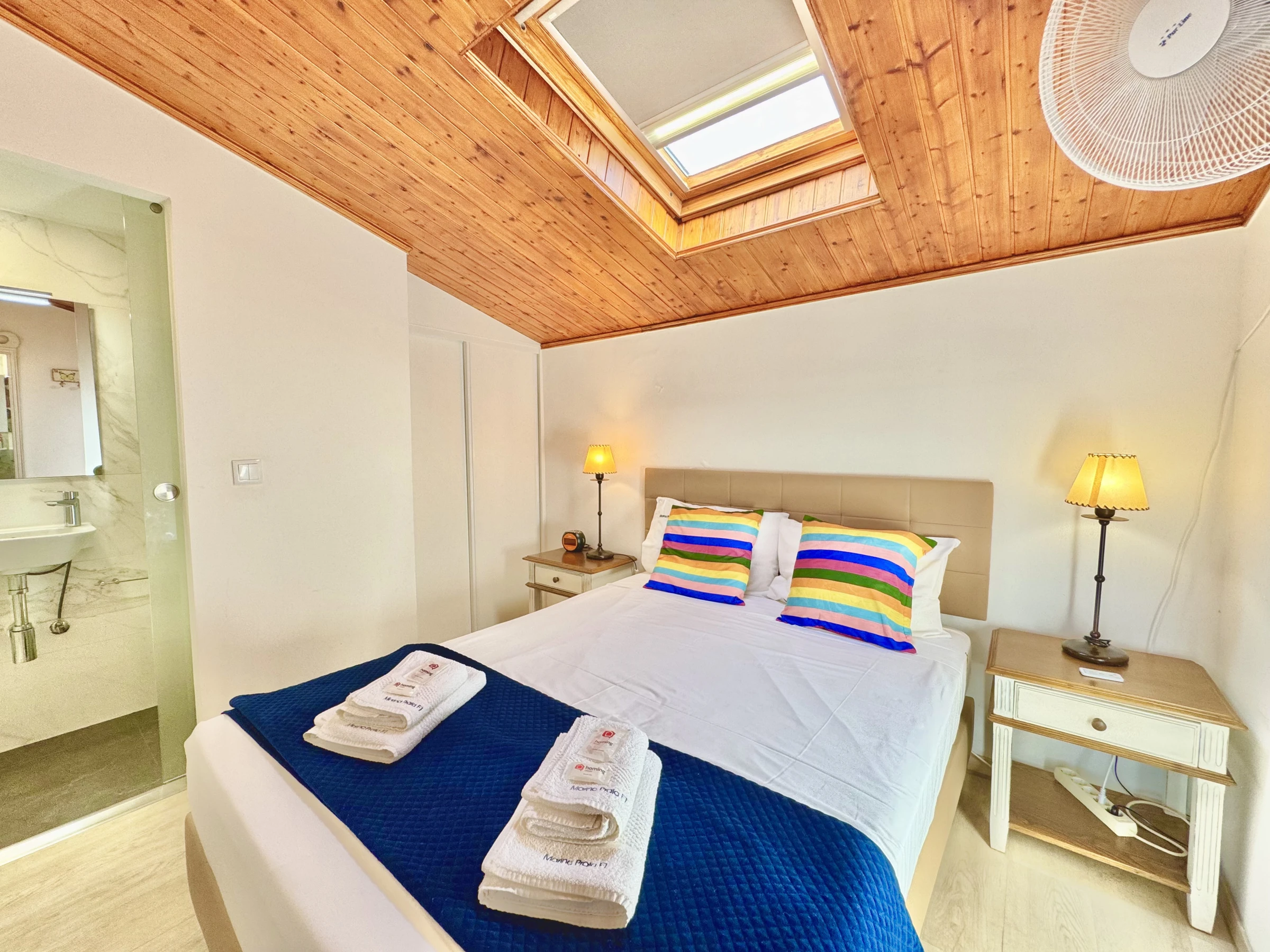 Der Raum umfasst ein helles Wohnzimmer, eine voll ausgestattete Küche, zwei komfortable Schlafzimmer (eines mit einem Doppelbett und das andere mit zwei Einzelbetten oder einem Etagenbett nach Wunsch) und ein modernes Badezimmer.