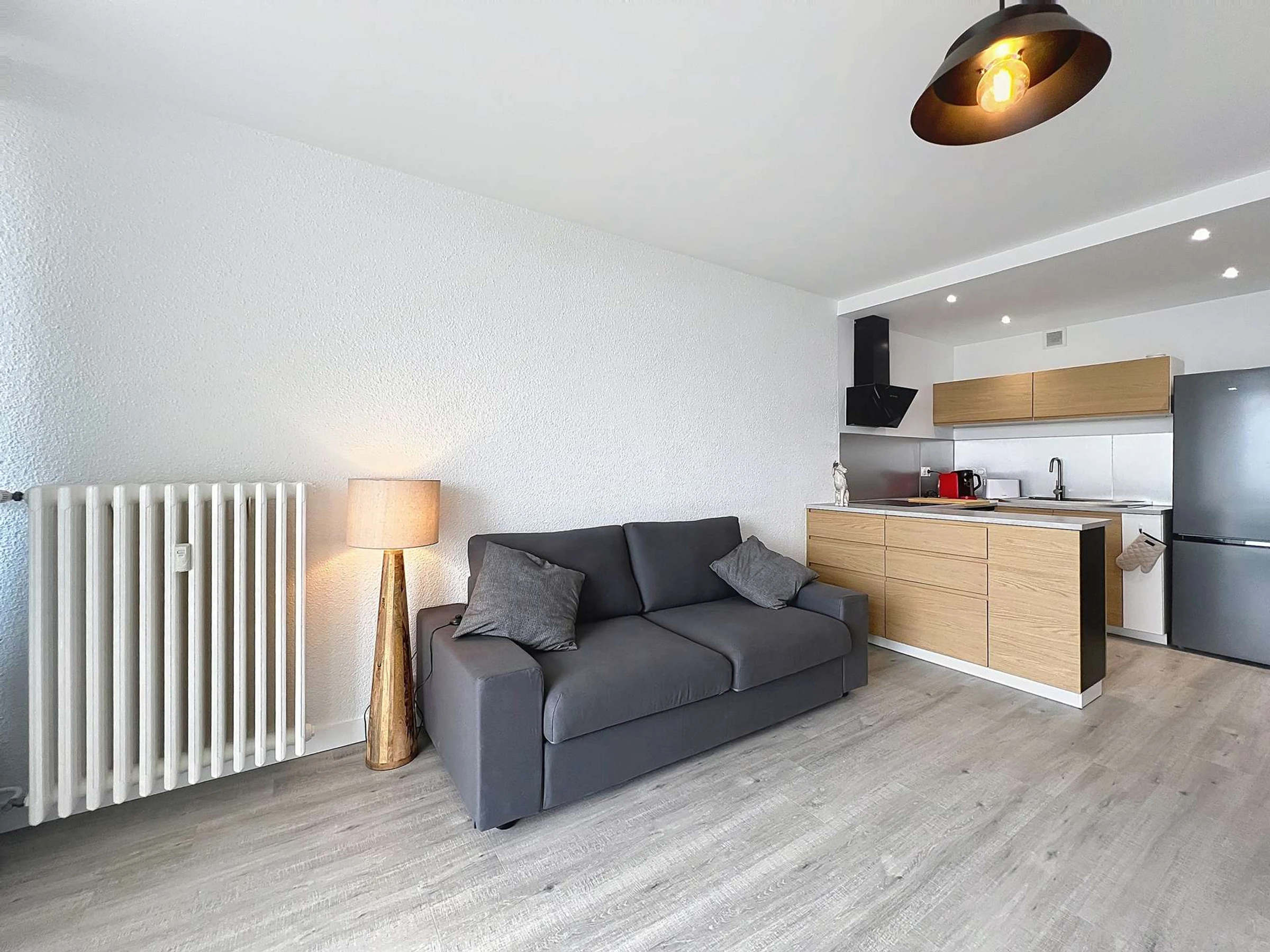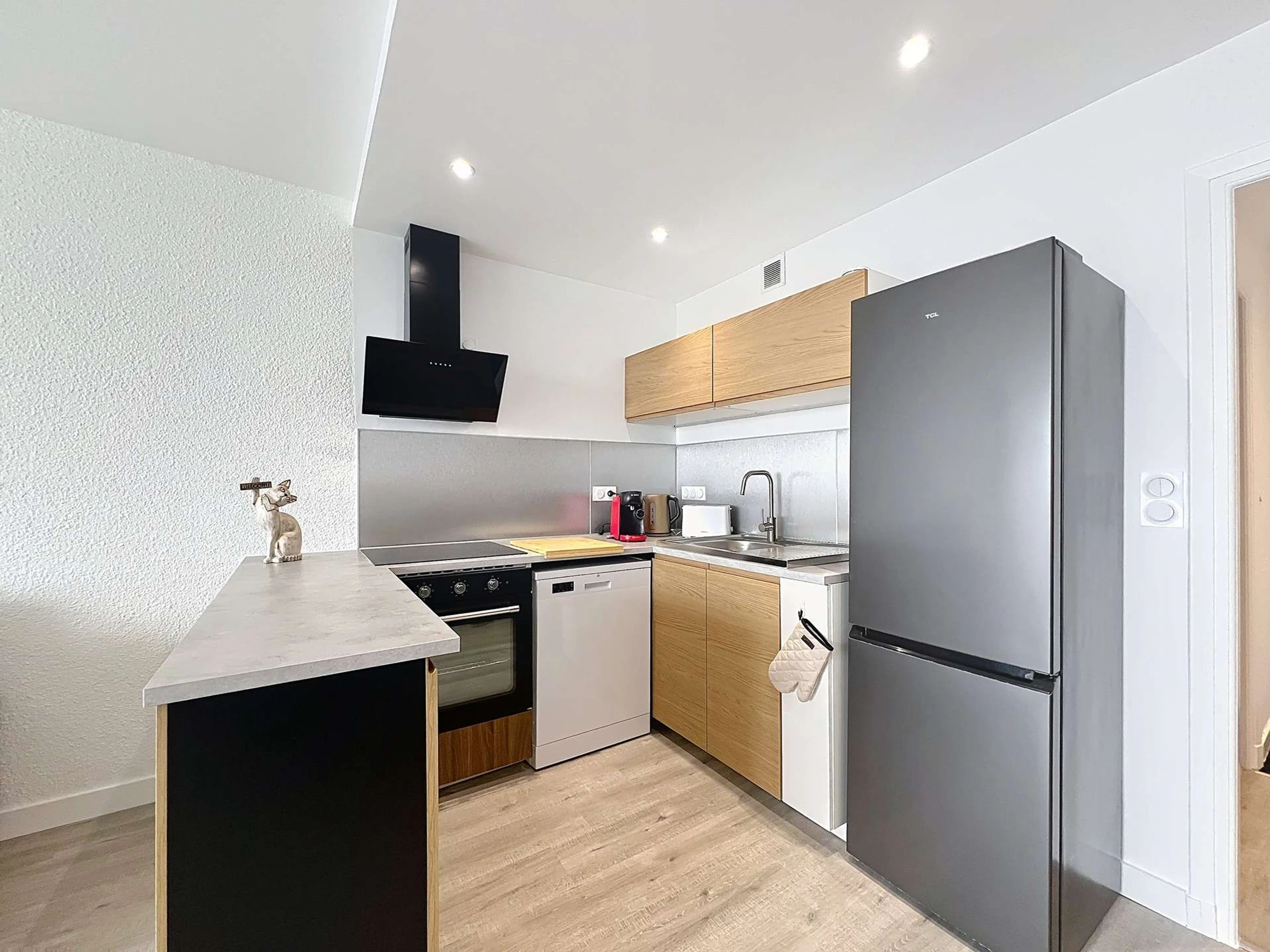 - offene, voll ausgestattete Küche (Kühl-/Gefrierschrank, Induktionskochfeld, Dunstabzugshaube, Backofen, Geschirrspüler, Kaffeemaschine, Wasserkocher, Toaster),
