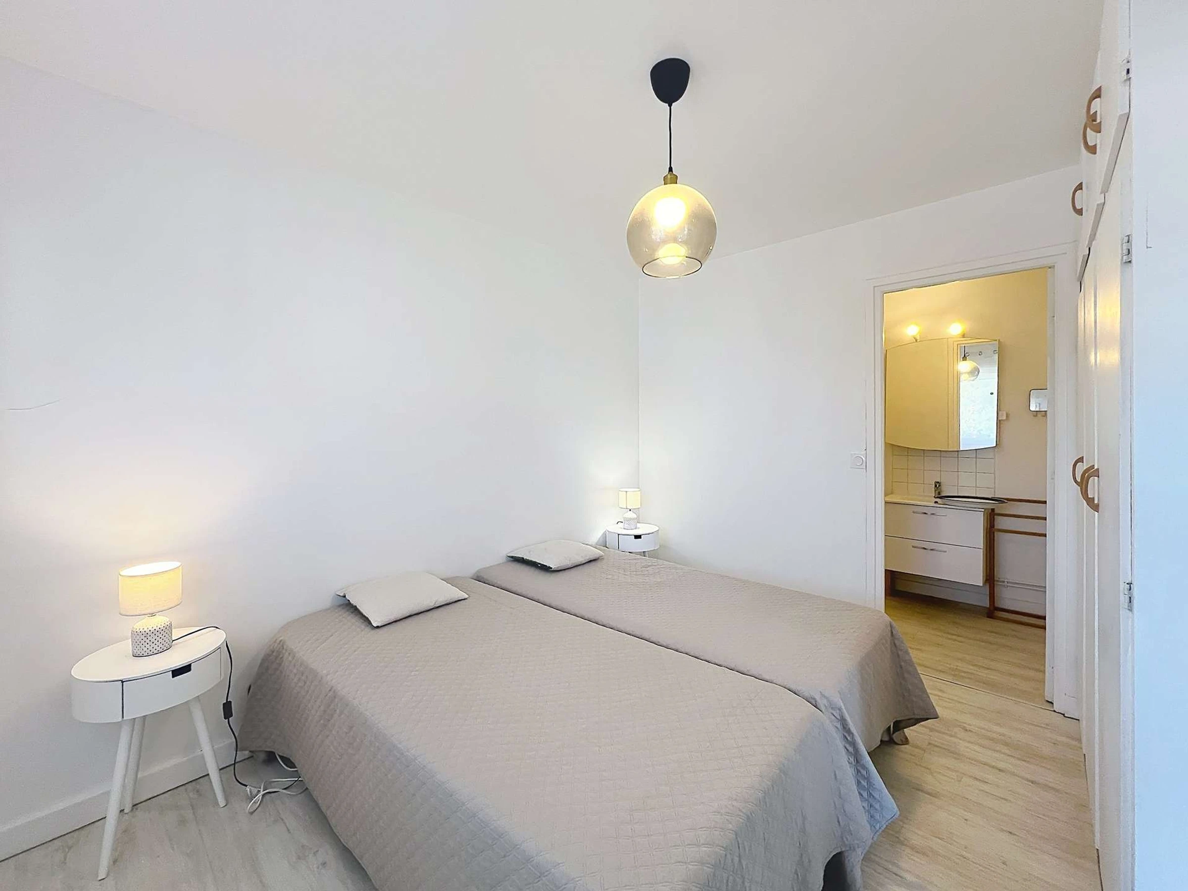 - Schlafzimmer mit zwei 90 cm breiten Betten und eigenem Duschbad,