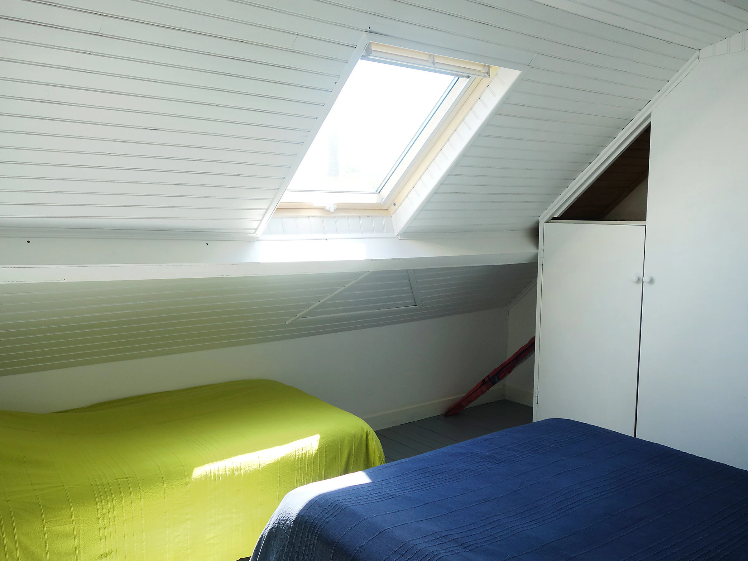 4-Zimmer-Haus 75 m2, Südwestlage. Objekt geeignet für 4 Erwachsene + 2 Kinder. Komfortabel und schön eingerichtet: Wohn-/Esszimmer mit TV. Ausgang zum Garten. 1 Zimmer, ohne Schrank mit 1 franz. Bett (1 x 140 cm), Dusche. Ausgang zum Garten, zur Terrasse. Küche (4 Kochplatten, Geschirrspüler, Mikrowelle, elektrische Kaffeemaschine). Dusche, sep. WC. E-Heizung. Obergeschoss: 1 Zimmer mit 1 franz. Bett (1 x 140 cm), Waschbecken und Dusche. 1 Zimmer mit 4 Betten (90 cm, Länge 190 cm). Sep. WC. Terrassenmöbel, Liegestühle (3). Zur Verfügung: Waschmaschine, Bügeleisen. Internet (Wireless LAN). Memory Stick (gratis). Parkplatz. Bitte beachten: Rauchmelder.