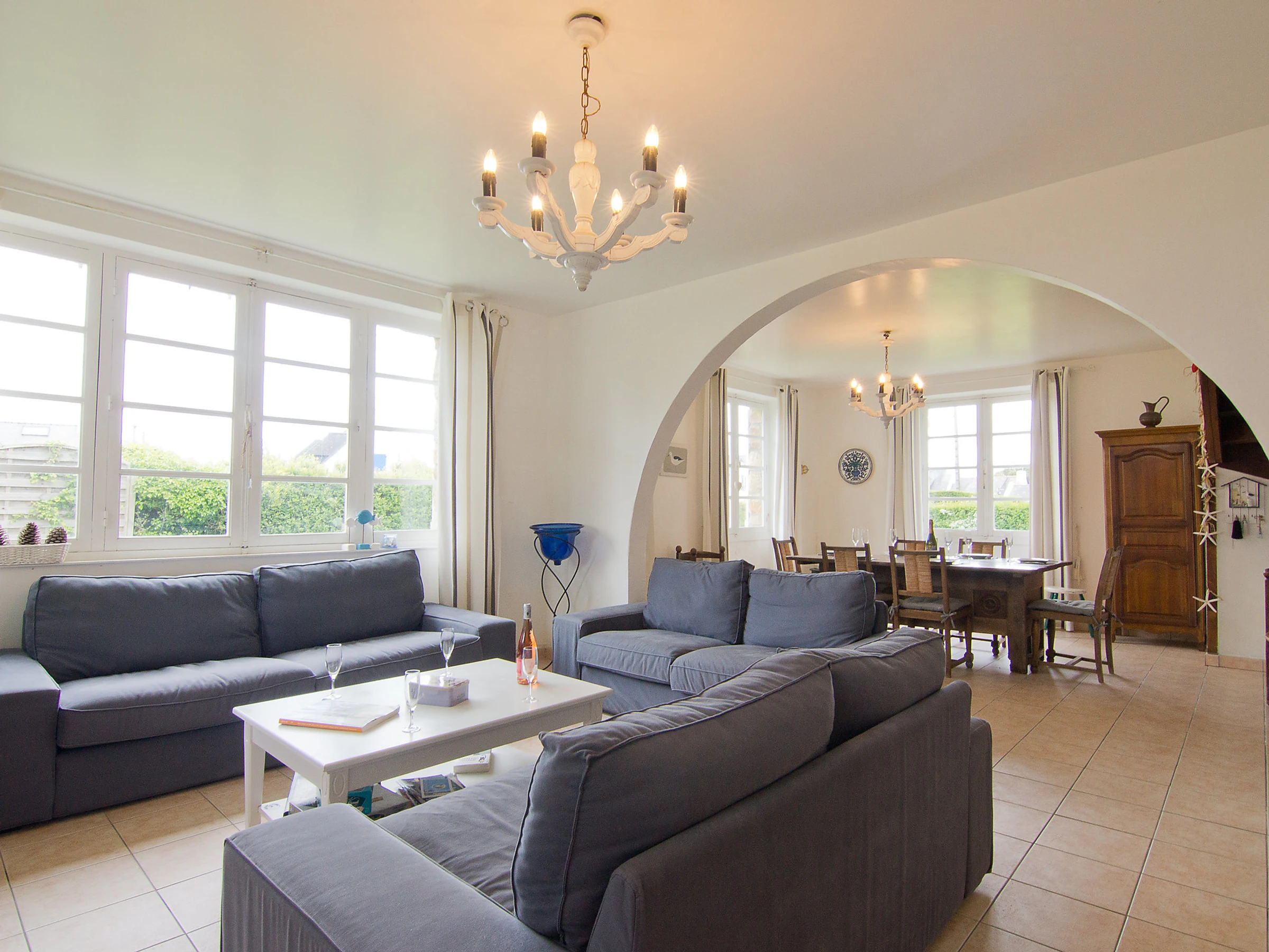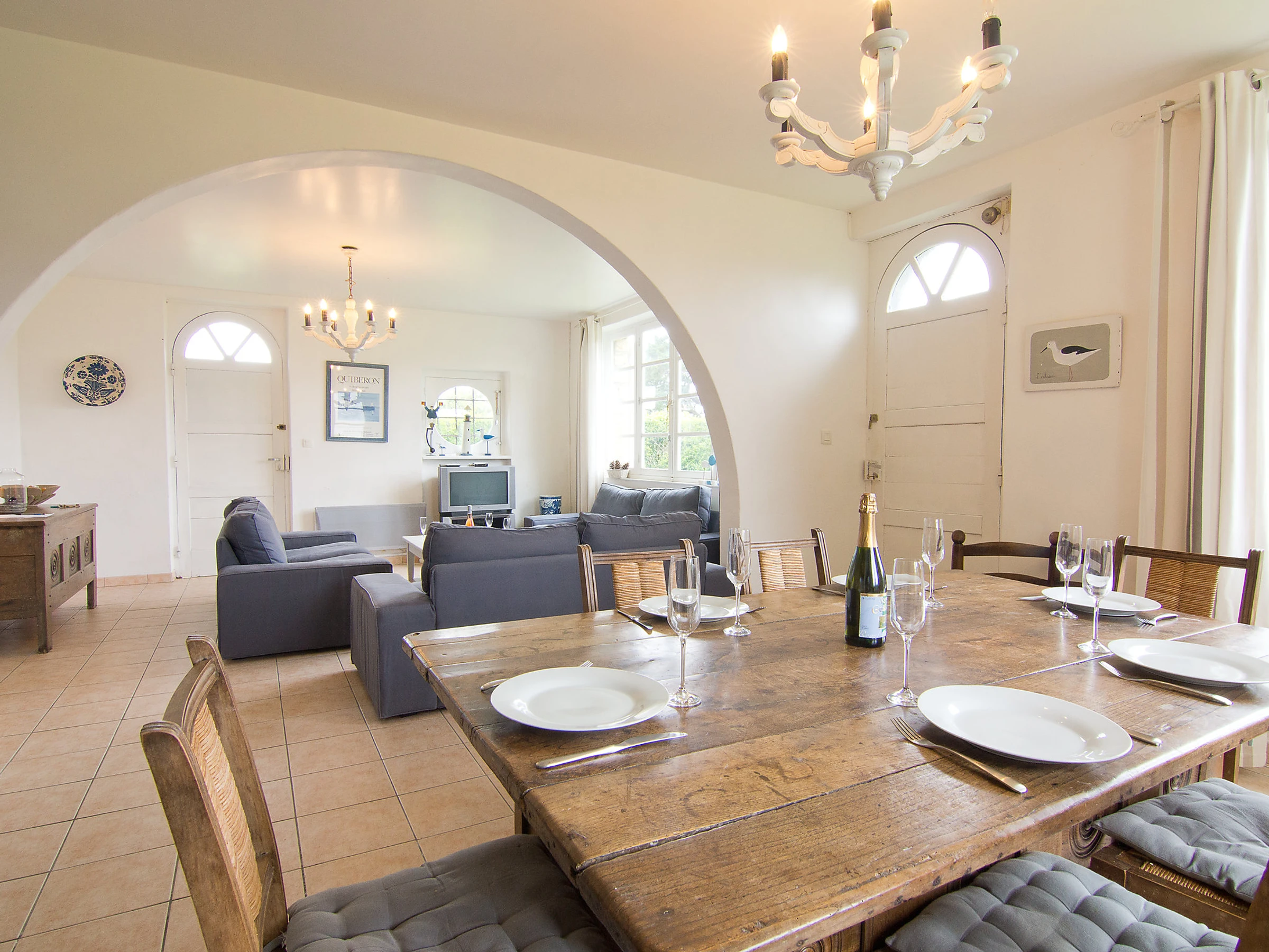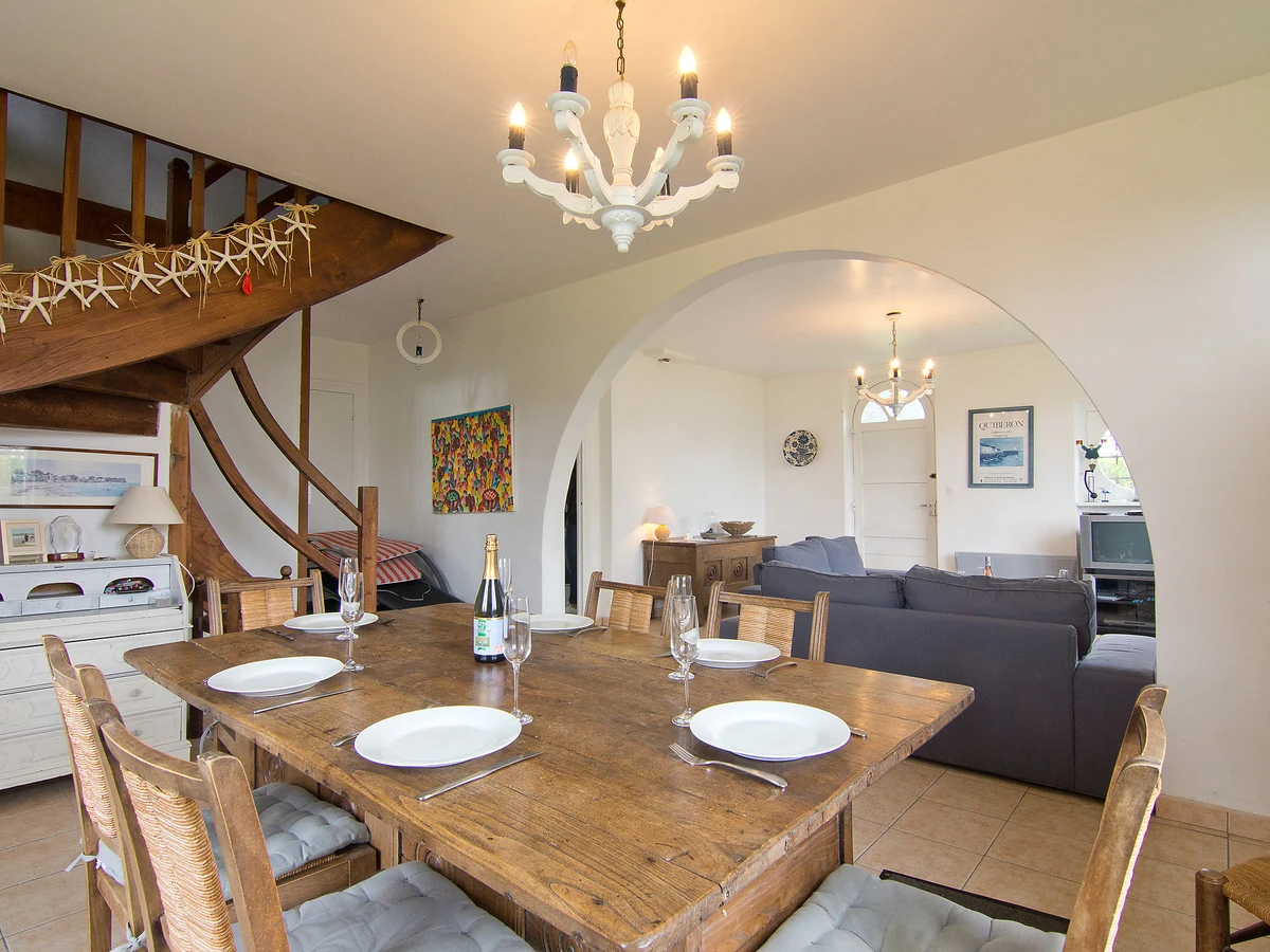 Einfamilienhaus "Kerbourgnec". Im Ort, 700 m vom Zentrum, 50 m vom Meer, 50 m vom Strand, Strasse zu überqueren. Zur Alleinbenutzung: Garten 500 m2 (eingezäunt) mit Rasen. Bahnstation "Auray" 23 km. Golfplatz (18 Loch) 23 km, Segelschule, Tennis 200 m. Nahe gelegene Sehenswürdigkeiten: Auray 23 km, Vannes 47 km, Lorient 48 km, Thalassothérapie Carnac 18 km, Alignements Carnac 18 km.