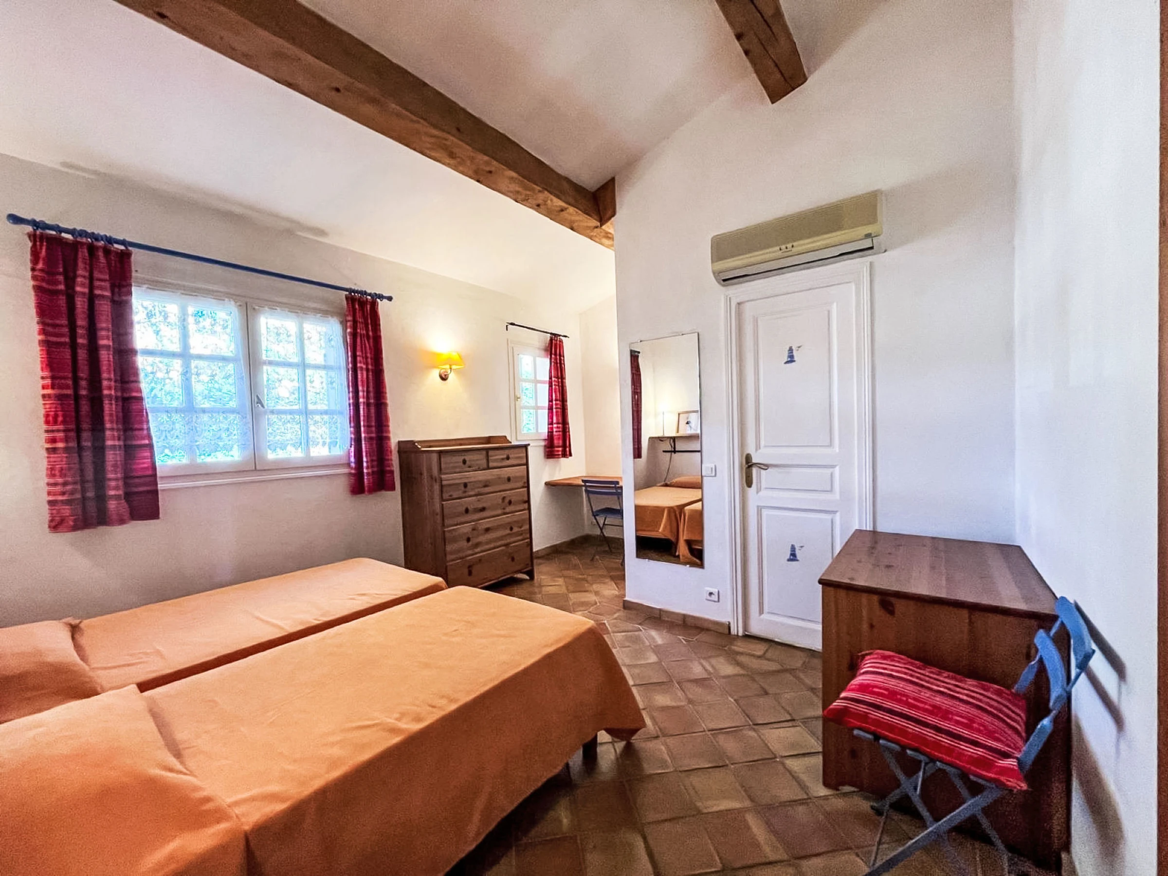 3-Zimmer-Haus 90 m2. Gemütlich eingerichtet: Wohn-/Esszimmer mit TV (Flachbildschirm). Ausgang zur Terrasse. 1 Zimmer mit 1 franz. Bett (160 cm, Länge 190 cm), Dusche/WC und Doppelwaschbecken. Ausgang zur Terrasse. 1 Zimmer mit 2 Betten (90 cm, Länge 190 cm), Dusche. Offene Küche (4 Kochplatten, Backofen, Geschirrspüler, Toaster, Wasserkocher, Mikrowelle, Tiefkühler, elektrische Kaffeemaschine, Kapseln für die Kaffeemaschine (Nespresso) extra). Sep. WC. E-Heizung, Klimaanlage. Grosse Terrasse 45 m2 teilweise überdacht, Südostlage. Terrassenmöbel, Gartengrill, Liegestühle (4). Zur Verfügung: Waschmaschine, Bügeleisen. Internet (WLAN, gratis). Parkplatz (2 Autos). Bitte beachten: Nichtraucher-Unterkunft. Maximal 1 Haustier/Hund erlaubt. Rauchmelder. Inserat einer Privatperson nach Artikel 155, IV, CGI. [hidden]