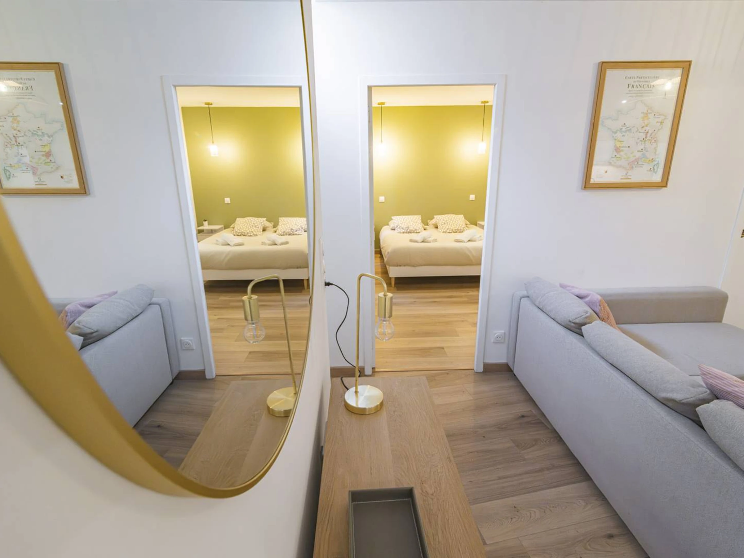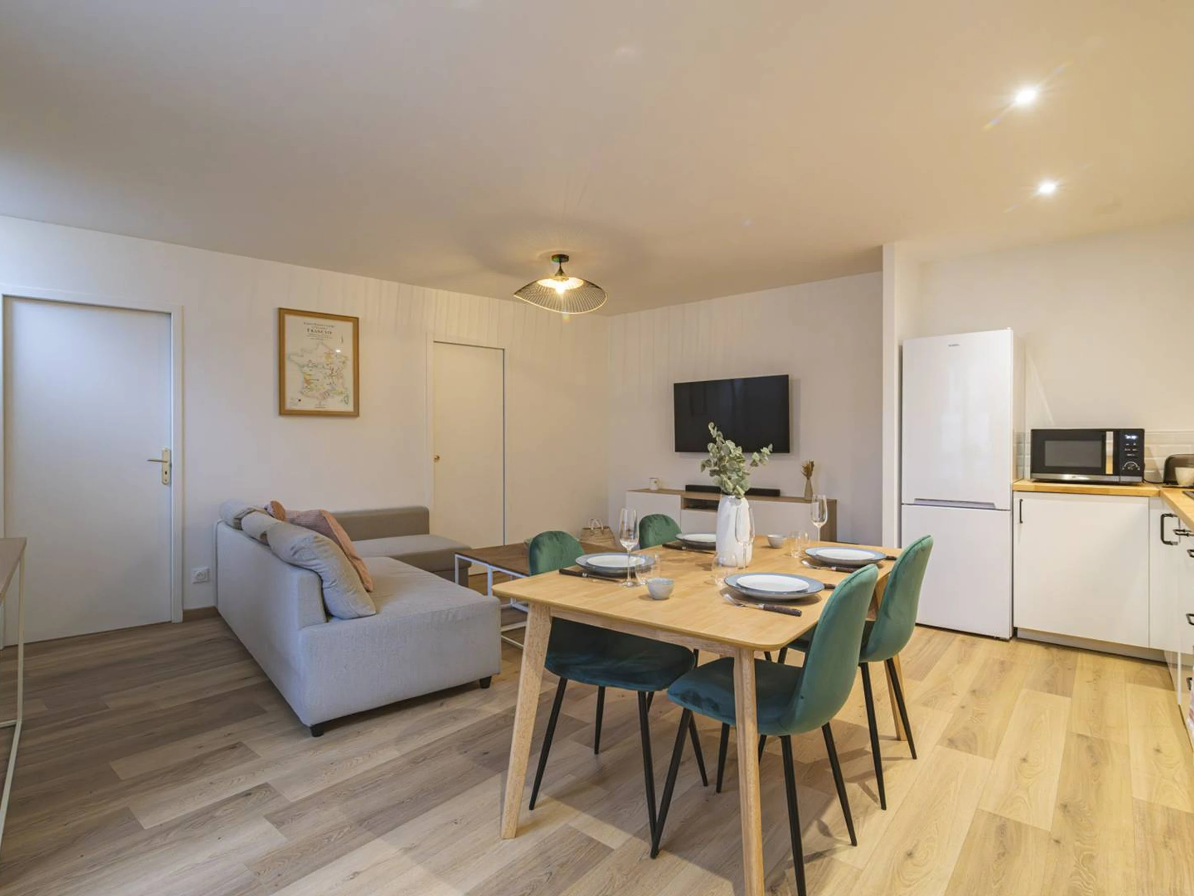 Fühlen Sie sich wie zu Hause in diesem geräumigen und hellen Apartment in bester Lage im Herzen von Reims. Die ebenerdige Wohnung vereint modernen Komfort und praktische Ausstattung für einen rundum gelungenen Aufenthalt. Nur wenige Schritte vom Bahnhof und dem Place d'Erlon entfernt, ist sie der perfekte Ausgangspunkt für Ihren Besuch in der Königsstadt.