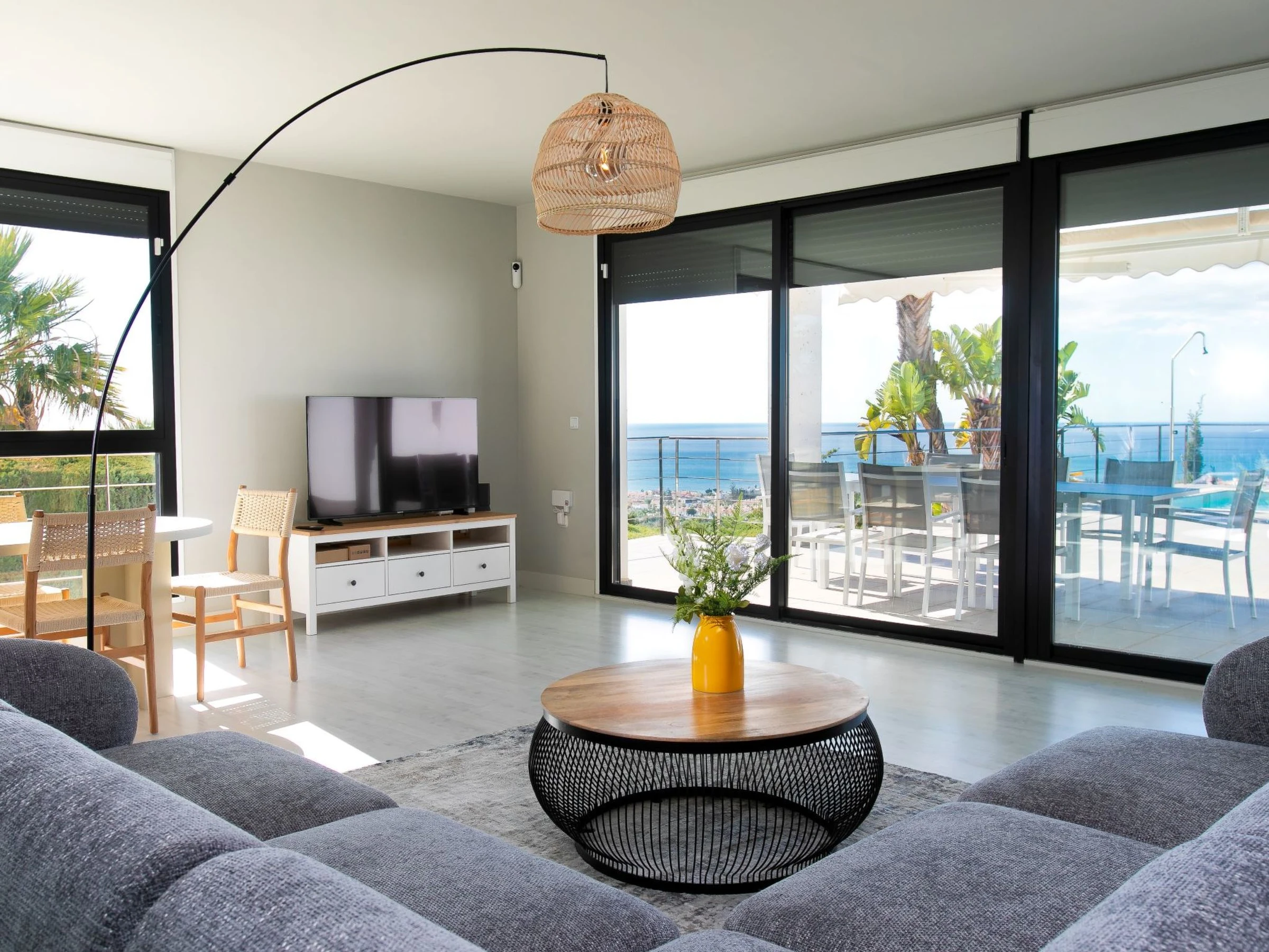 "Venezuela", 5-Zimmer-Villa 212 m2 auf 2 Stockwerken, Südwestlage. Hell, sehr modern eingerichtet: Wohnzimmer, Richtung Südwesten mit Digital-TV. Ausgang zur Terrasse, zum Schwimmbad. 1 Zimmer mit 1 franz. Bett (1 x 140 cm, Länge 180 cm). Küche (4 Kochplatten, Backofen, Geschirrspüler, 3 Glaskeramikplatten, Toaster, Wasserkocher, Mikrowelle, Tiefkühler, elektrische Kaffeemaschine, Kombinationsmikrowelle) mit Esstisch. Dusche/WC. Klimaanlage, Warmluftheizung, Boiler (100 Liter). Obergeschoss: 1 Zimmer mit 1 franz. Bett (1 x 180 cm, Länge 190 cm). Ausgang zur Terrasse, Richtung Südwesten. 1 Zimmer mit 1 franz. Bett (1 x 160 cm, Länge 190 cm), Dusche/Bidet/WC. Ausgang zur Terrasse. 1 Zimmer mit 1 franz. Bett (1 x 140 cm, Länge 180 cm). Bad/Bidet/WC. Klimaanlage, Warmluftheizung. Grosse Terrasse 70 m2 teilweise überdacht, Südwestlage, 2 Terrassen 20 m2. Terrassenmöbel, Liegestühle. Sehr schöne Panoramasicht auf das Meer. Zur Verfügung: Waschmaschine, Bügeleisen, Haartrockner. Internet (WLAN, gratis). Bitte beachten: geeignet für Familien. TV nur ES. [hidden] // Reg. Nr.: ESFCTU0000290250005747900000000000000000[hidden]0