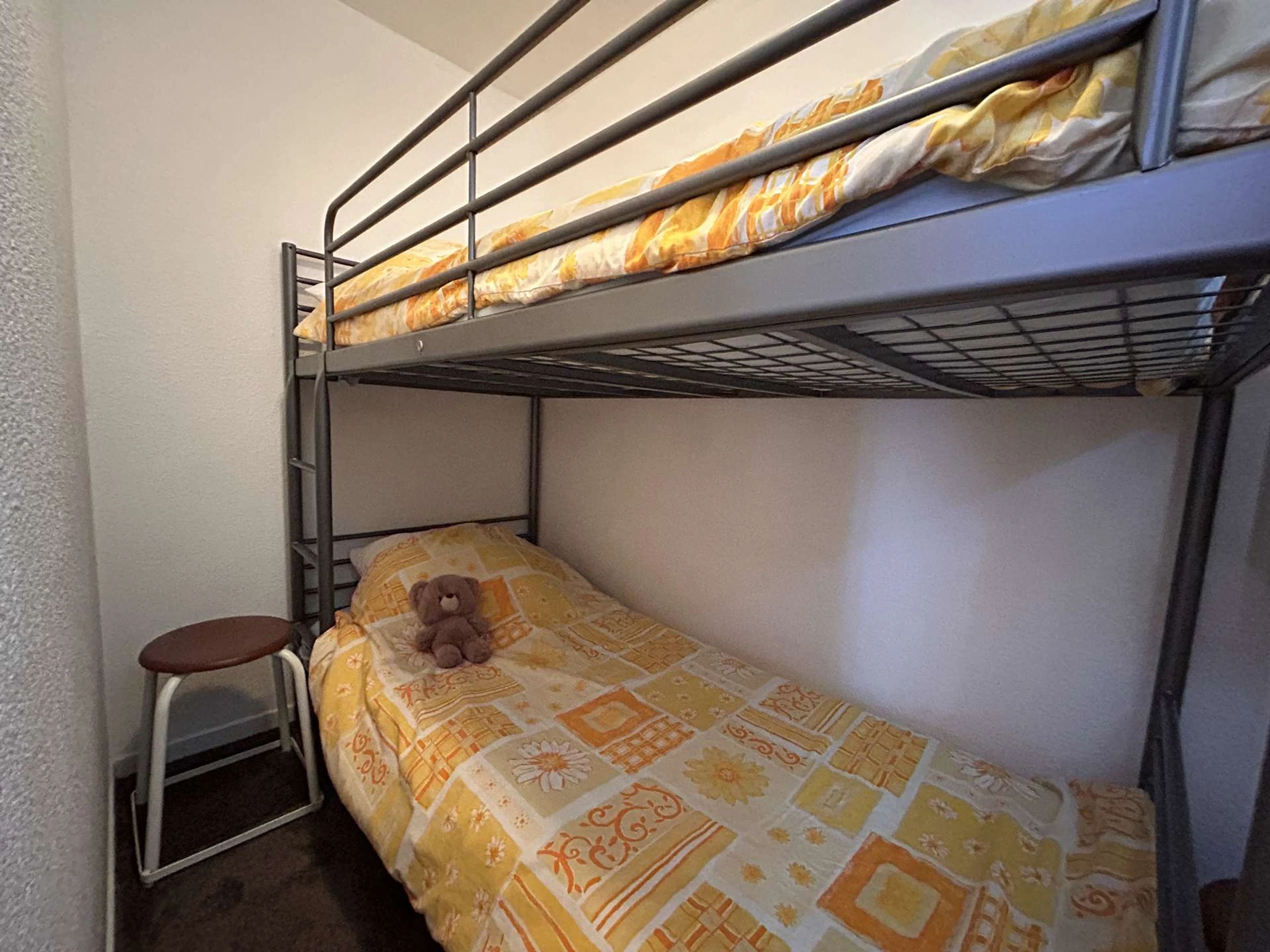 Diese Ferienwohnung im Herzen des Ferienortes bietet ein Schlafsofa im Wohnzimmer und eine Schlafnische mit zwei Etagenbetten.