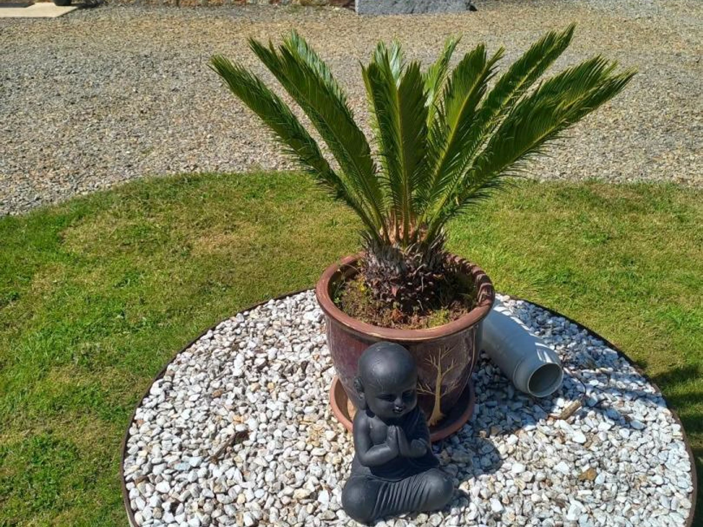 Nicht eingezäunter Garten 200 m² mit privater Westterrasse (ohne Einsicht), umgeben von Weiden mit Schafen, Eseln und Ponys. Überdachter Innenhof und Carport.
