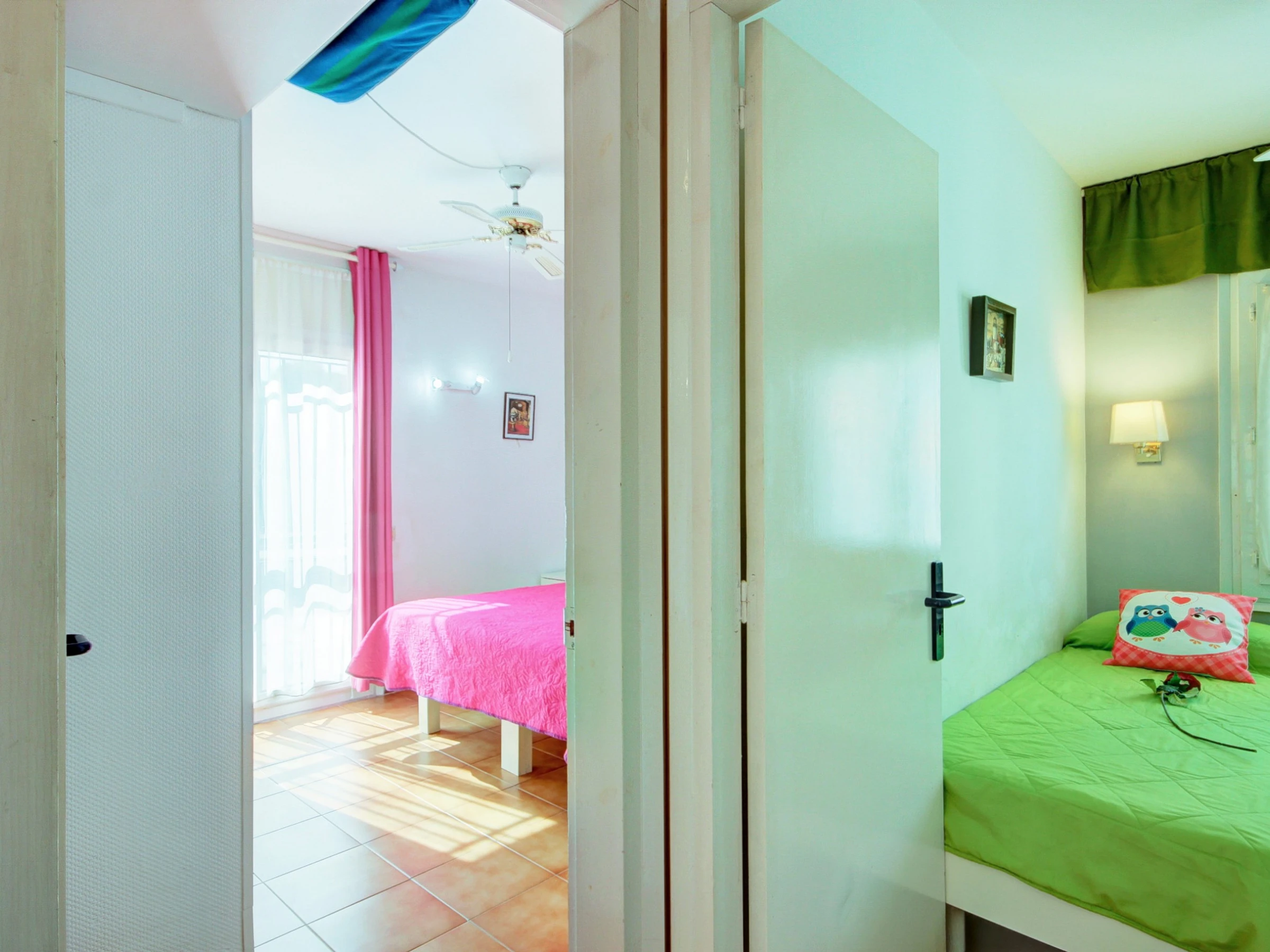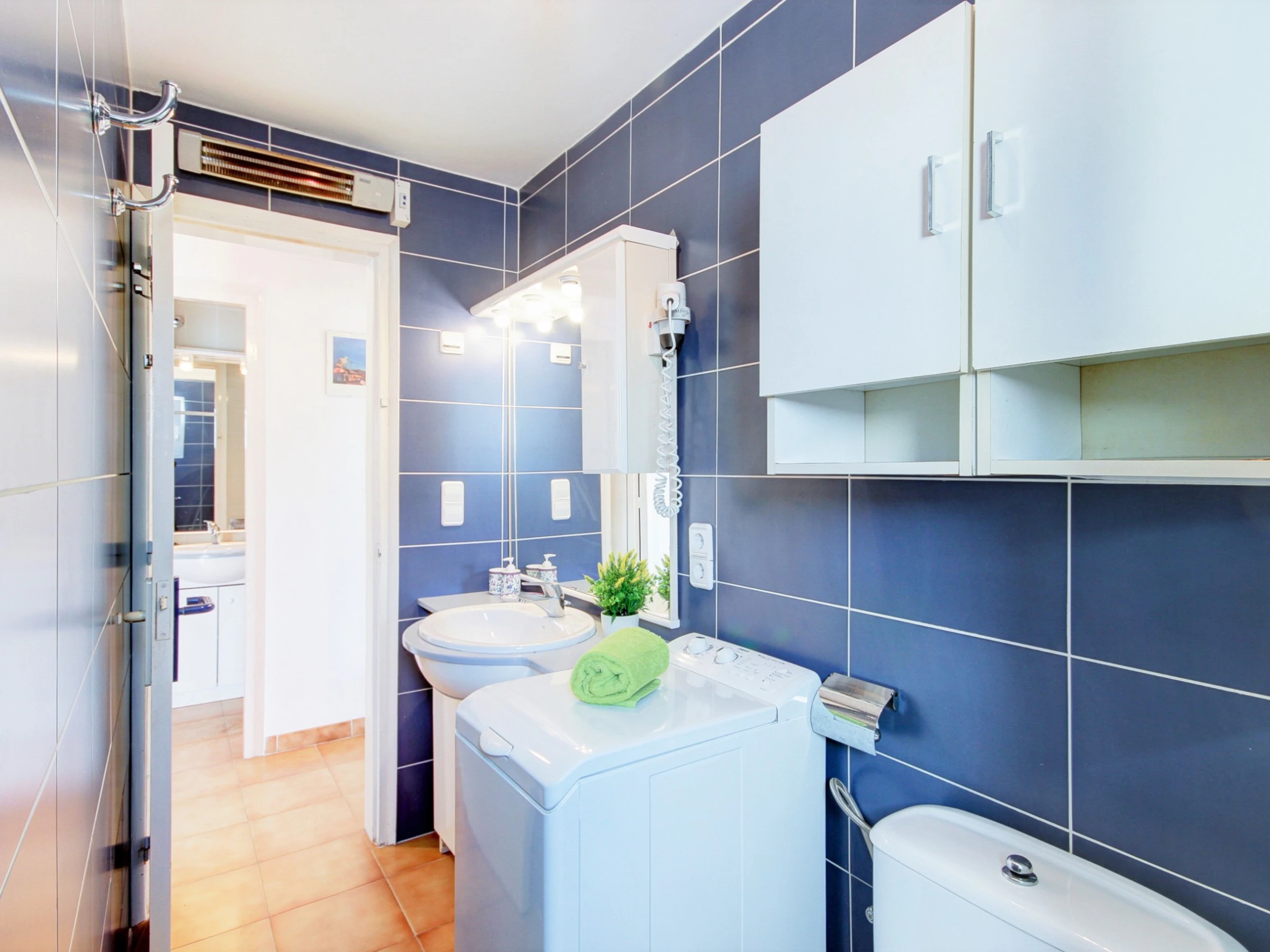Mit einem Zimmer mit einem 1,50 m breiten Bett und einem weiteren mit zwei 0,90 m breiten Einzelbetten ist die Wohnung perfekt für Paare, Familien oder Freunde. Darüber hinaus verfügt es über ein Badezimmer mit Toilette und ein weiteres mit Dusche und Waschmaschine.