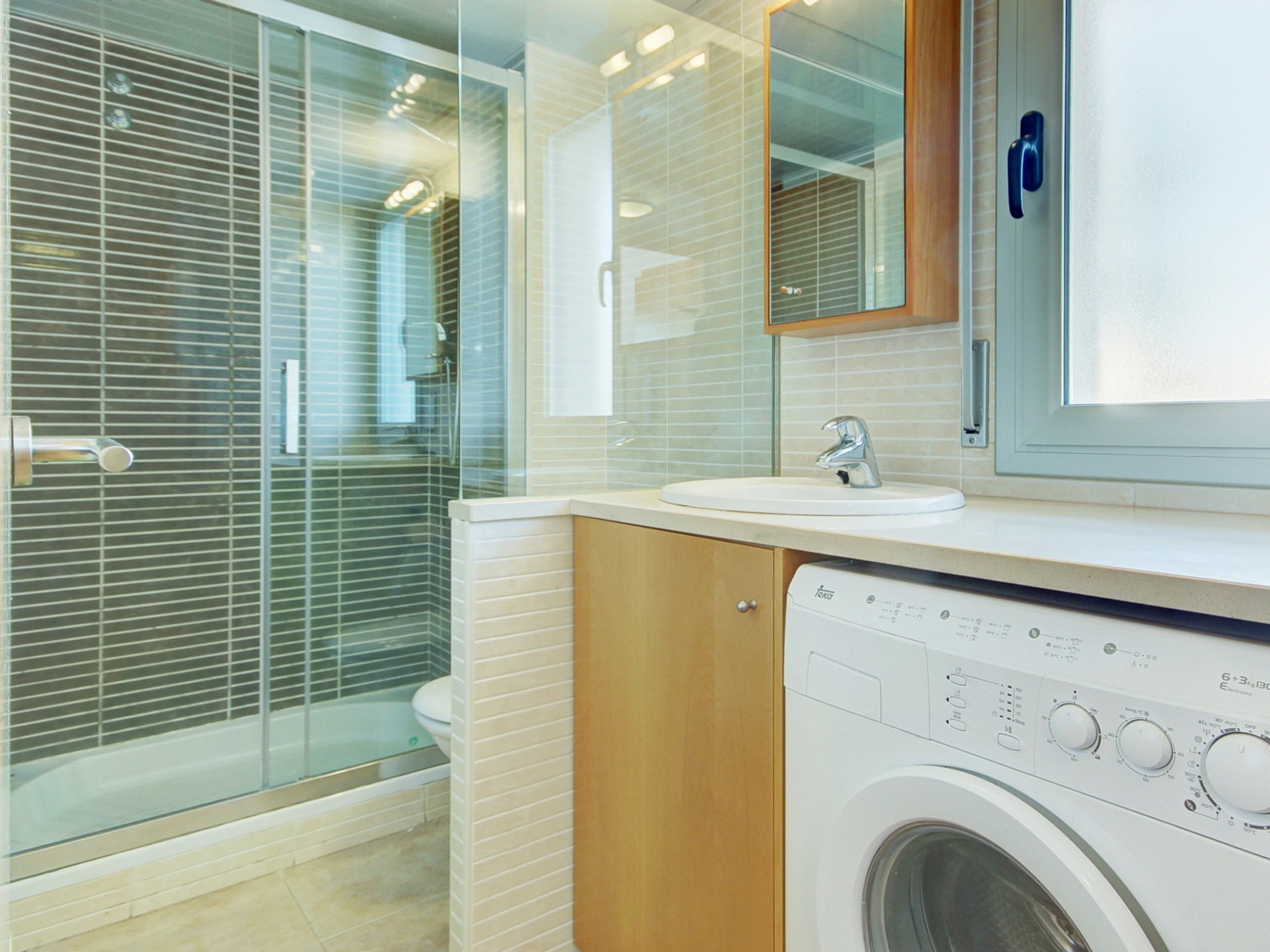 Diese gemütliche Neubauwohnung mit zwei Schlafzimmern ist für 4 Personen geeignet und hat eine Fläche von 53 m². Die Zimmer sind schön und komfortabel. Eines davon ist mit einem 1,50-Doppelbett ausgestattet, während das zweite mit einem Ausziehbett für 2 Personen (2 x 0,90) ausgestattet ist. Das gemütliche und moderne Wohn-Esszimmer verfügt über ein Sofa, Wohnzimmermöbel, Fernseher und einen Esstisch mit Stühlen. Die offene Küche ist ausgestattet mit Cerankochfeld, Kühlschrank, Mikrowelle, Backofen, Waschmaschine, Spülmaschine, Geschirr, Besteck, Küchenutensilien, Kaffeemaschine. Es gibt ein Badezimmer mit Dusche. Darüber hinaus ist die Unterkunft mit folgenden Einrichtungen ausgestattet: Aufzug, Gartenmöbel, Terrasse, Bügeleisen, Wärmepumpenheizung, Klimaanlage, Gemeinschaftspool, überdachter Parkplatz im selben Gebäude.