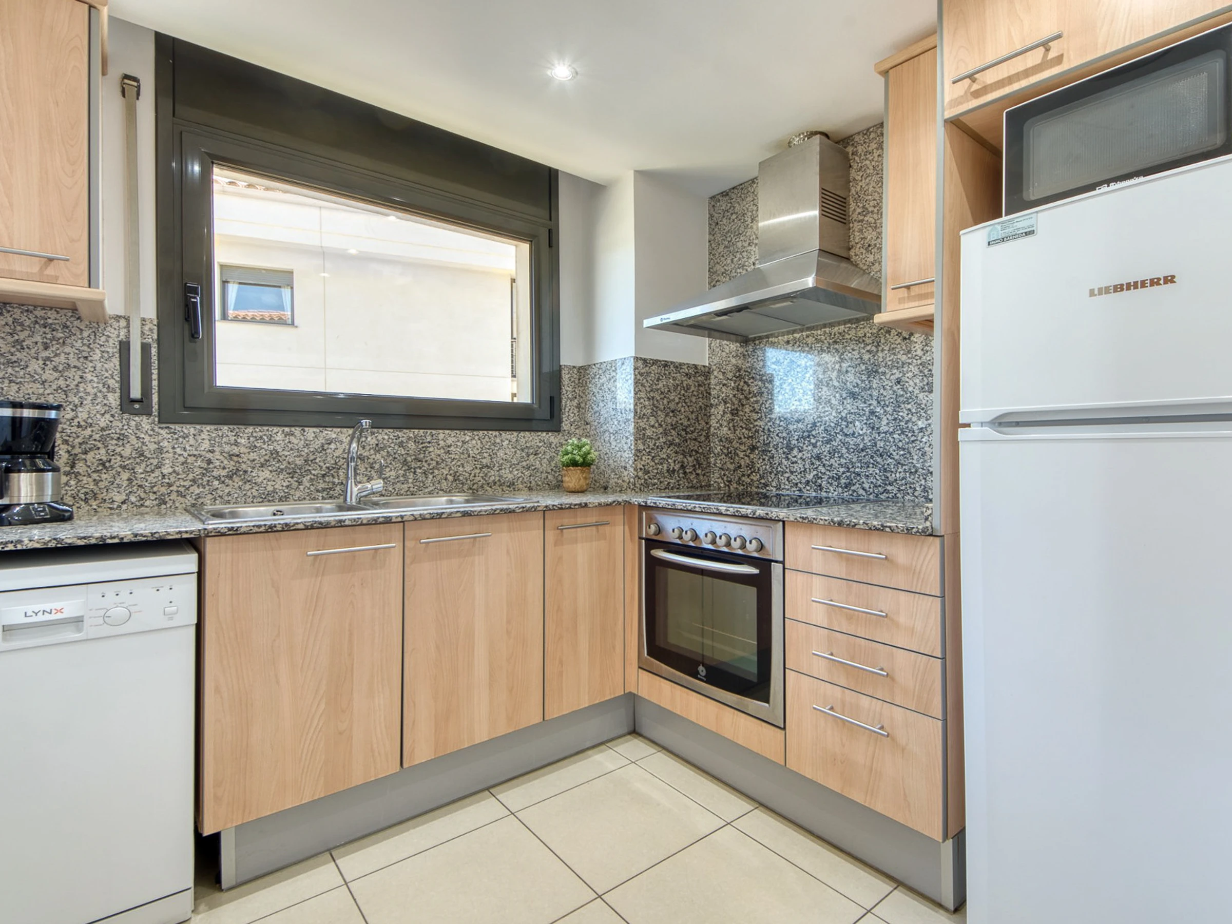 Küche: Moderne und voll ausgestattete Küche mit Cerankochfeld, Backofen, Mikrowelle, Geschirrspüler, Waschmaschine, Kaffeemaschine, Toaster, Kühlschrank, Gefrierschrank und allen notwendigen Utensilien zum Kochen.