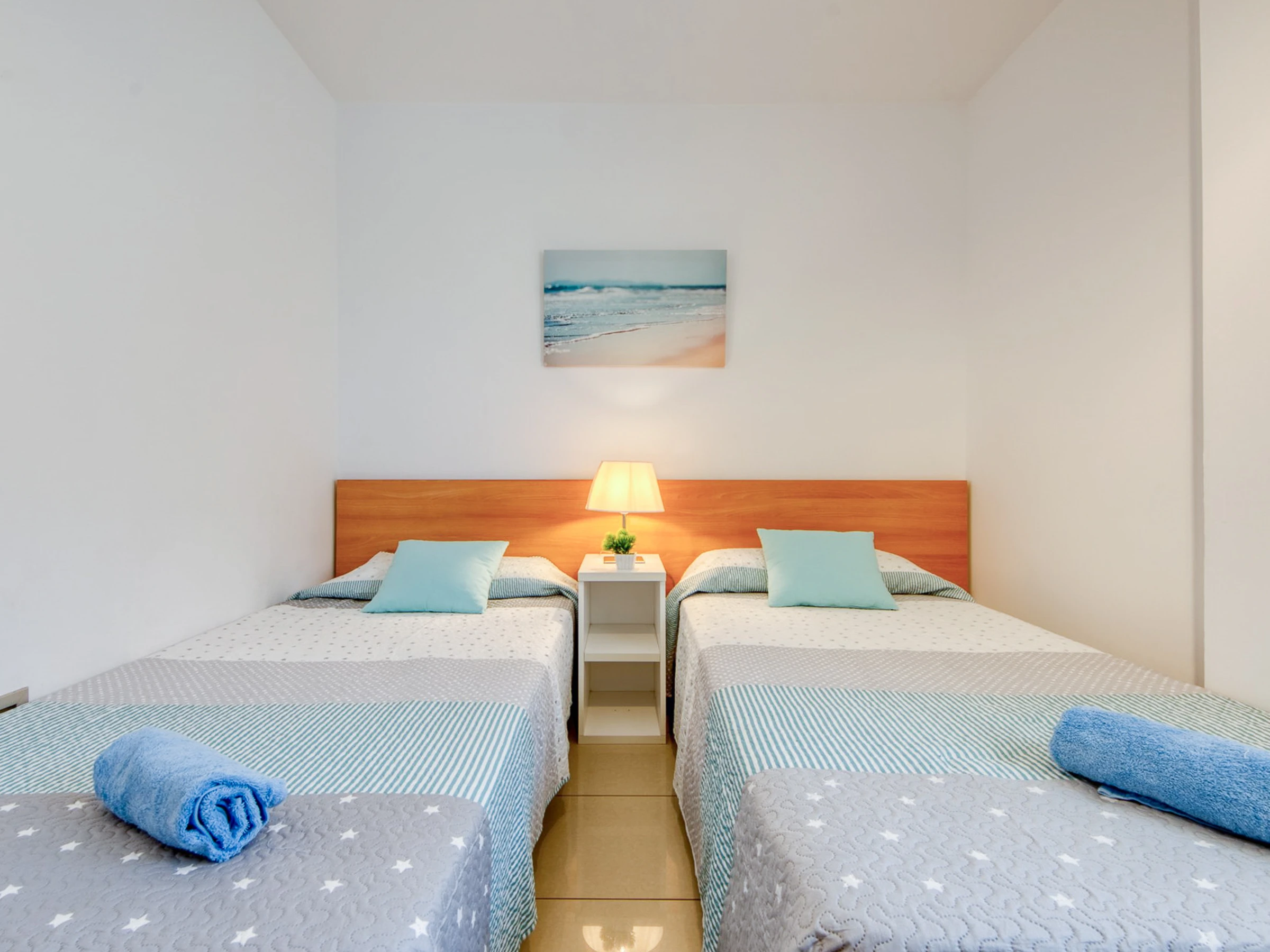 Aufteilung: Zwei Schlafzimmer, eines mit einem 1,50 m breiten Bett und das andere mit zwei 0,90 m breiten Betten