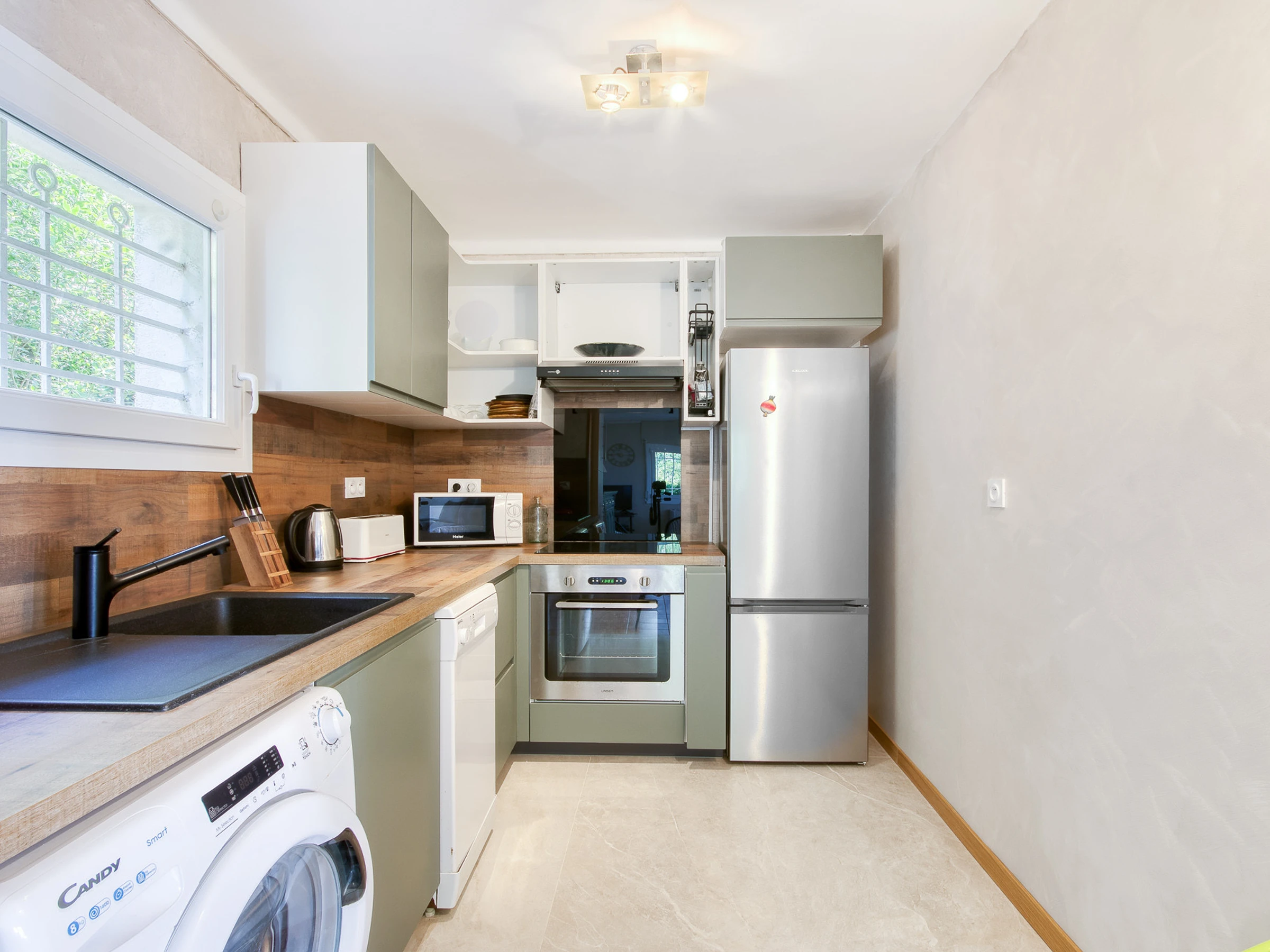 Die Wohnung verfügt über eine Terrasse von 20 m² mit Gartenmöbeln, von wo aus Sie atemberaubende Ausblicke auf das Meer und die Berge genießen können. Die Lage ist privilegiert, nur 350 Meter vom Sandstrand und 200 Meter von Restaurants entfernt.