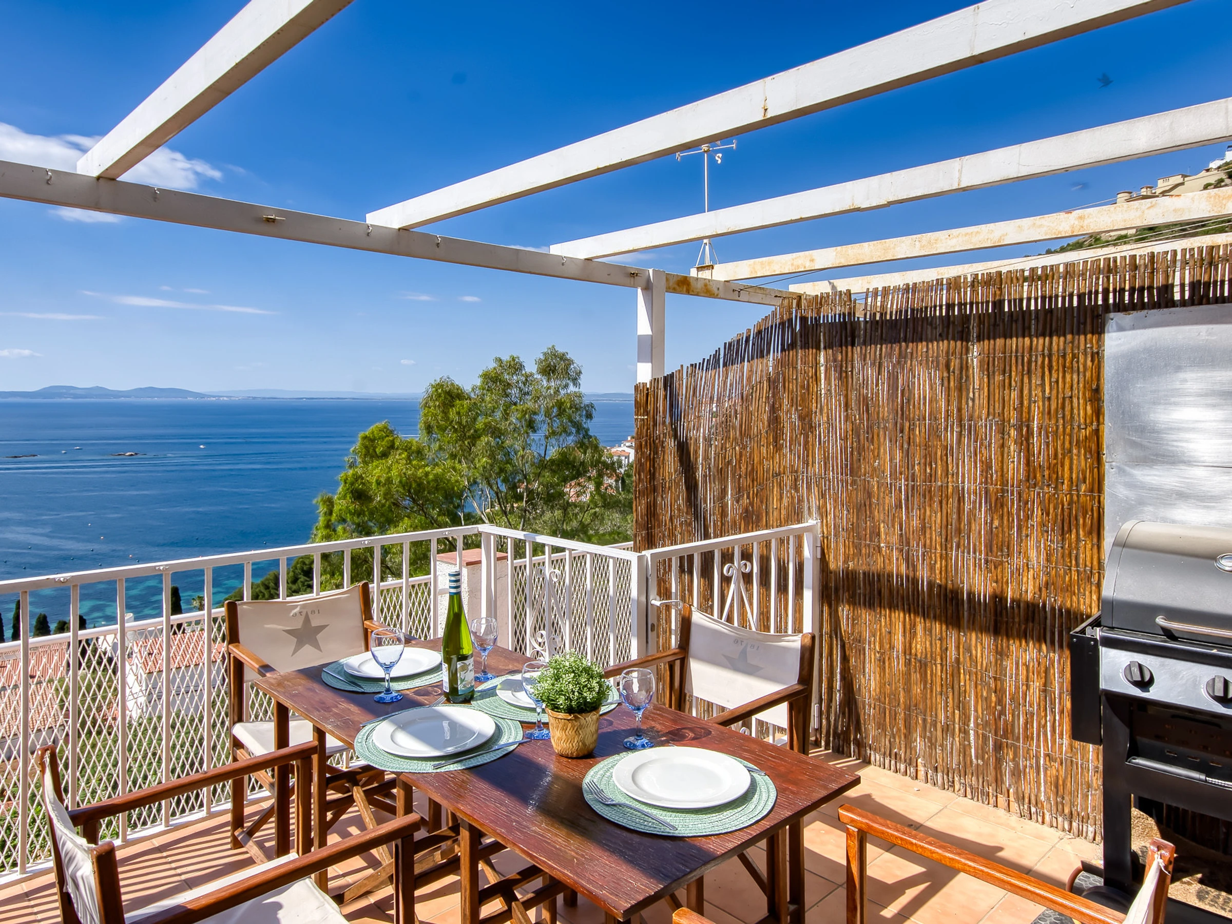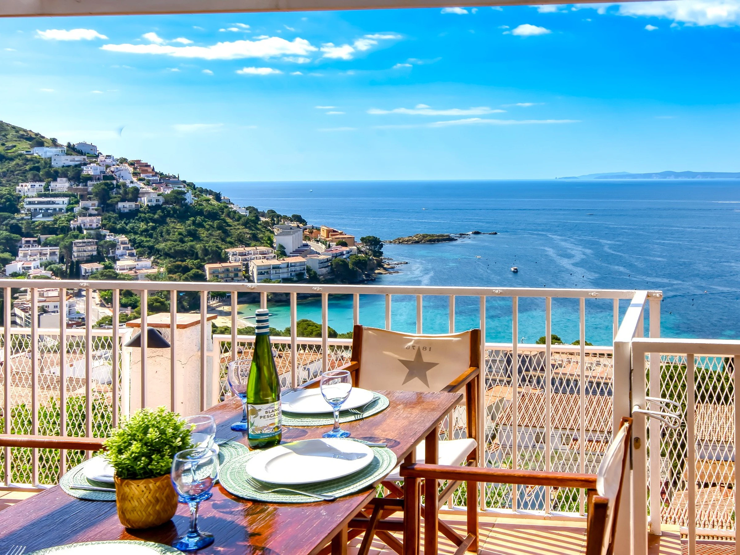 Prächtiges 53m2 Apartment mit einer großen Terrasse mit Grill und spektakulären Ausblicken auf die Bucht von Rosas, 15 Gehminuten vom Strand von Canyelles Petites entfernt.