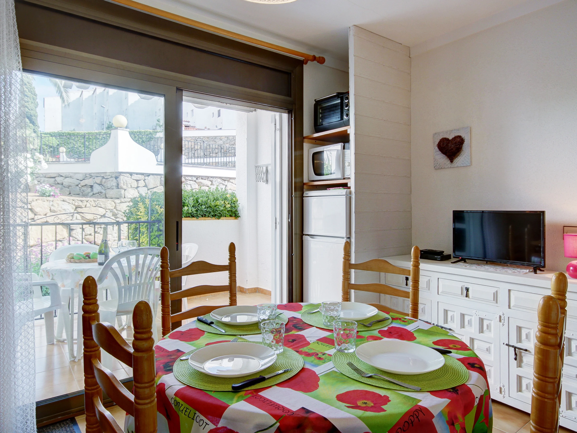 Willkommen in der Wohnung in Roses!!!! . Es ist ein perfekter Ort für einen Familienurlaub am Meer. Diese gemütliche, 30 Quadratmeter große, komfortable und sehr helle Unterkunft befindet sich im Komplex Jardins 2, der für seine Pool- und Gartenbereiche bekannt ist. Mit einem Schlafzimmer und einer Kapazität für bis zu 4 Personen ist er komfortabel und sehr hell und bietet Blick auf den schönen Garten und die Umgebung erfrischender Pool. .