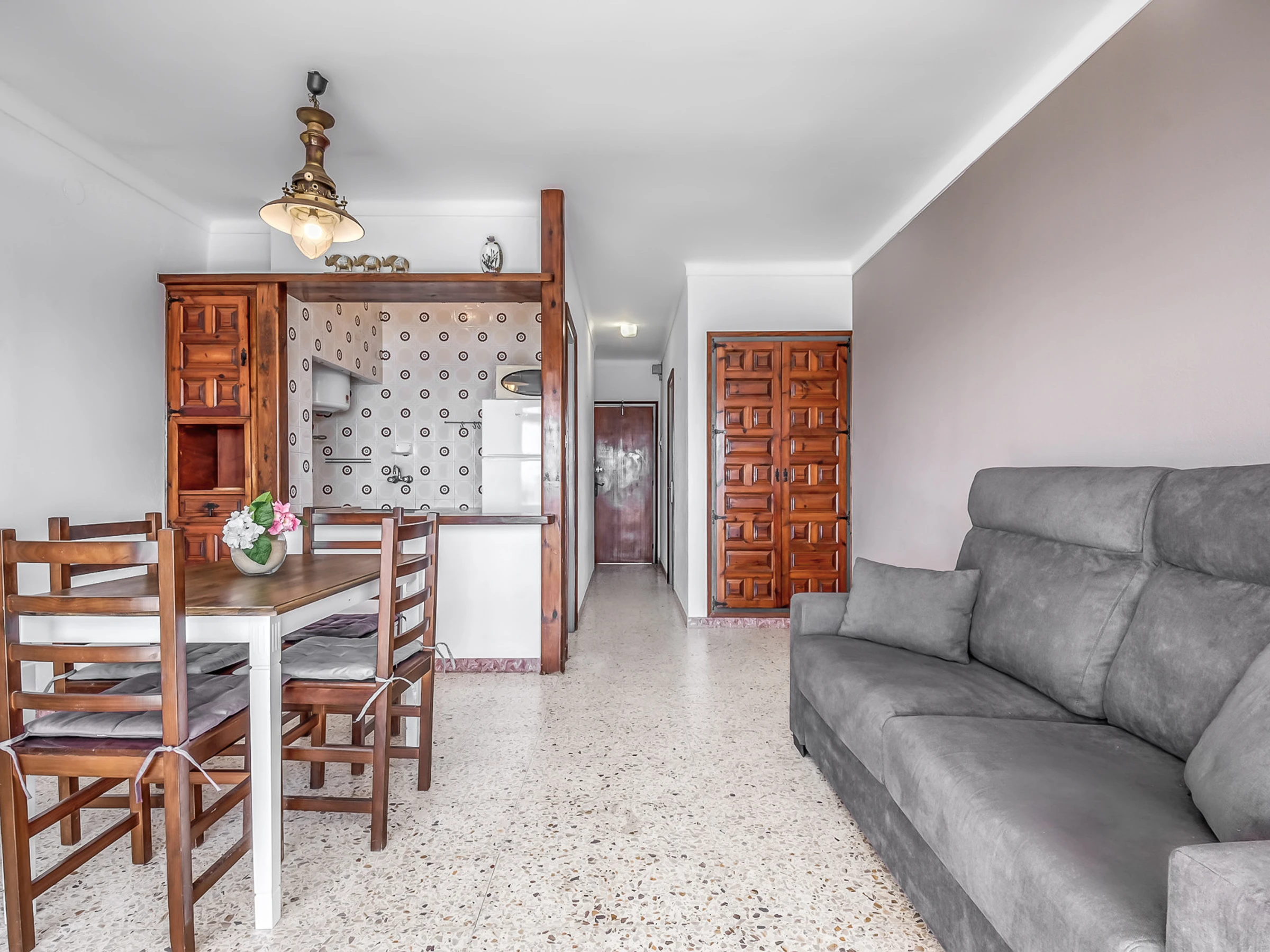 Immo Barneda Roses - Apartment am Strand von Almadrava - Roses mit Meerblick in einer der idyllischsten Gegenden der Costa Brava. Es verfügt über ein Esszimmer mit Kochnische, ein Zimmer mit zwei Einzelbetten und ein Badezimmer mit Dusche. Schlafsofa 2 Personen Wohnzimmer