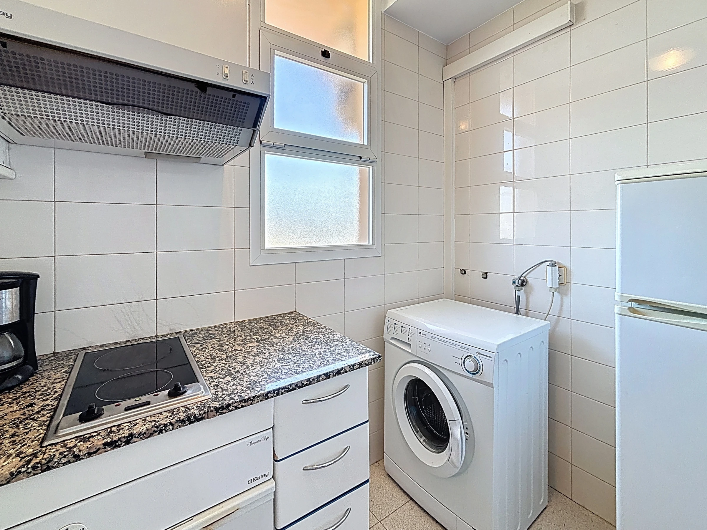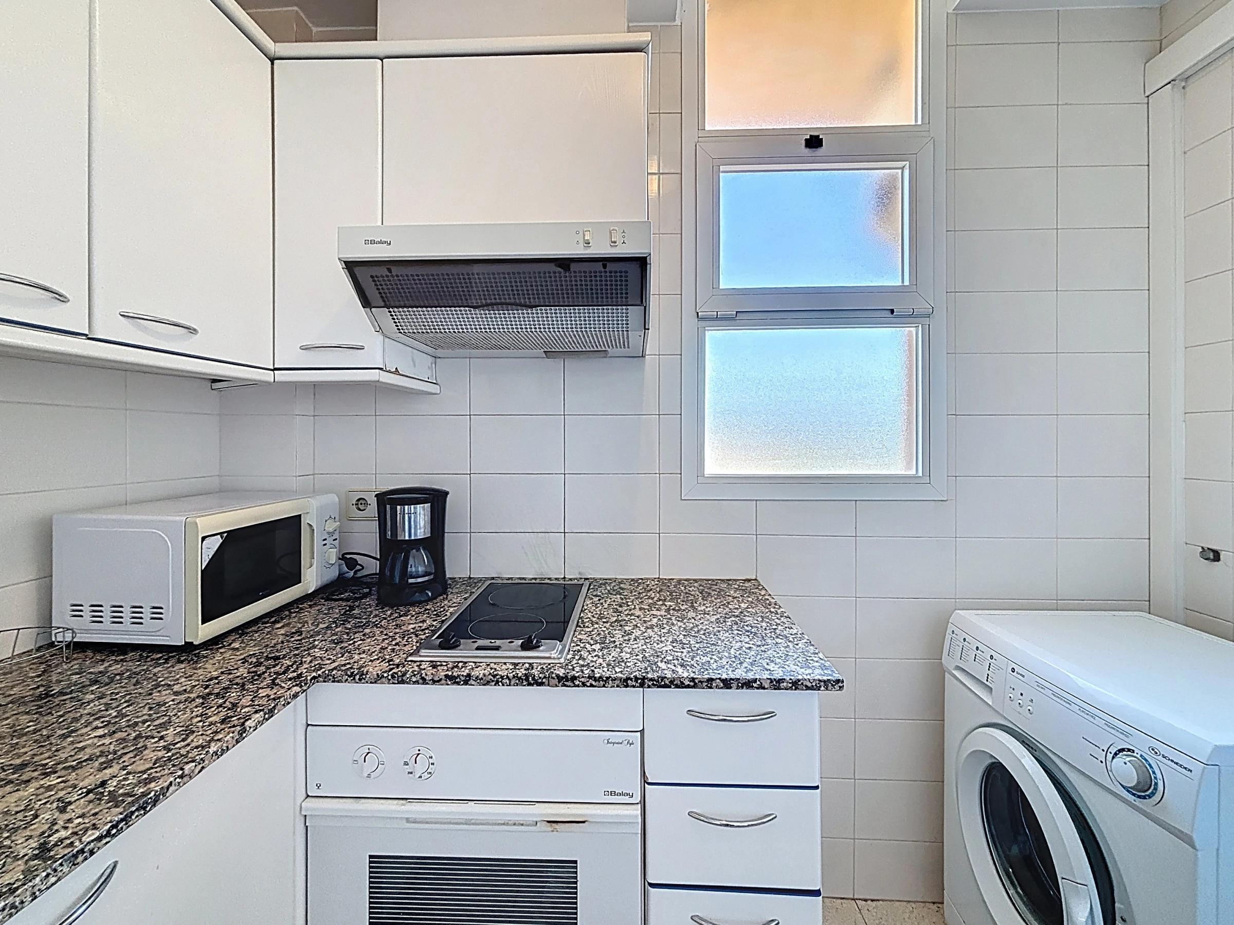 Die Küche ist vollständig ausgestattet: Kühl-Gefrierkombination, Glaskeramikkochfeld, Mikrowelle, Backofen, Waschmaschine, Geschirr, Küchenutensilien und Kaffeemaschine. Die Wohnung verfügt auch über einen Fernseher.