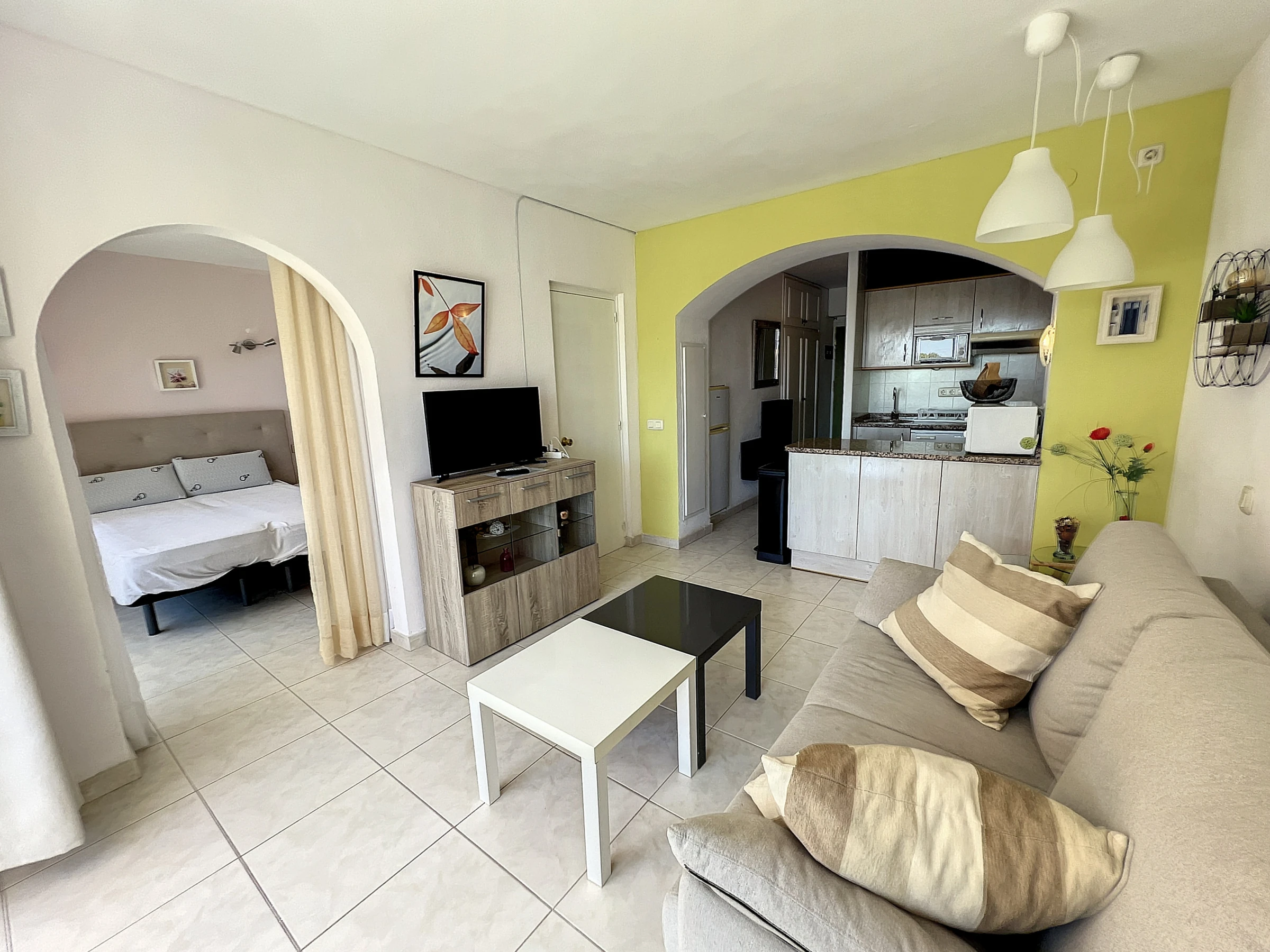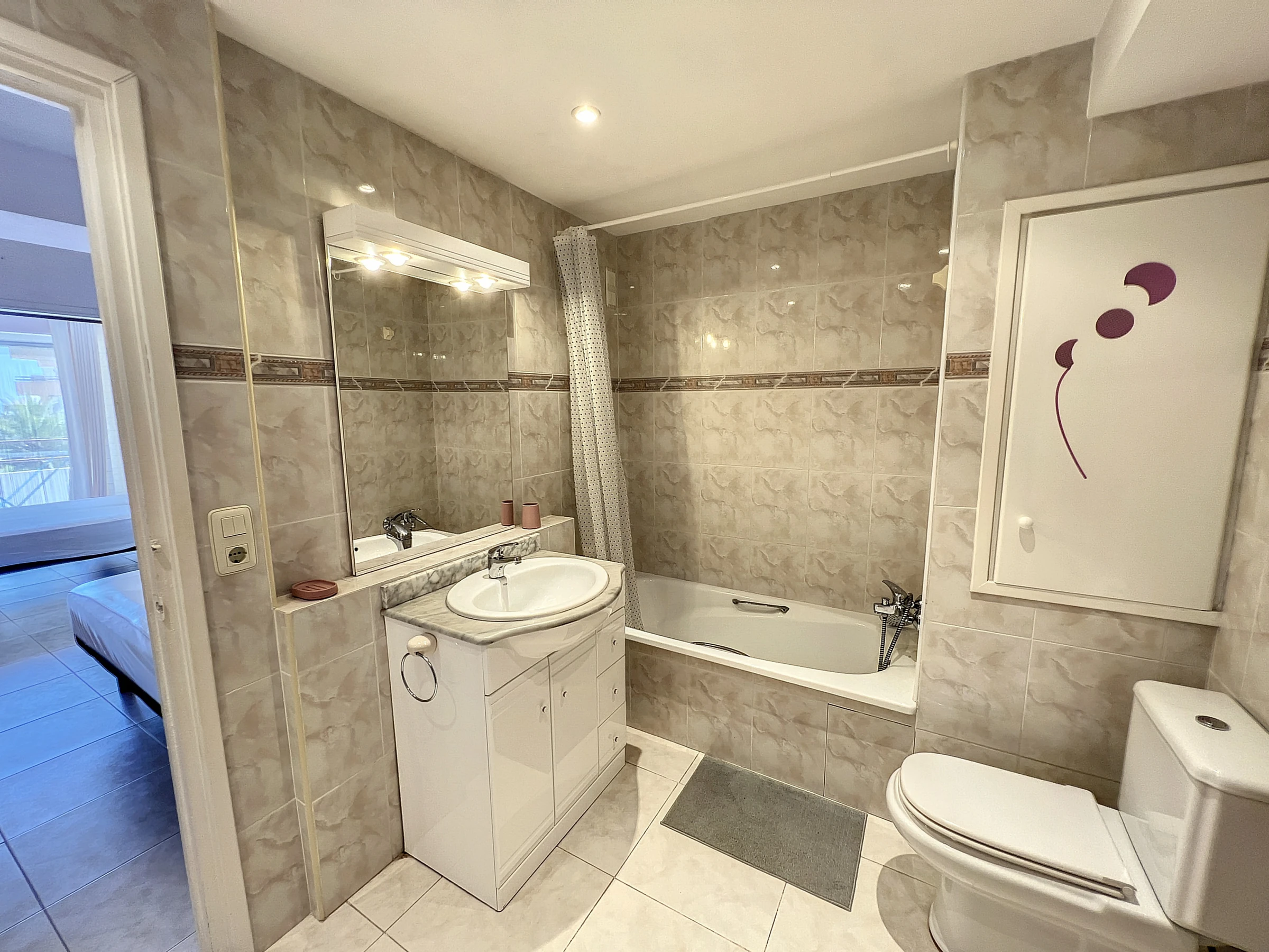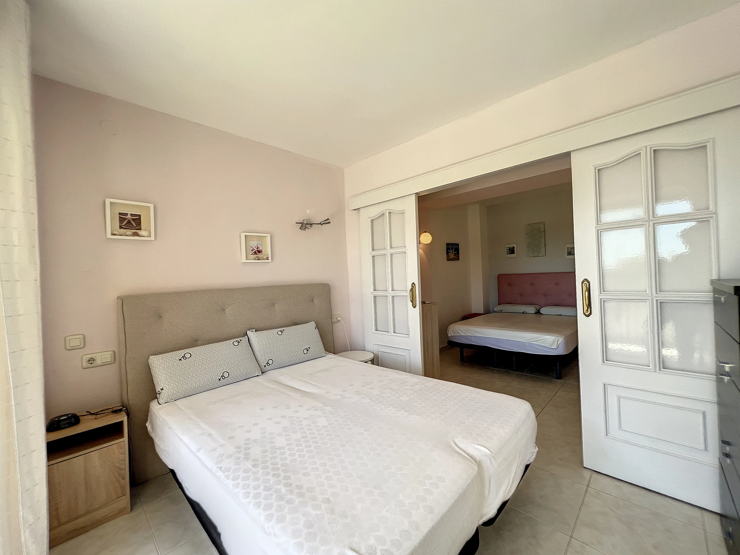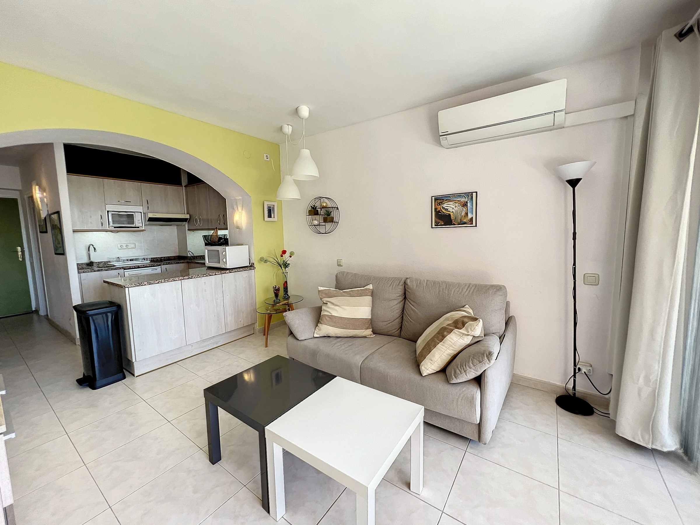 Sehr schöne Wohnung in Roses, bestehend aus zwei Schlafzimmern und Platz für bis zu 5 Personen, mit herrlichem Meerblick. Die Unterkunft mit einer Fläche von 60 m² ist hell, komfortabel und ideal gelegen, um Ihren Familienurlaub in vollen Zügen zu genießen. Sie verfügen auch über einen eingerichteten Balkon mit Gartenmöbeln, Klimaanlage, Fernseher, Außenparkplatz in der Residenz, Kinderbereich, Tennisplatz sowie einen großen Gemeinschaftspool mit Kinderbecken.
