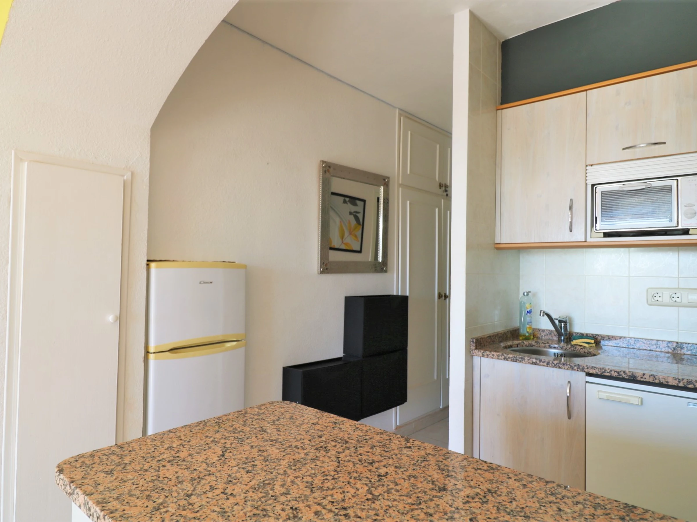 Die offene Küche, ausgestattet mit einer Glaskeramikkochplatte, Kühlschrank, Gefrierschrank, Mikrowelle, Geschirr, Utensilien, Kaffeemaschine und Toaster, ermöglicht es Ihnen, Ihre Mahlzeiten bequem zuzubereiten.