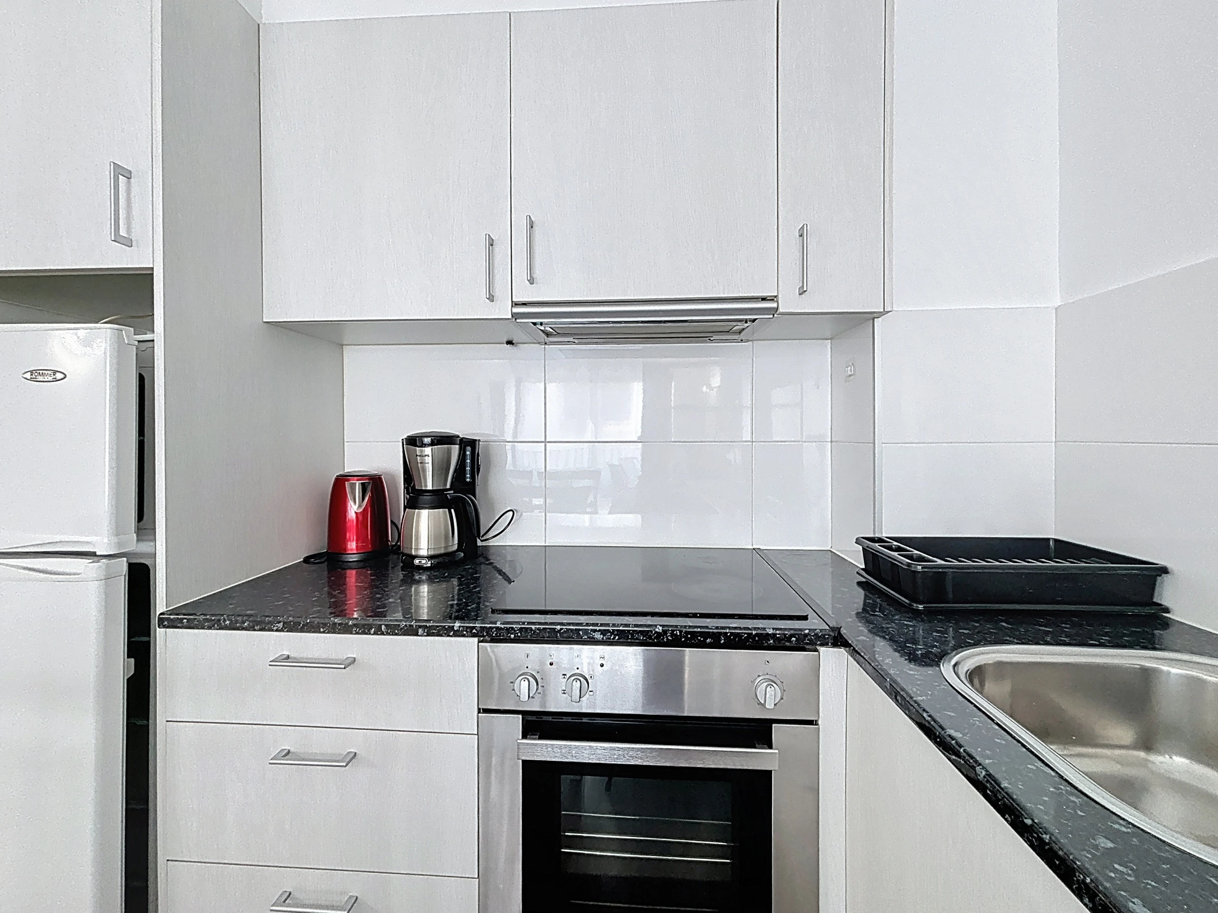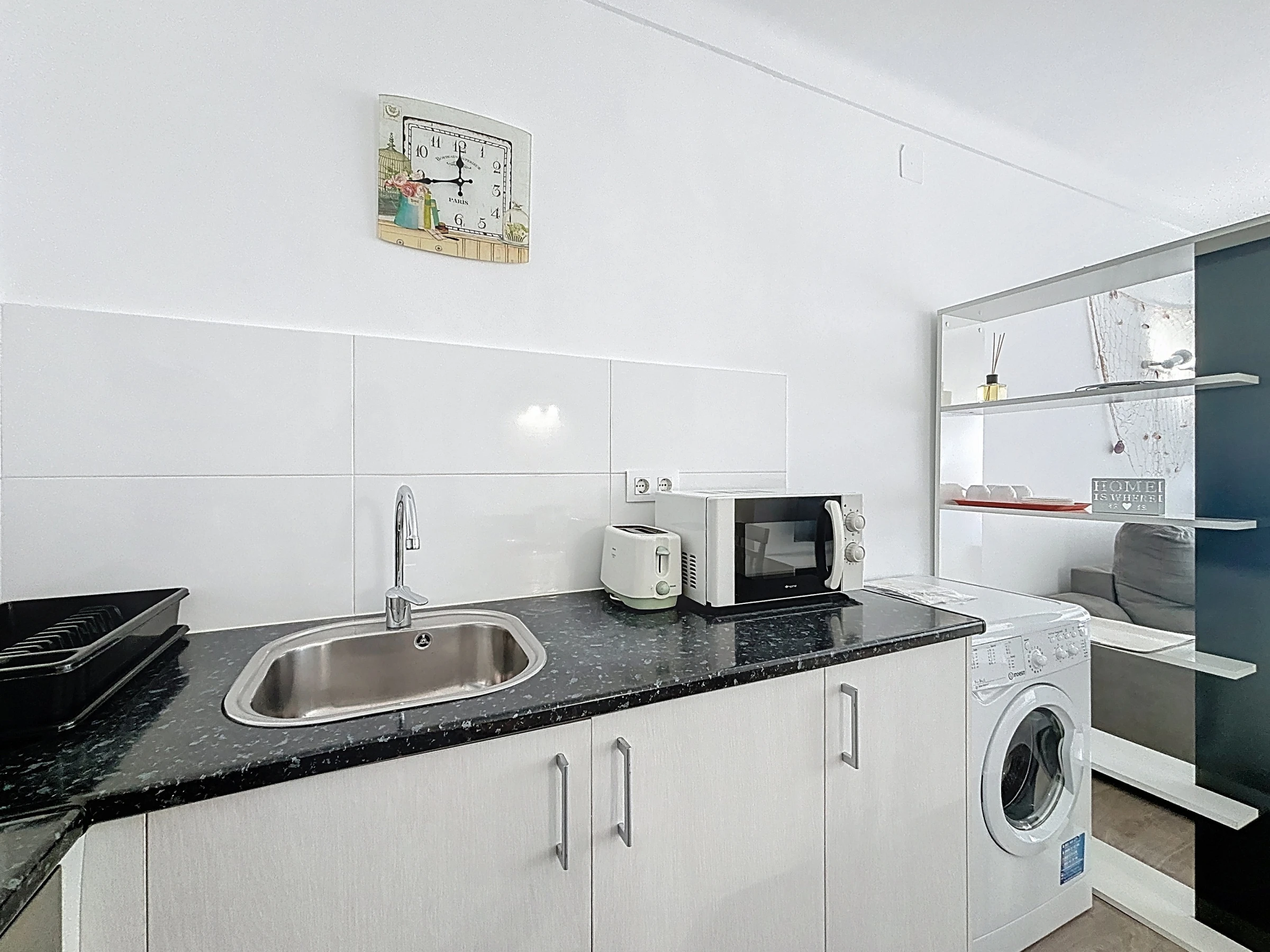 Diese gemütliche Unterkunft verfügt über einen angenehmen Wohnbereich mit einer voll ausgestatteten offenen Küche: Kühlschrank, Gefrierschrank, Ofen, Mikrowelle, Kaffeemaschine und alle notwendigen Utensilien, um Ihre Mahlzeiten wie zu Hause zuzubereiten.
