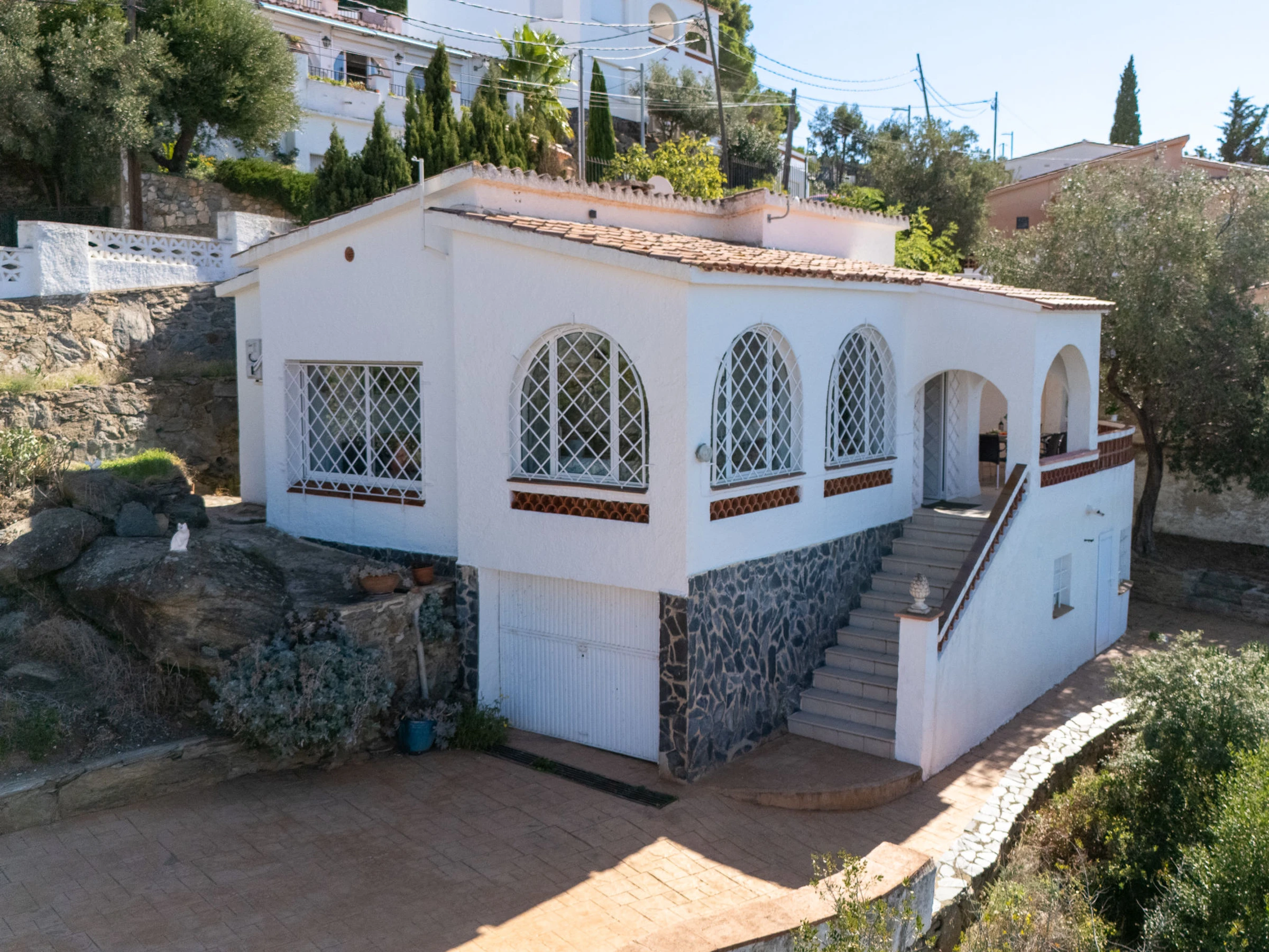 Els Grecs: Einfaches Haus "Villa Cecilia". Im Ortsteil Els Grecs, 2.5 km vom Zentrum von Roses, ruhige, sonnige, erhöhte Lage auf einem Hügel, im Villenviertel, 2.5 km vom Meer, in einer Sackgasse, Richtung Süden. Zur Alleinbenutzung: Grundstück mit Pflanzen und Blumen, Parkplatz auf dem Grundstück. Supermarkt 2.5 km, Einkaufszentrum 2.5 km, Restaurant 500 m, Bushaltestelle 2.5 km, Bahnstation "Figueres" 23 km, Sandstrand 3 km, Hallenbad 3 km. Sporthafen 3 km, Golfplatz (12 Loch) 15 km, Tennis 3 km, Sportzentrum 1.5 km. Nahe gelegene Sehenswürdigkeiten: Parque Acuático Aquabrava Roses 4 km, Aerodromo Empuriabrava 9 km, Atracción túnel del viento 9 km, Museo Dalí Figueres 23 km, Castillo y festival de Peralada 22 km, Monasterio Sant Pere de Rodes 22 km. Bitte beachten: Fahrzeug empfohlen. Die Schlüsselübergabe findet bei der Agentur in Roses statt.