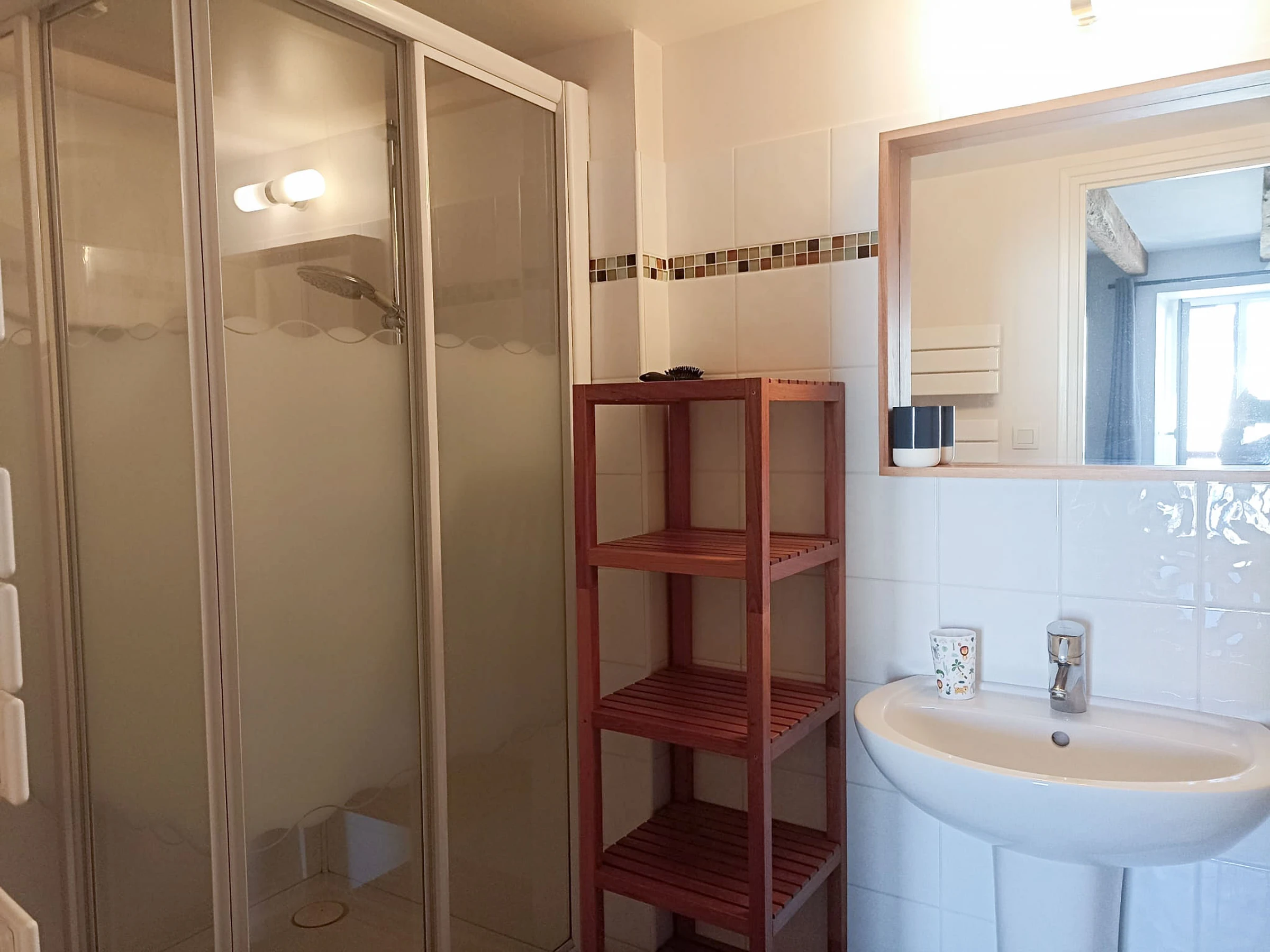 Im Obergeschoss befindet sich ein helles Schlafzimmer mit einem Doppelbett (160 x 200 cm) und einem Einzelbett (90 x 190 cm).