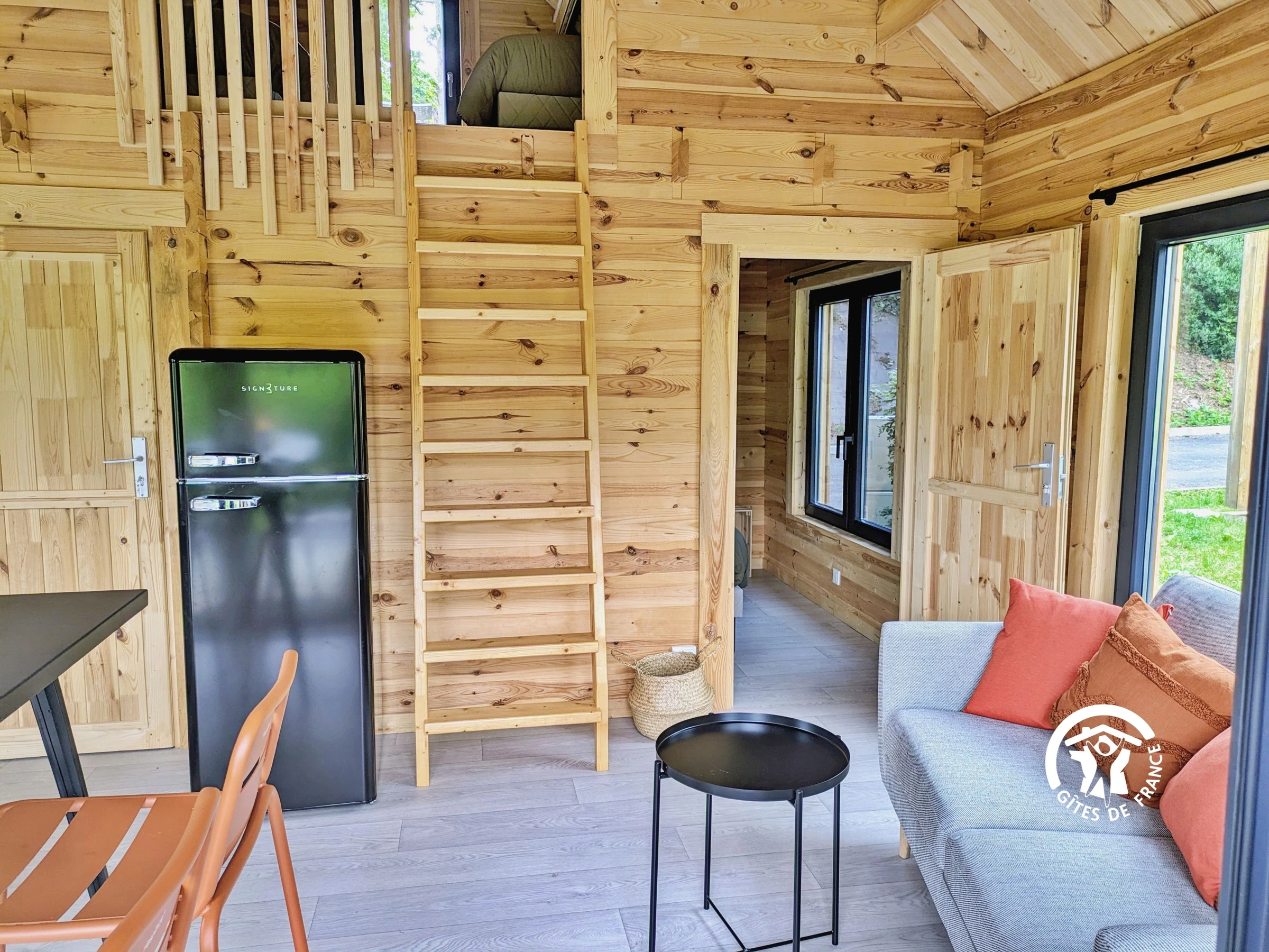 Nur 5 km von Laval entfernt bietet der Campingplatz Coupeau dieses einzigartige und komfortable Chalet, ideal für Familien oder Reisende, die Ruhe und Erholung in der Natur suchen. Es besticht durch einen Panoramablick auf den Wald von Coupeau und den Fluss Vicoin. Das Chalet verfügt über eine überdachte Terrasse, ein Wohnzimmer mit voll ausgestatteter Küche, zwei Schlafzimmer (vier Einzelbetten) und ein Badezimmer mit WC.
