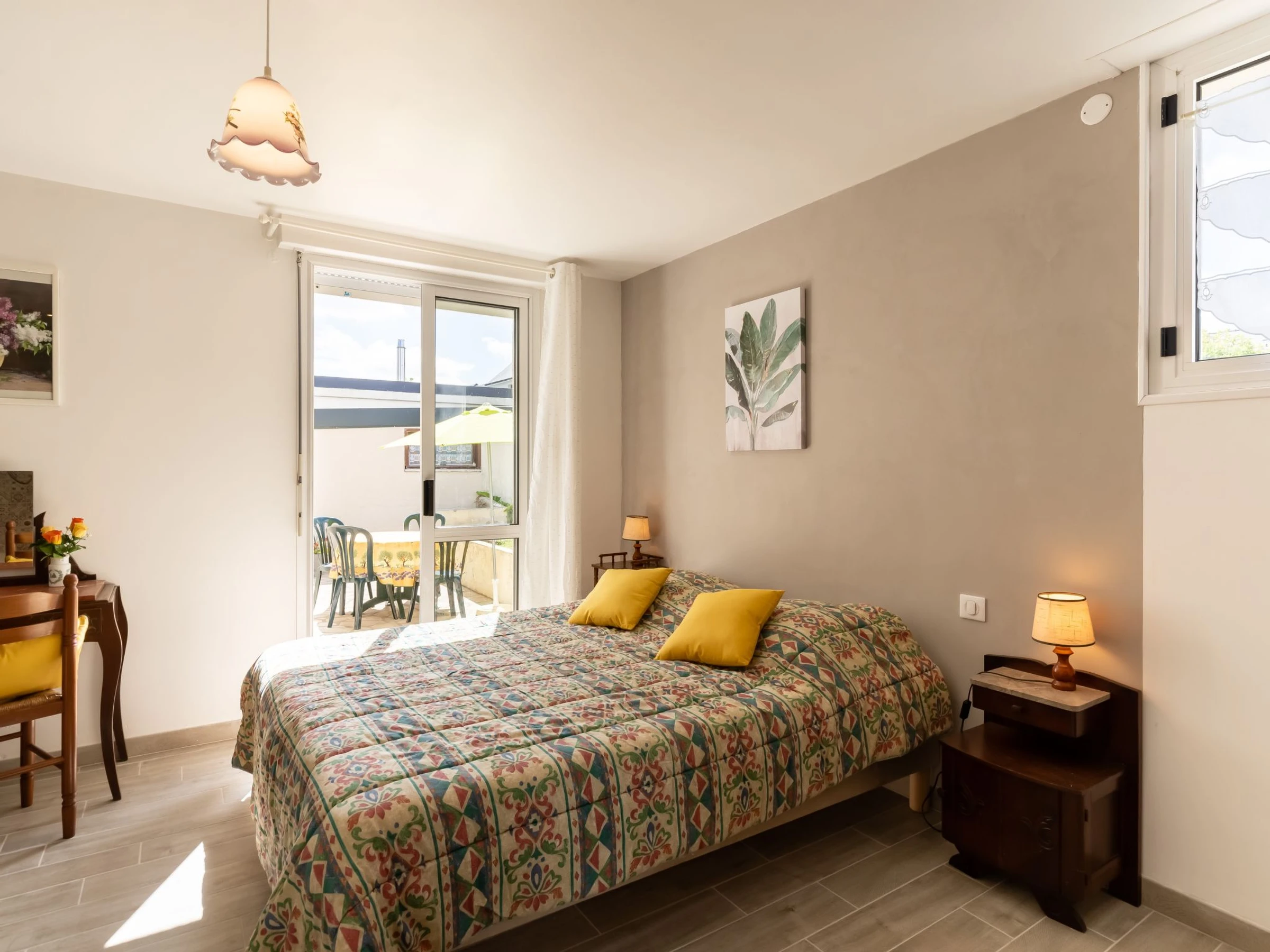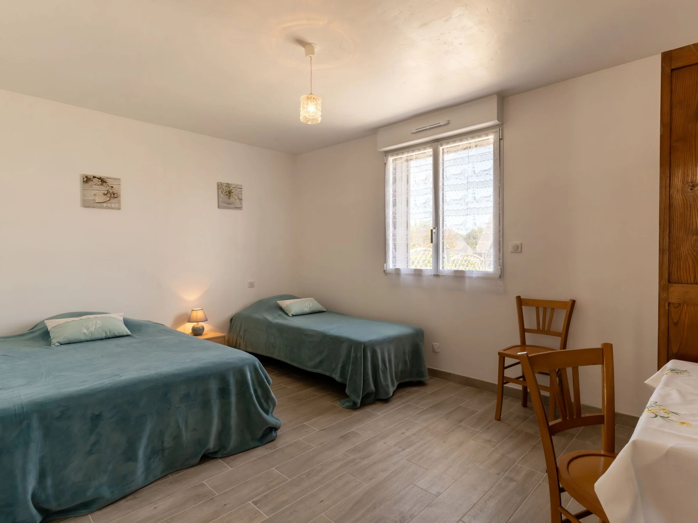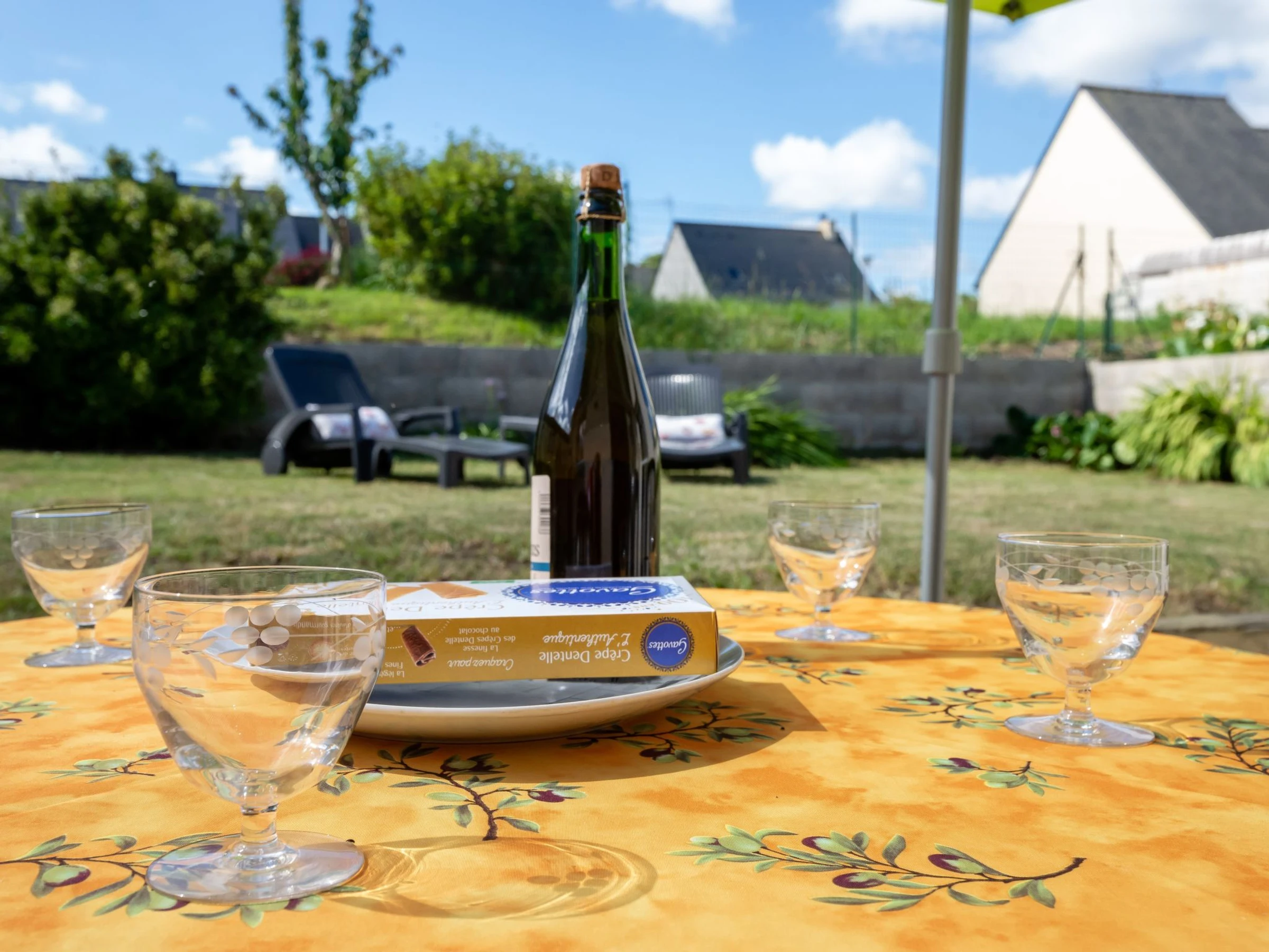 "l'Emeraude", 3-Zimmer-Haus 74 m2. Zweckmässig und schön eingerichtet: grosses Wohn-/Esszimmer mit TV (Flachbildschirm). Ausgang zur Terrasse. 1 Zimmer mit 1 Bett (80 cm, Länge 200 cm), 1 franz. Bett (130 cm, Länge 190 cm). 1 Zimmer mit 2 Betten (80 cm, Länge 200 cm), Bad. Ausgang zur Terrasse. Offene Küche (Backofen, Geschirrspüler, 4 Flammen, Toaster, Wasserkocher, Mikrowelle, elektrische Kaffeemaschine) mit Essecke. Sep. WC. Keine Heizmöglichkeit. Terrasse, kleiner Garten. Terrassenmöbel, Liegestühle (2). Zur Verfügung: Waschmaschine, Bügeleisen, Haartrockner. Bitte beachten: Nichtraucher-Haus. Maximal 1 Haustier/Hund erlaubt. Rauchmelder. Inserat einer Privatperson nach Artikel 155, IV, CGI.