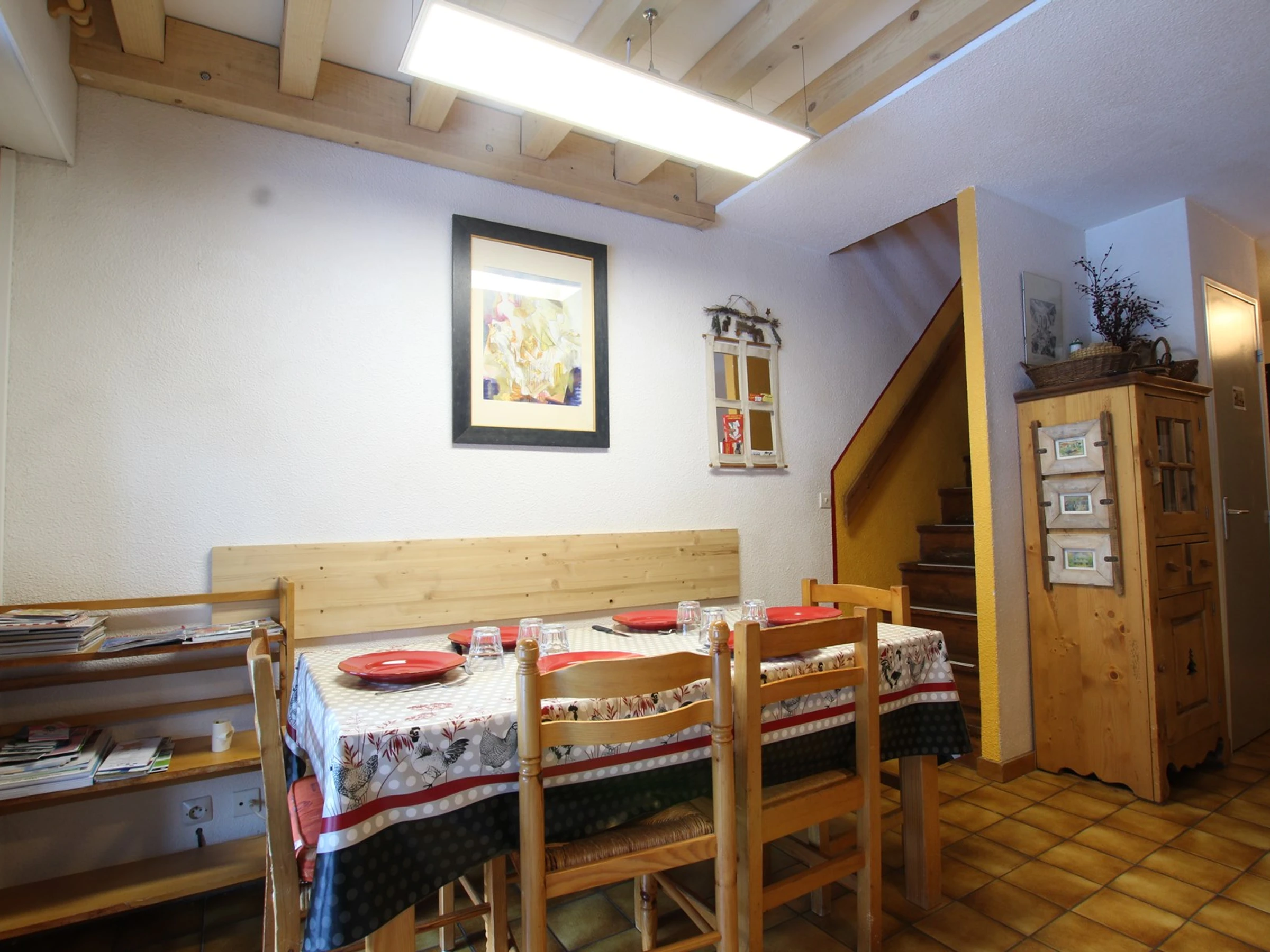 Das Triplex für 6 Personen verfügt über einen Eingangsbereich mit Abstellraum, ein Badezimmer, ein separates WC, eine voll ausgestattete Küchenzeile (Kühlschrank, Geschirrspüler, Mikrowelle, Induktionskochfeld, Kaffeemaschine etc.) sowie einen Wohnbereich und ein Wohnzimmer mit Balkon.