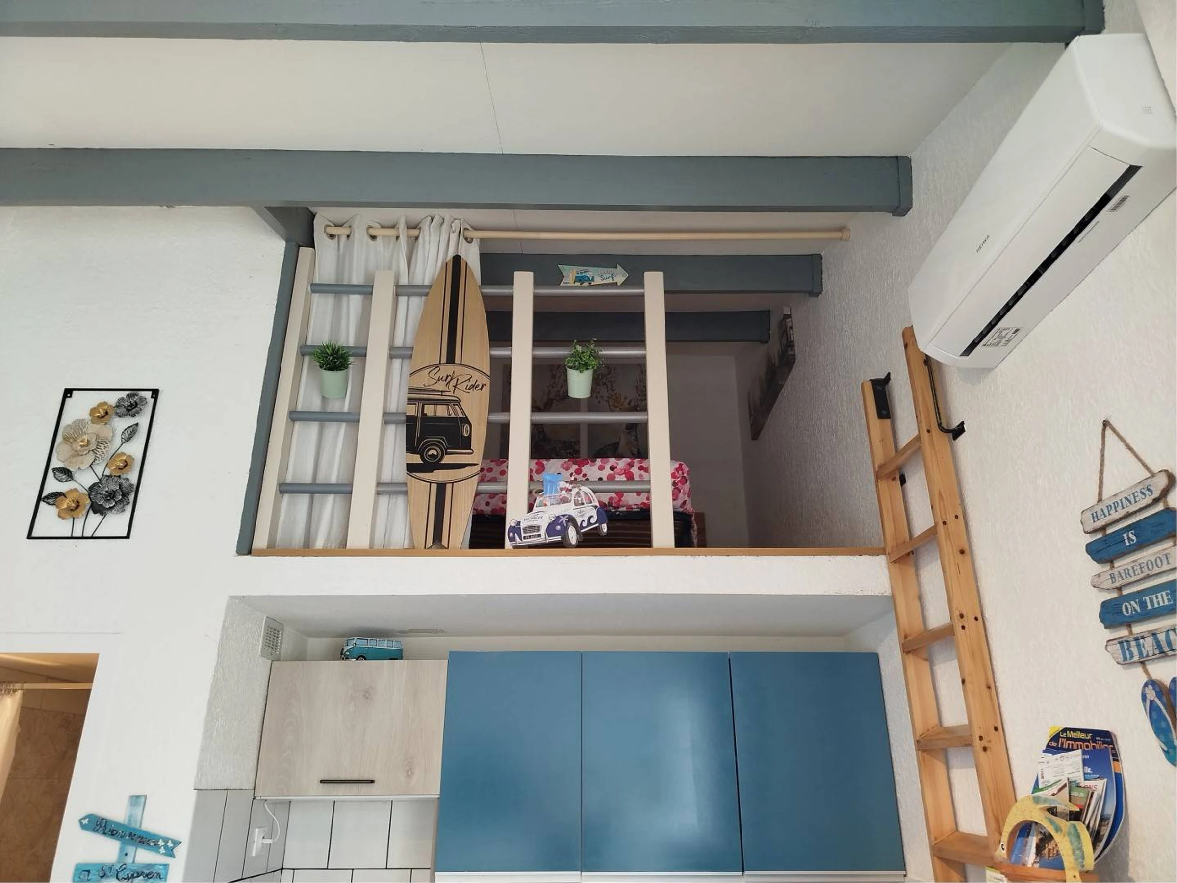 Obergeschoss (Zugang über eine Leiter): Zwischengeschoss mit Doppelbett.