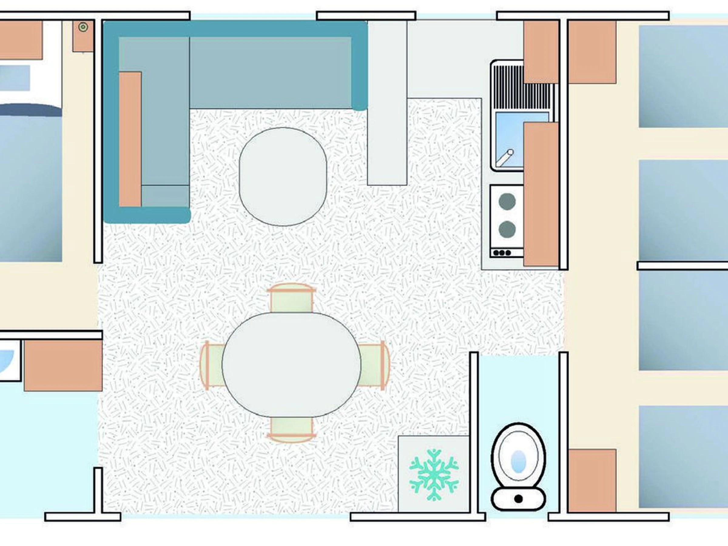 30 m² großes Mobilheim für 6 Personen: