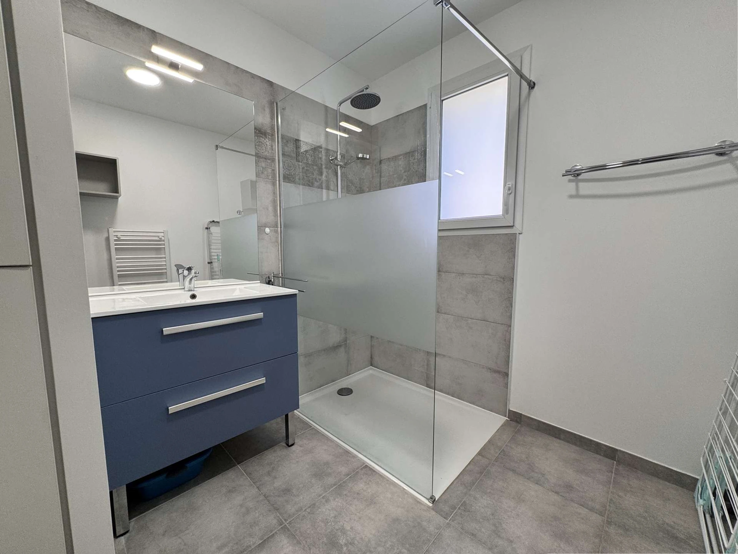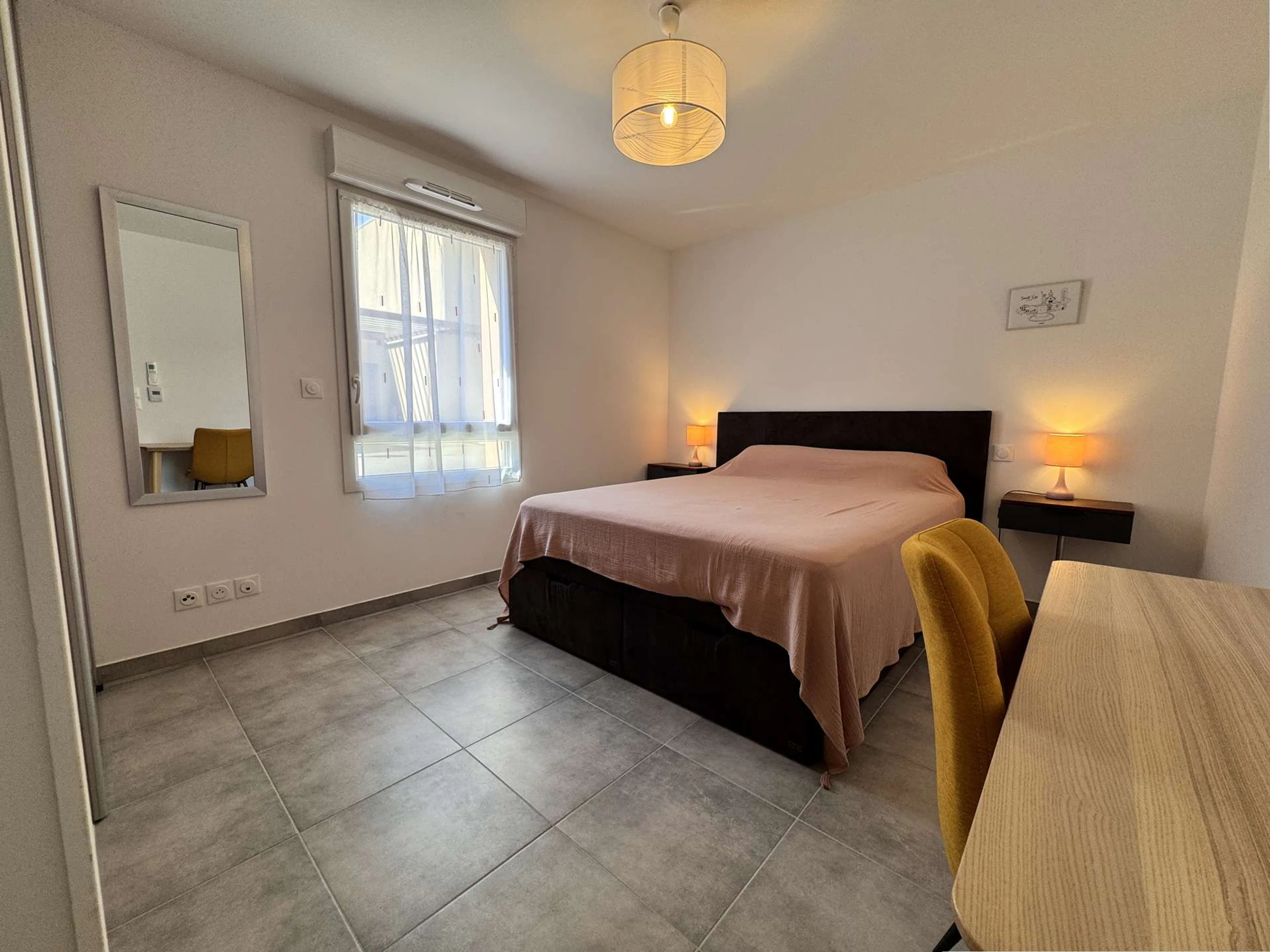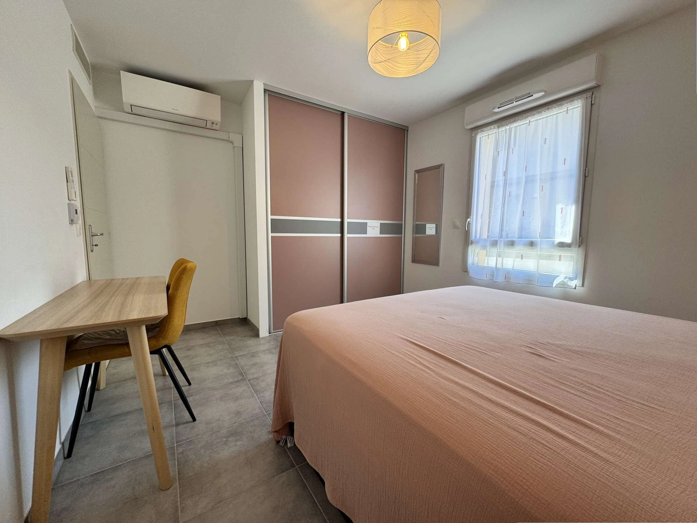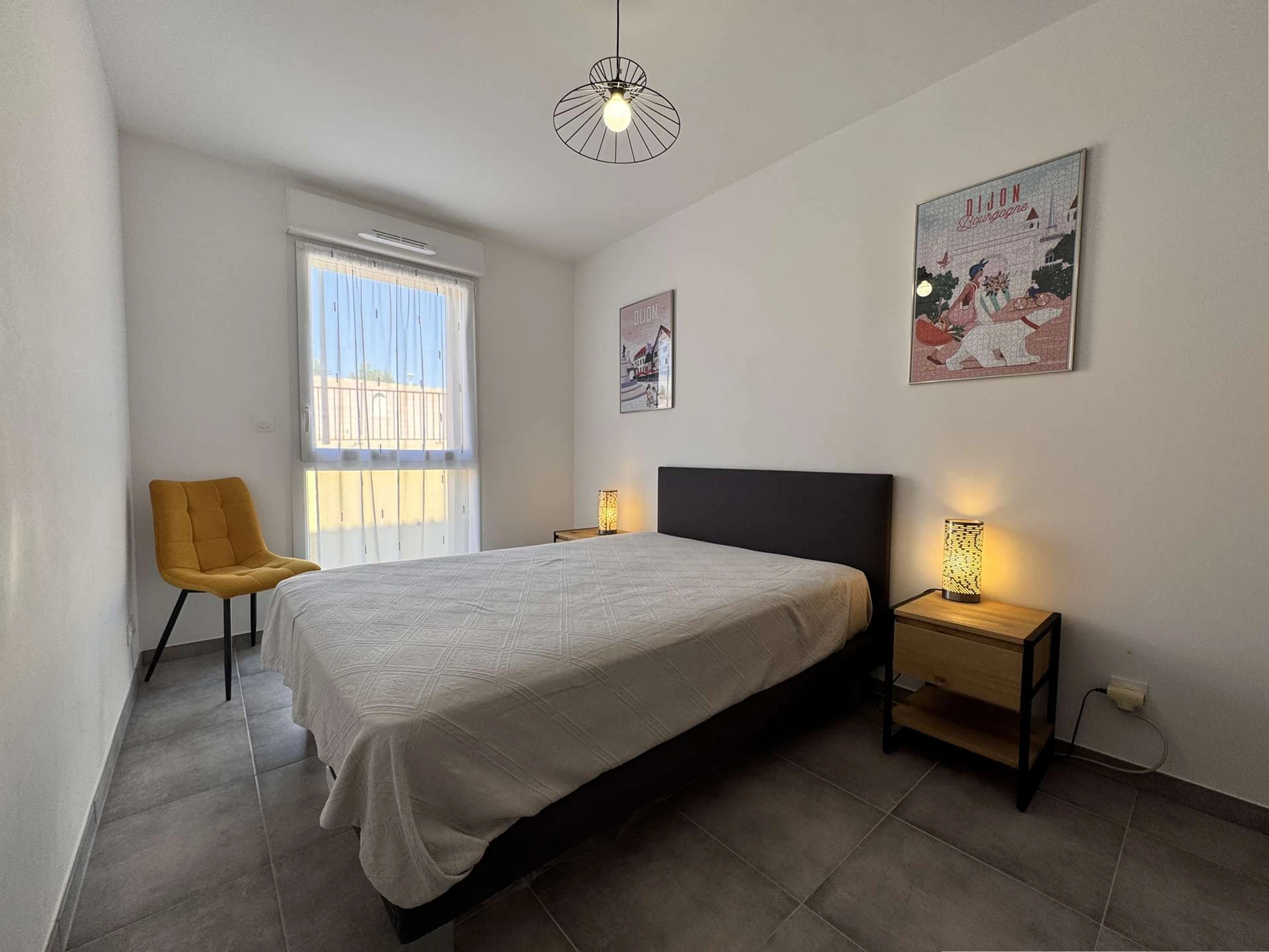 Die Wohnung befindet sich im Erdgeschoss und verfügt über ein Wohnzimmer mit einer voll ausgestatteten offenen Küche, die sich auf eine 11 m² große, überdachte Terrasse erstreckt. Sie besteht aus zwei Schlafzimmern, jeweils mit einem Doppelbett (eines davon ein Queensize-Bett) und Klimaanlage. Außerdem gibt es ein Badezimmer mit WC.