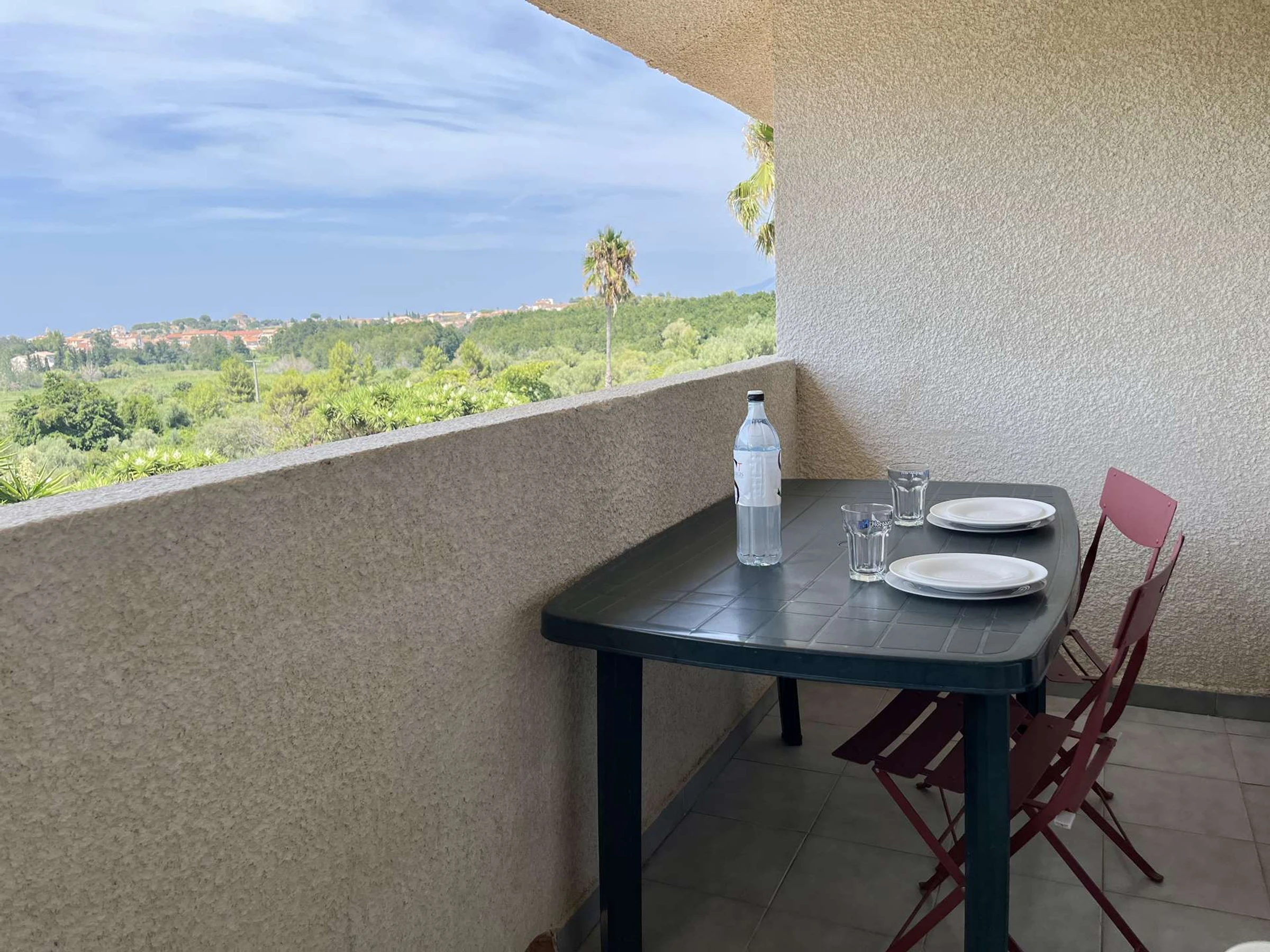 – Balkon mit Meerblick und Blick auf Pool und Garten