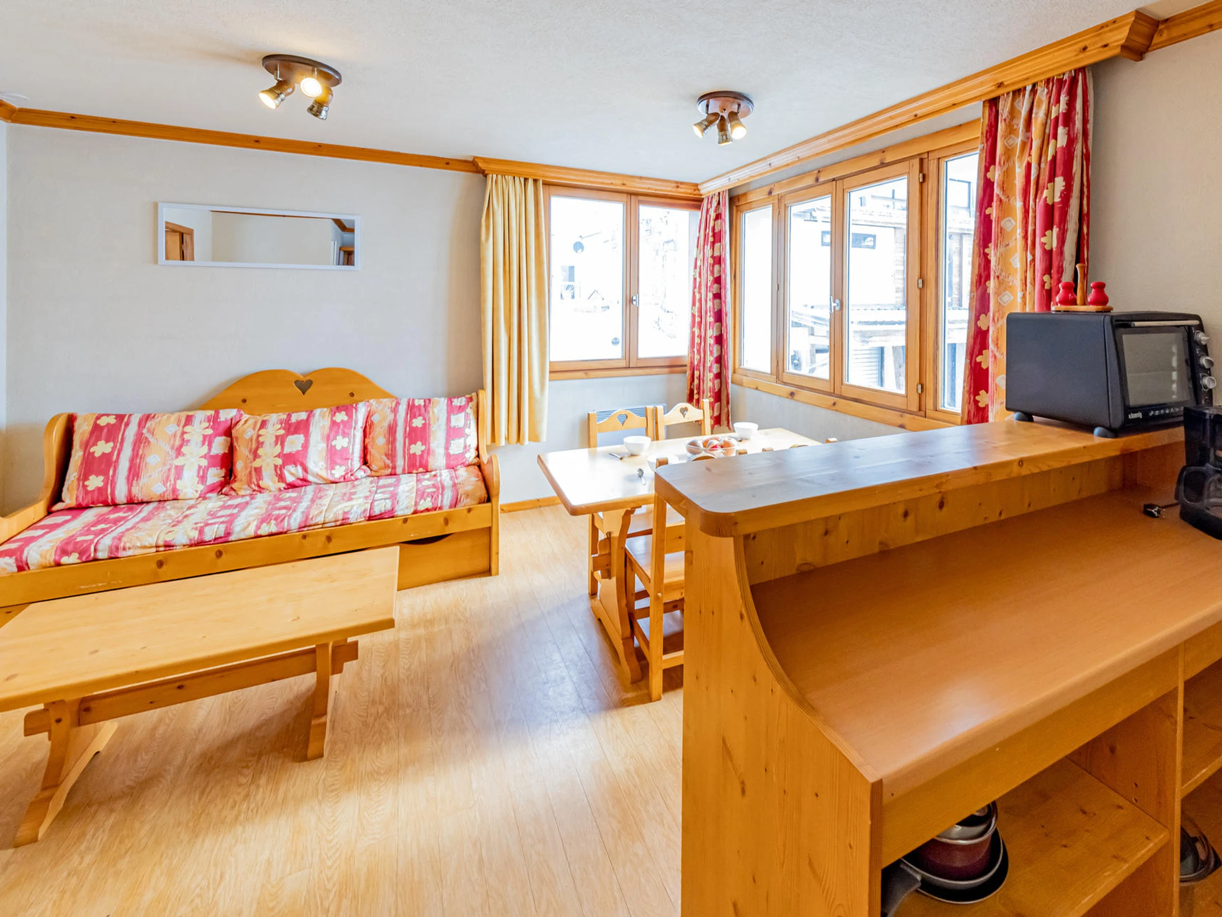 T1 (26 m²) für 4 Personen direkt an den Pisten und Geschäften.