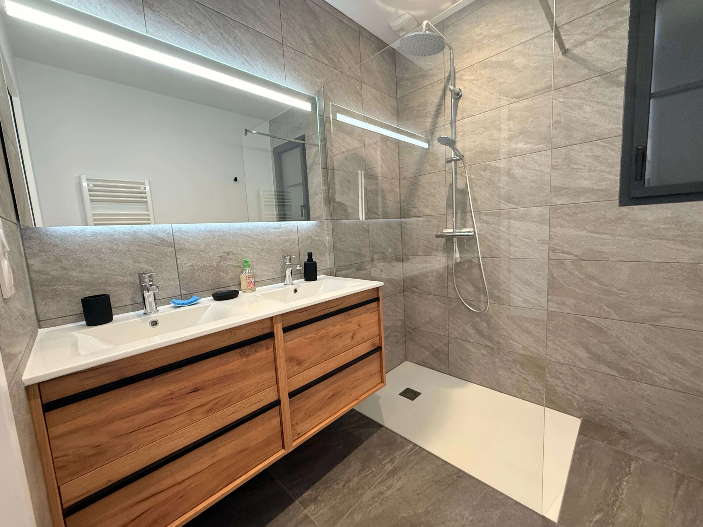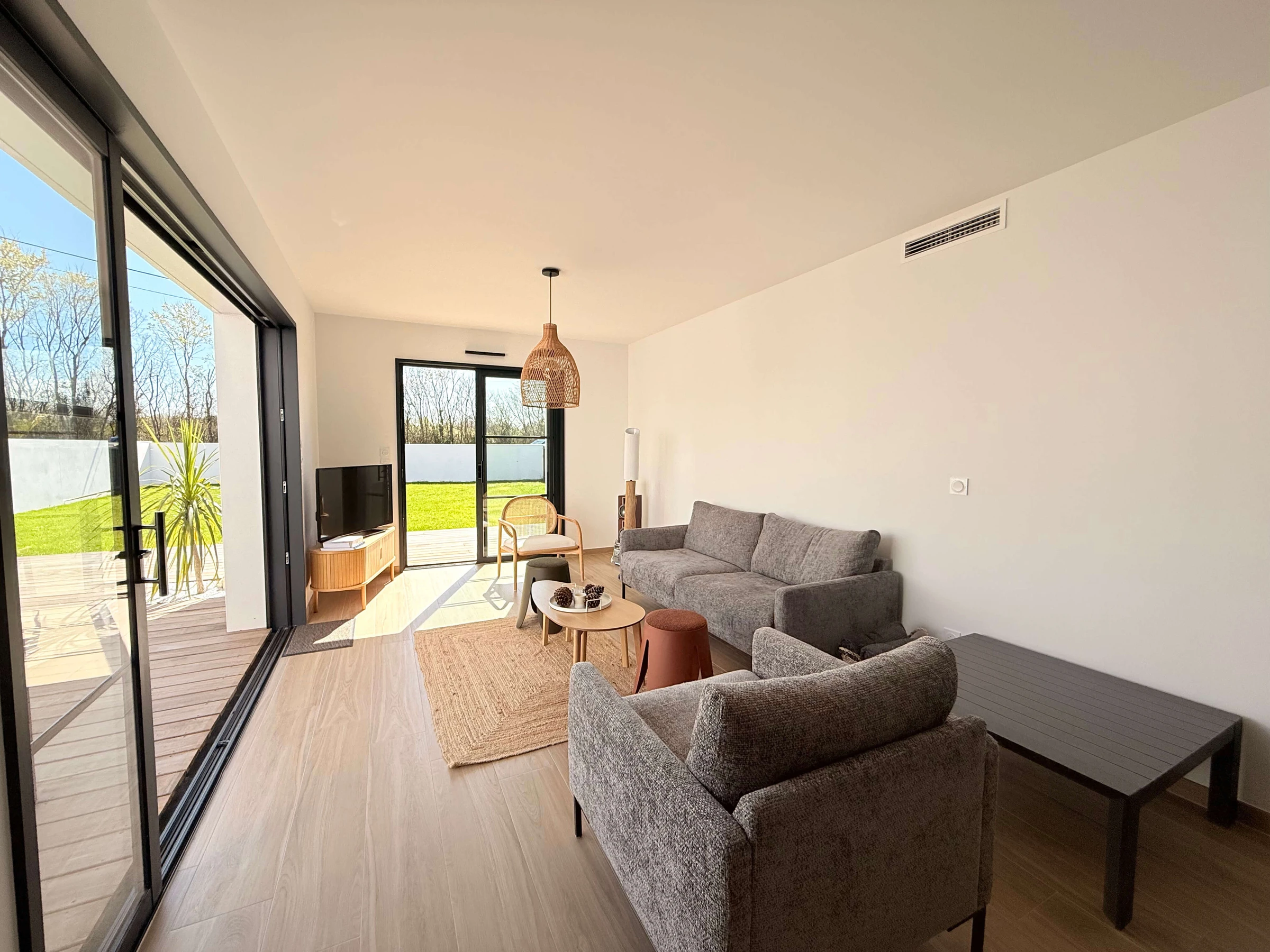 Freuen Sie sich auf einen umzäunten Garten und eine große Südterrasse mit einer Outdoor-Lounge, einer Plancha und einem Sofa für Ihre Momente der Entspannung.