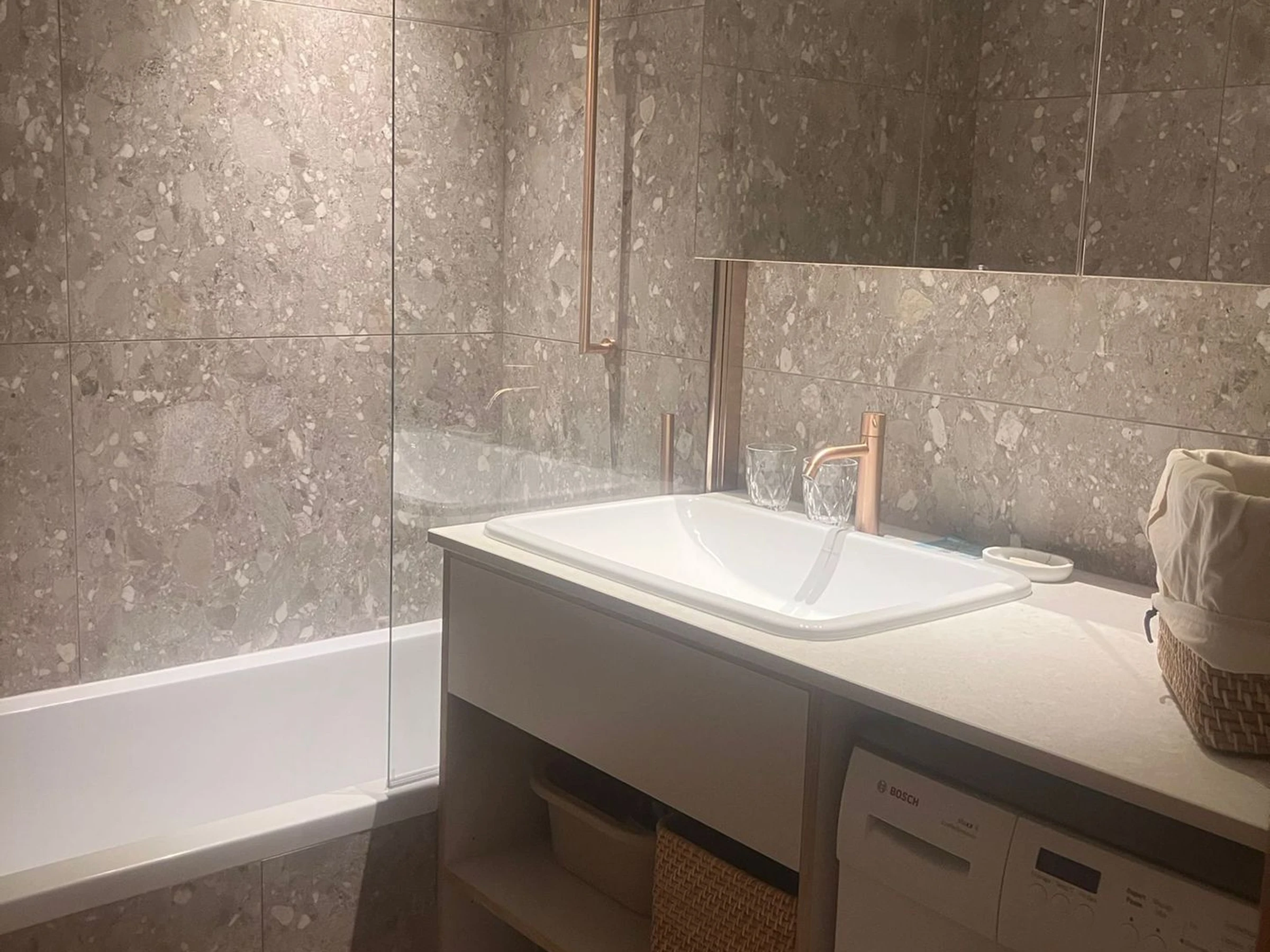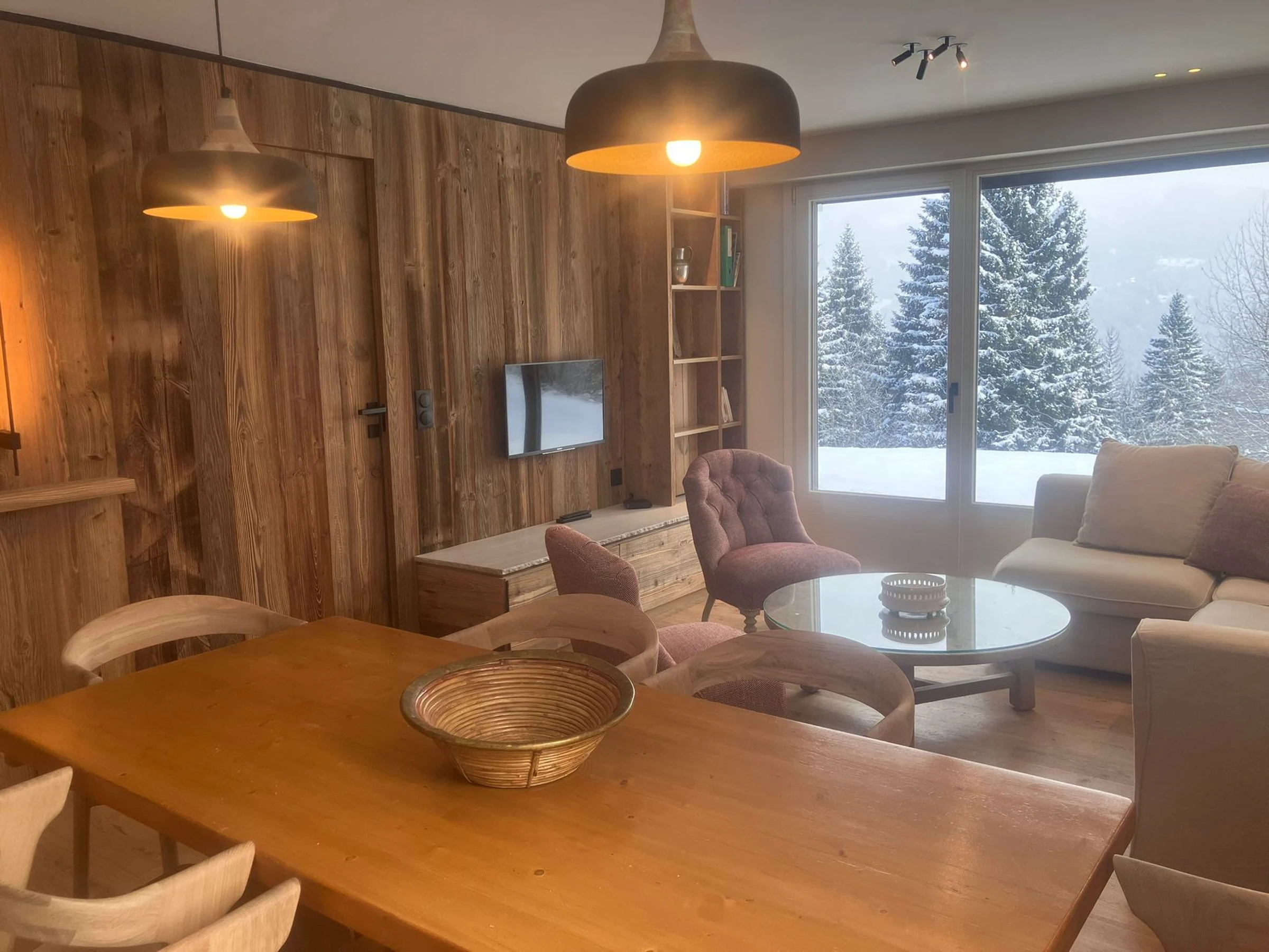 Die Wohnung wurde komplett renoviert und bietet Ihnen eine warme und freundliche Atmosphäre. Sie befindet sich im Erdgeschoss und verfügt über eine nach Osten ausgerichtete Terrasse mit Blick auf die Mont-Blanc-Bergkette.