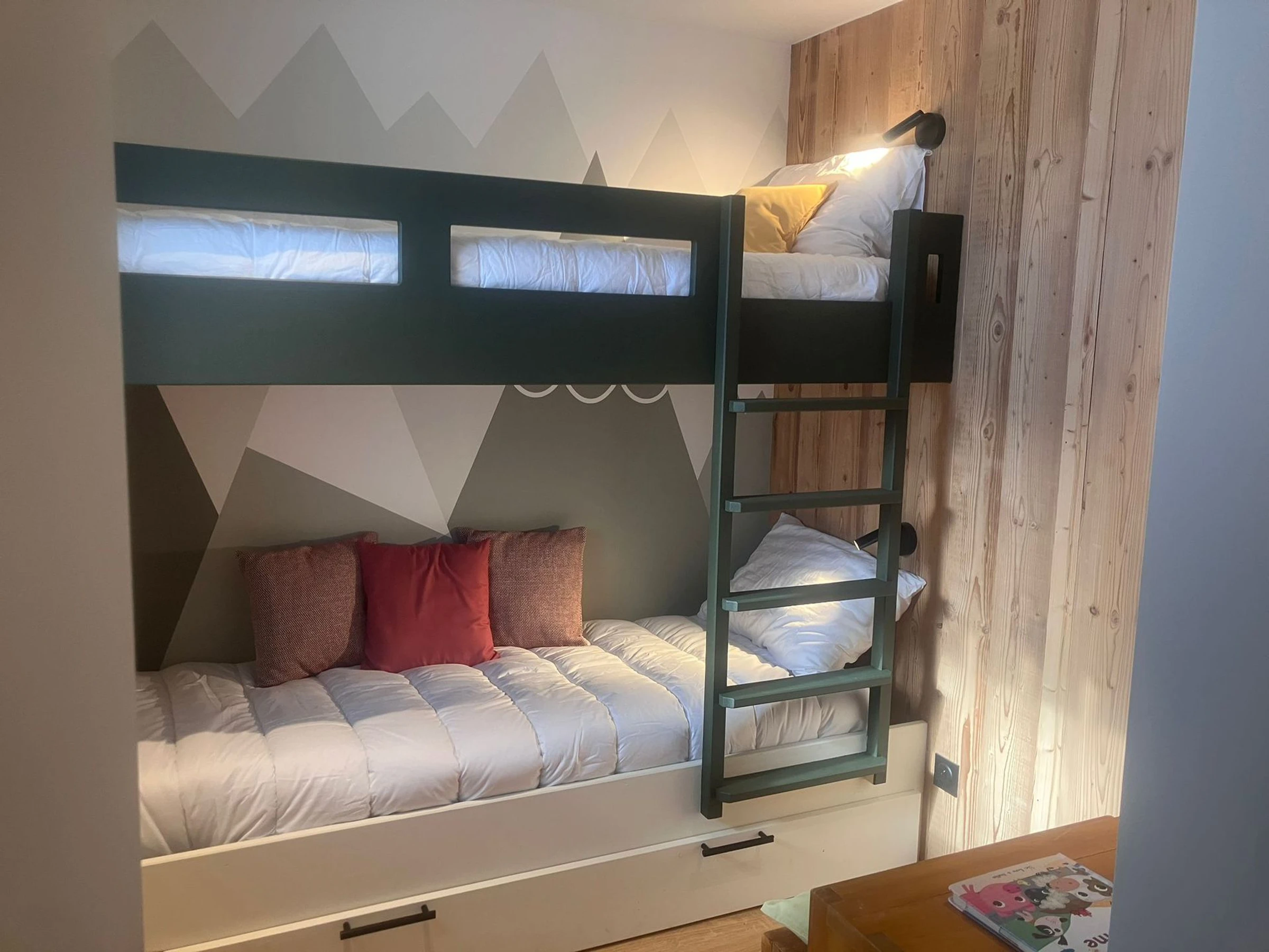 - Schlafzimmer mit Etagenbetten (2 x 70 x 190 cm) und Ausziehbett (70 x 190 cm).