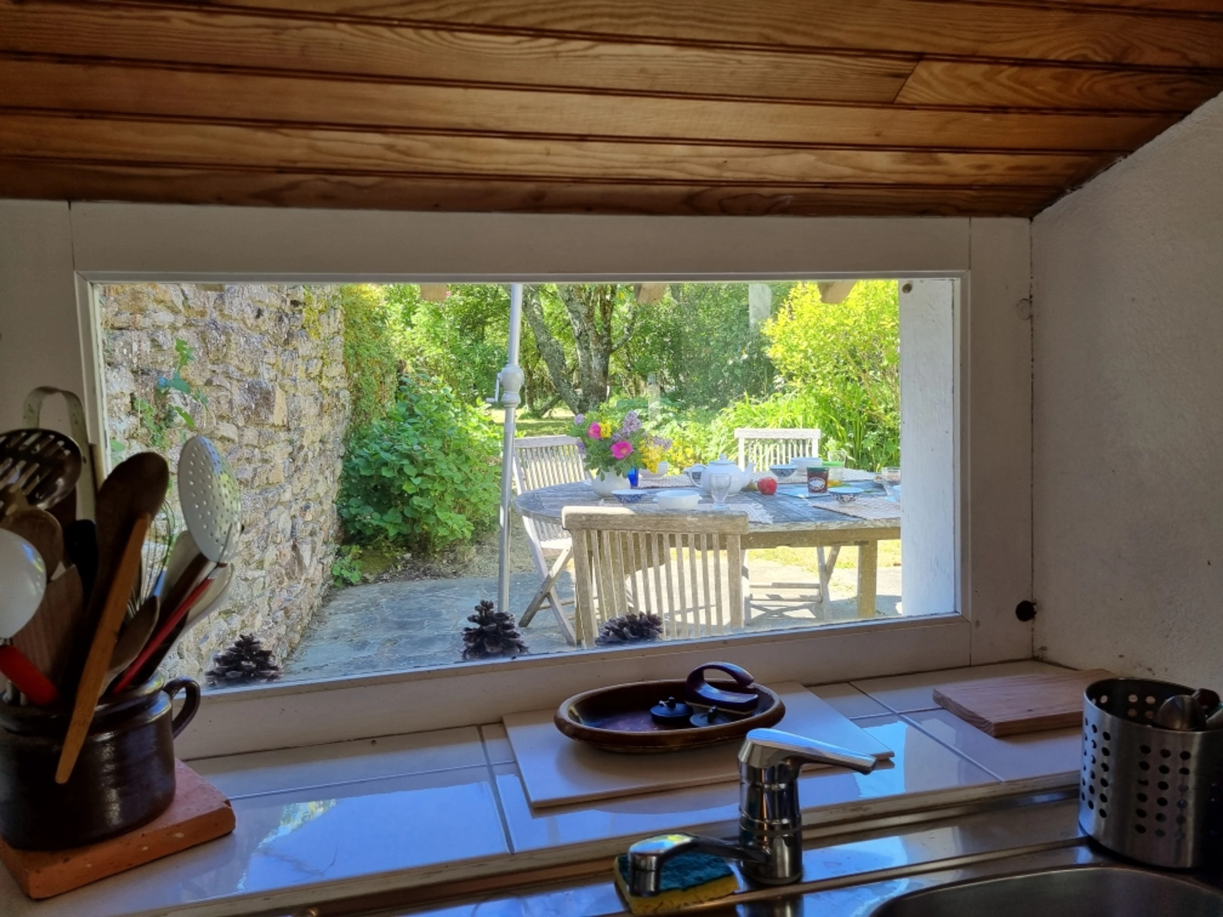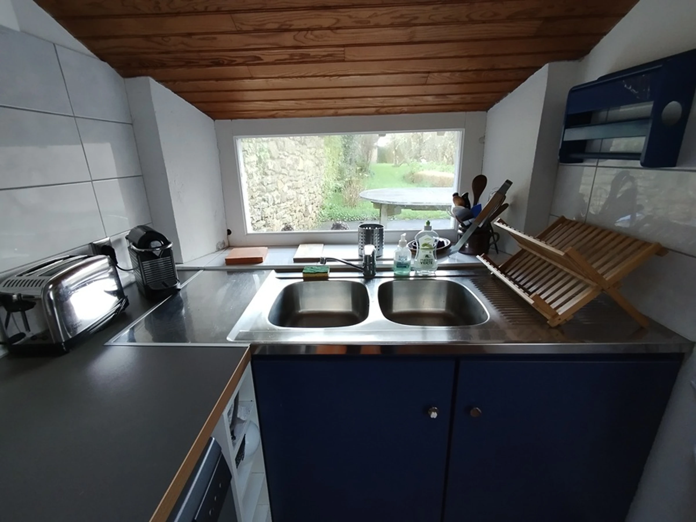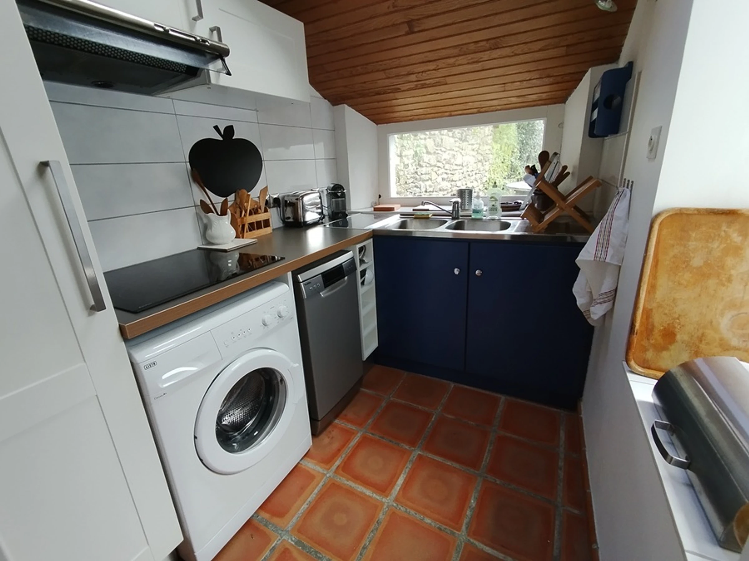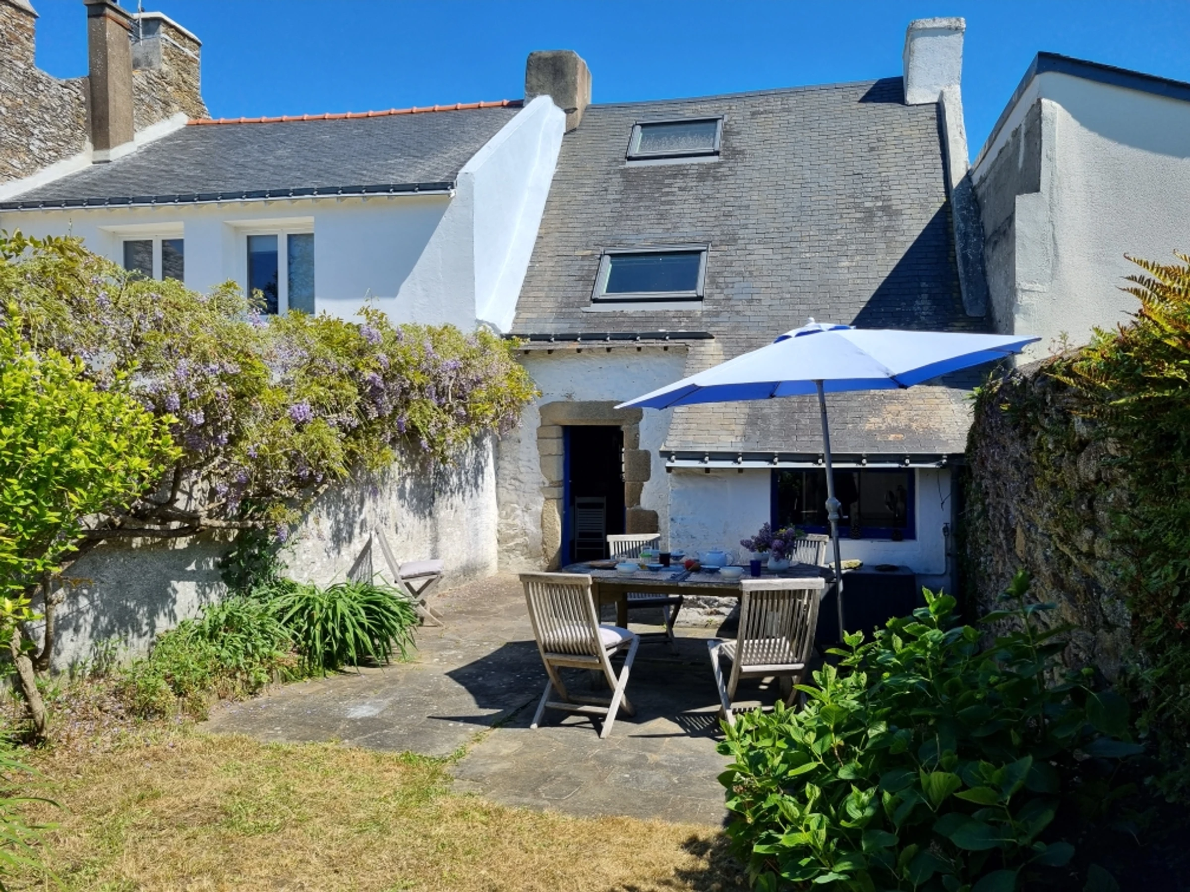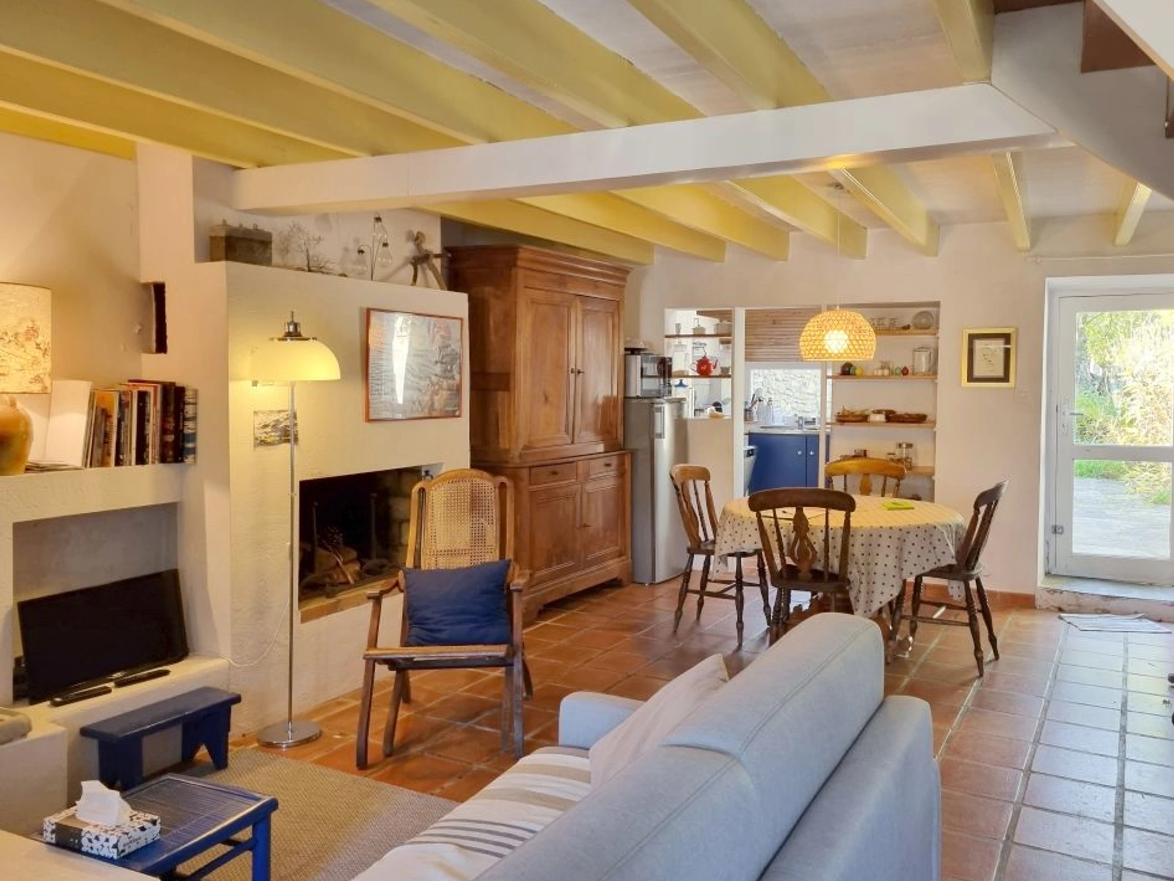 In ruhiger Lage bietet dieses charmante und praktische Fischerhaus im Erdgeschoss ein Wohn-/Esszimmer mit Fernseher (Kamin außer Betrieb), eine Küche mit Geschirrspüler, Waschmaschine, 3-Platten-Induktionskochfeld, Kühlschrank mit 3-Sterne-Gefrierfach, Kombi-Backofen/Mikrowelle, elektrischer Filterkaffeemaschine und Nespresso-Kapselmaschine.