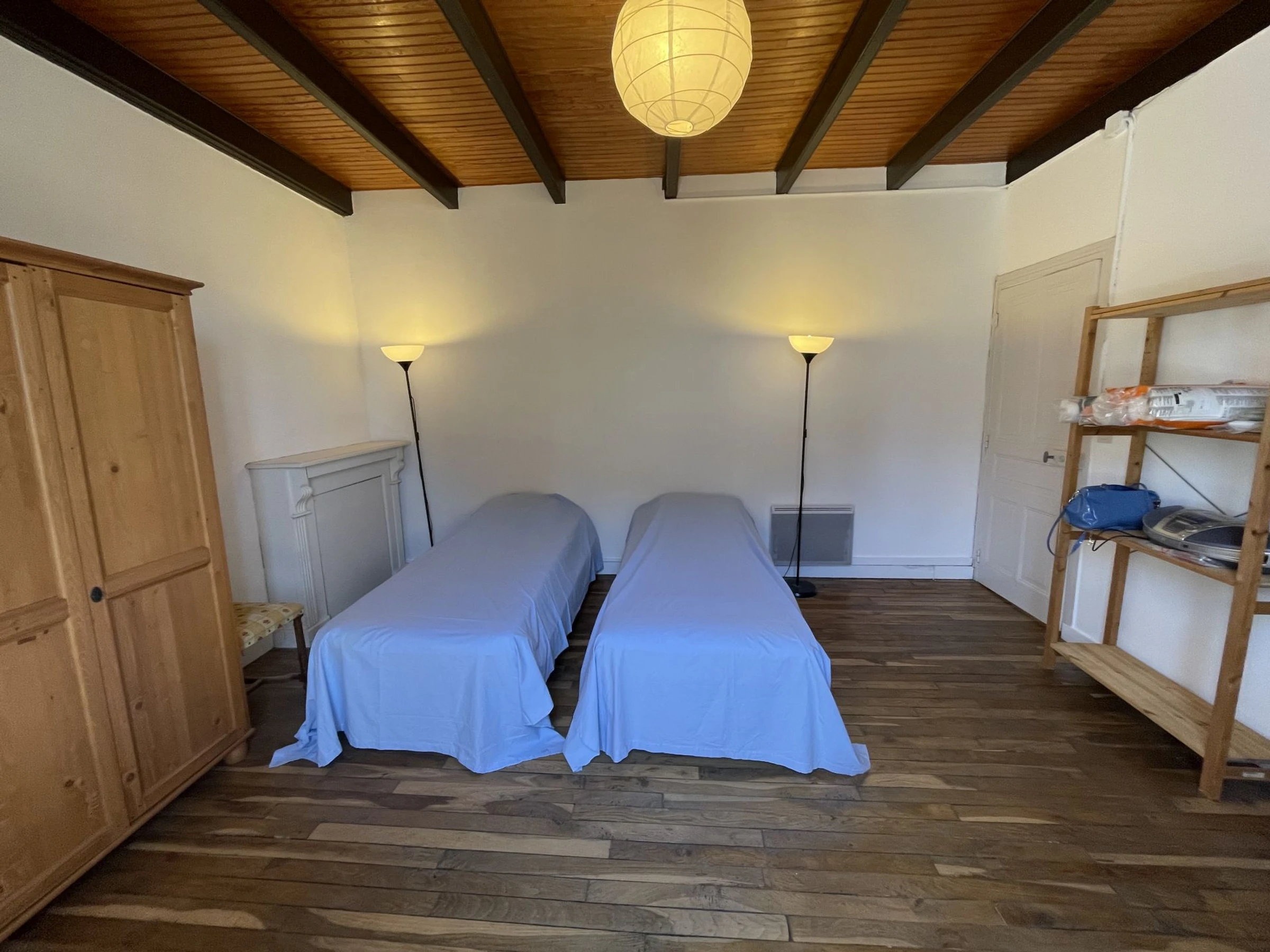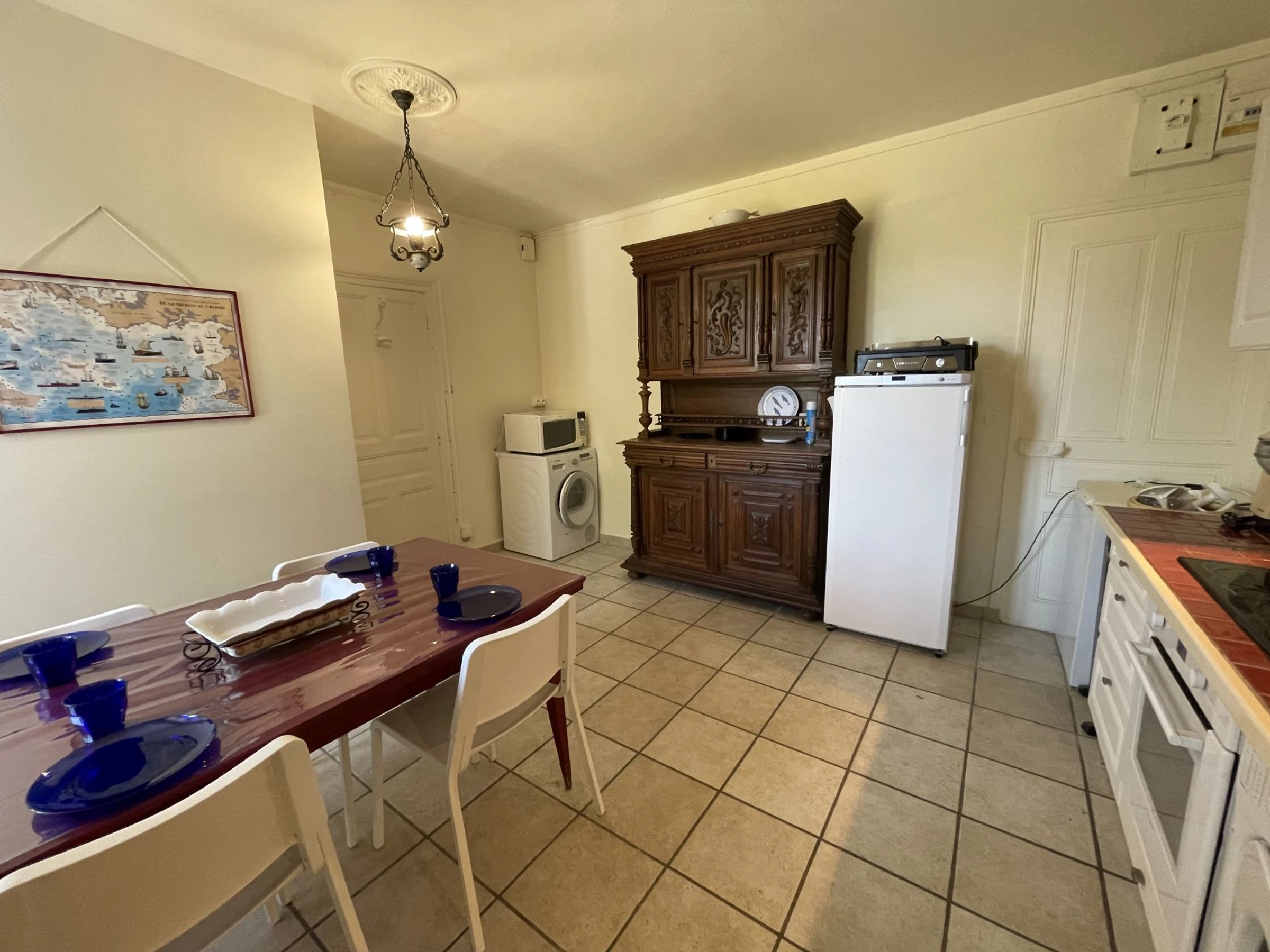 In idealer Lage, nur wenige Schritte von Geschäften und dem Sonntagsmarkt im Dorf Saint-Gildas-de-Rhuys, einem der wichtigsten Märkte der Region, und nur 1 km vom Strand von Port Maria entfernt, bietet dieses 163 m² große Doppelhaus im Erdgeschoss: eine Eingangshalle, ein Wohnzimmer mit Kamin, ein zweites Wohnzimmer mit Fernseher, eine separate Einbauküche (Backofen, 4-Flammen-Cerankochfeld, Mikrowelle, Waschmaschine, Geschirrspüler, Wäschetrockner, Kühl- und Gefrierschrank, Filterkaffeemaschine) und ein WC.