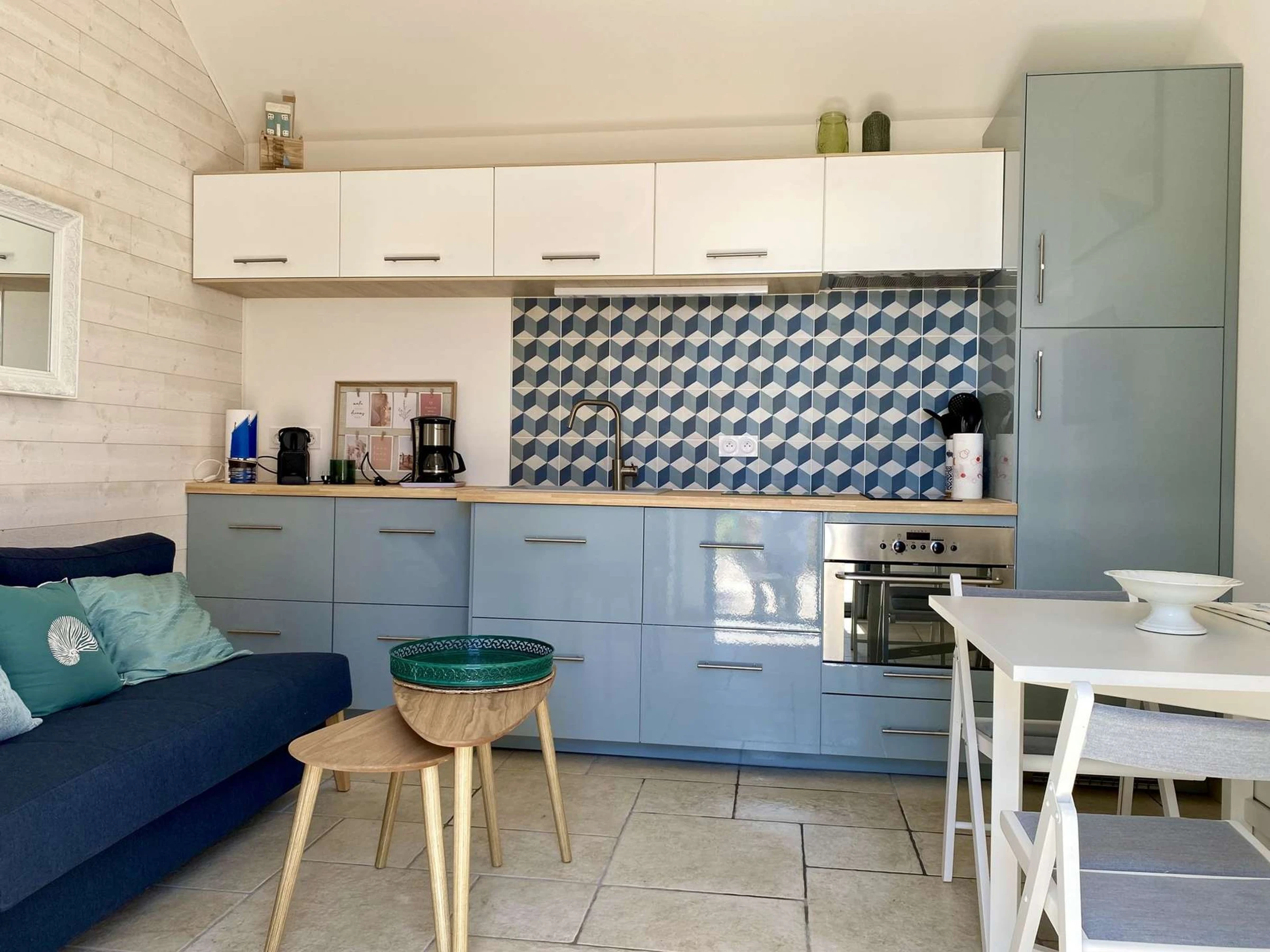 Dieses charmante Haus liegt am Ende einer ruhigen Sackgasse und ist Joséphines „Zwillingsschwester“. Es liegt 150 m vom Strand Boisvinet und weniger als 10 Minuten vom Zentrum von Croix de Vie entfernt. Der komplett renovierte Komplex verfügt über eine nach Süden ausgerichtete Holzterrasse mit einer Fläche von 30 m² und einen Garten. Die Palme spendet zu bestimmten Tageszeiten angenehmen Schatten. Das Wohnzimmer besteht aus einem Sitzbereich mit einem zusätzlichen Bett für nur eine Person und einem perfekt ausgestatteten Küchenbereich. Das Badezimmer, das vom einzigen Schlafzimmer aus zugänglich ist, verfügt über eine Dusche, ein Waschbecken und eine Toilette. Das Schlafzimmer verfügt über ein großes 160 cm breites Doppelbett.