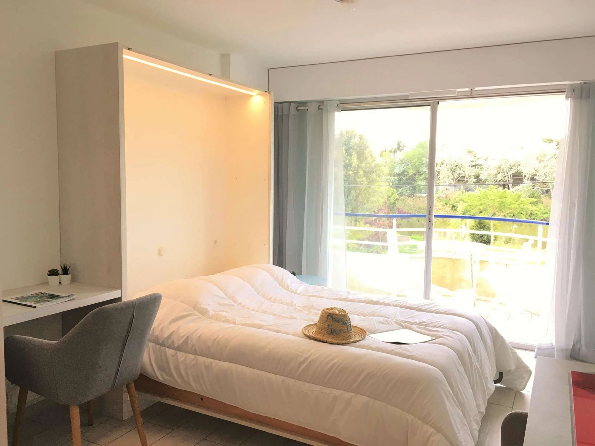Dieses Studio befindet sich im 1. Stock einer privaten Residenz, 150 m zu Fuß vom Stadtzentrum von Saint Gilles und 450 m vom Grande Plage entfernt. Es liegt gegenüber von Jaunay und ist für die Unterbringung von maximal 2 Personen optimiert. Der Wohnraum besteht aus einer Einbauküche und einem ausziehbaren Doppelbett. Ihnen stehen ein Parkplatz und ein privater Kellerraum zur Aufbewahrung von Fahrrädern und Strandausrüstung zur Verfügung. (Canvas-Referenz)