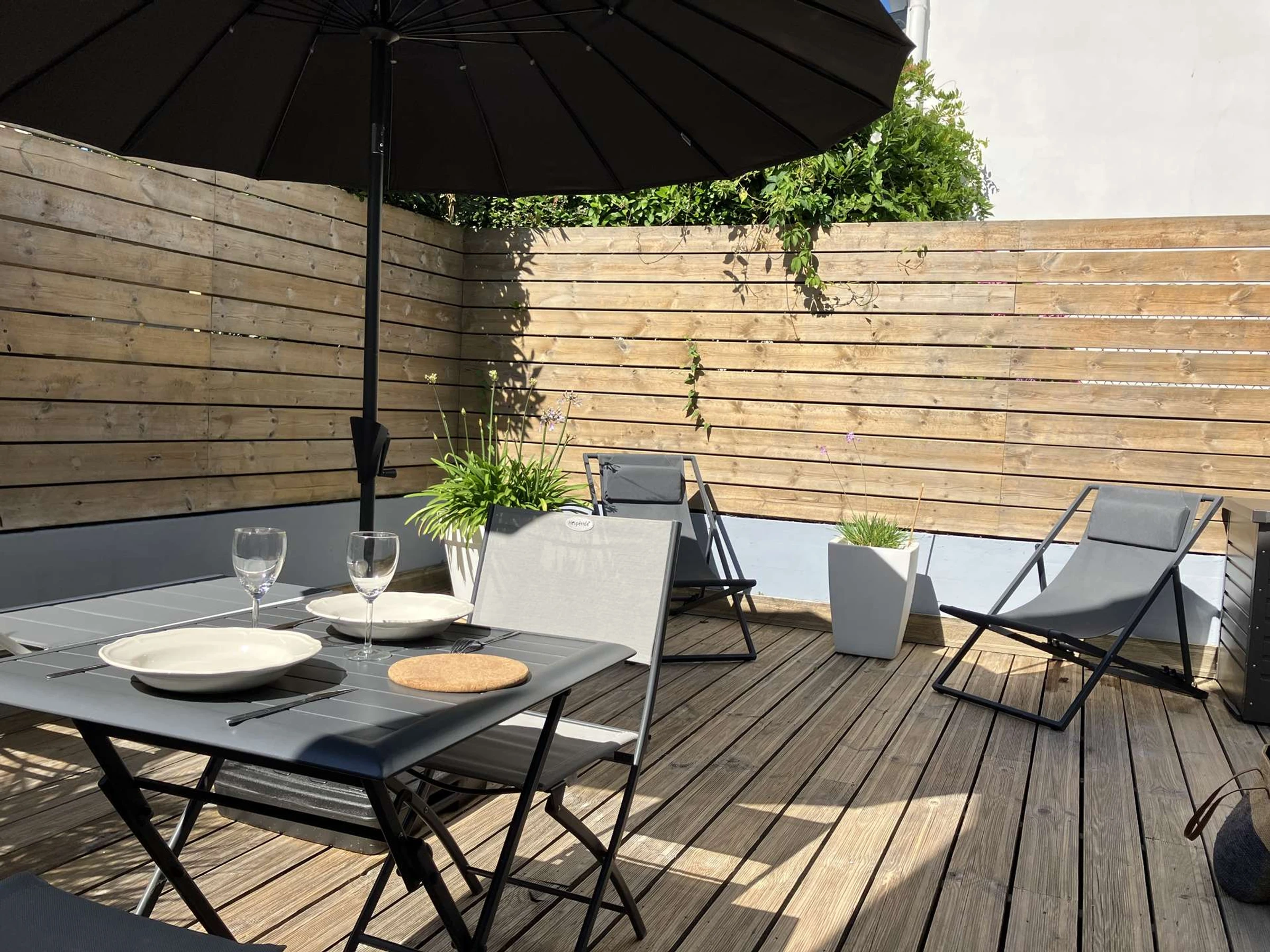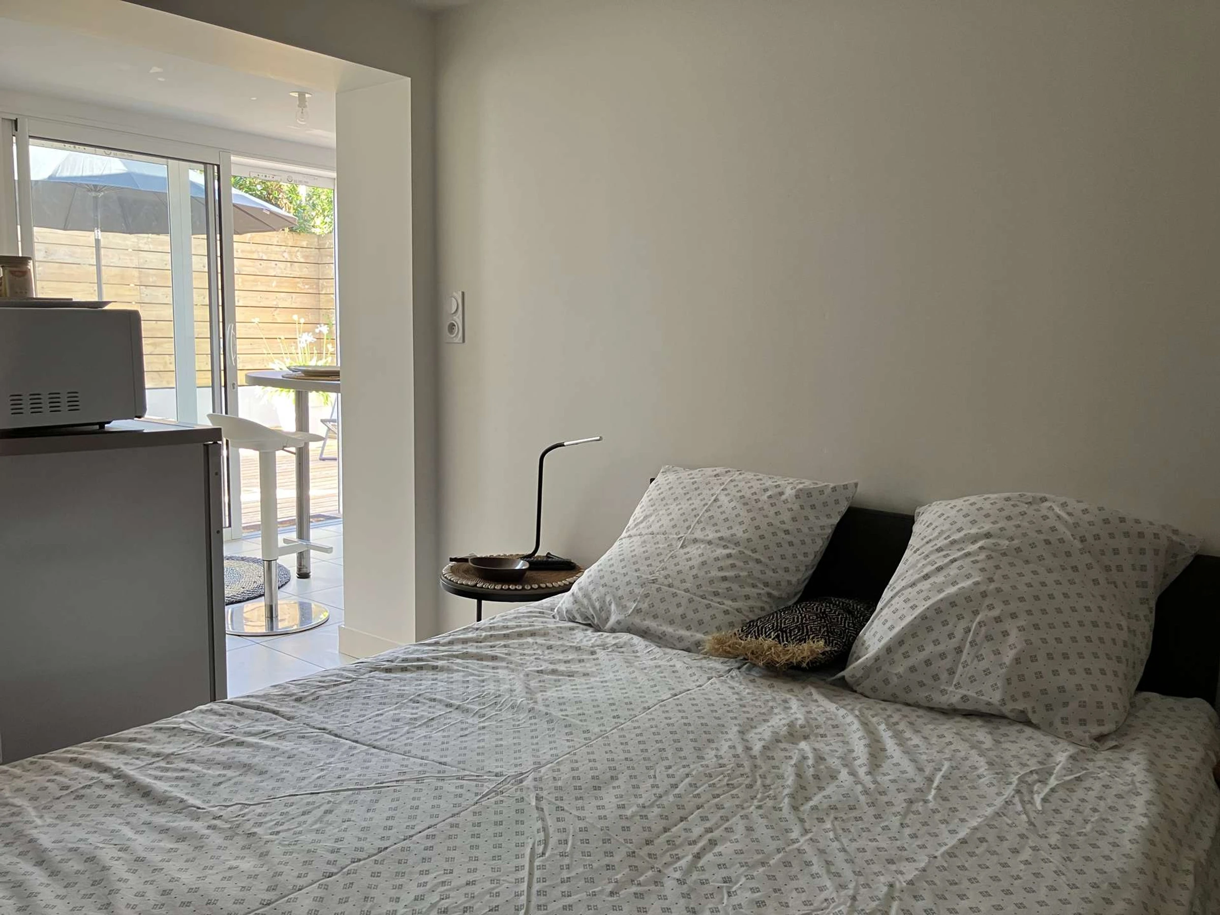 Dieses vom Rest dieses Privathauses unabhängige Studio für 2 Personen liegt 100 m vom Strand Boisvinet und 550 m vom Stadtzentrum von Croix de Vie sowie dem Bahnhof entfernt. Der Hauptraum besteht aus einem Schlafbereich mit Schlafsofa und einer kleinen Einbauküche mit Essbereich. Es öffnet sich zu einer großen, 25 m² großen, komplett umzäunten Terrasse. Es ist ein angenehmer Ort, um zu frühstücken und dabei die ersten Sonnenstrahlen zu genießen. Der Eingang ist unabhängig und von Vegetation gesäumt. (Siehe Delphin)